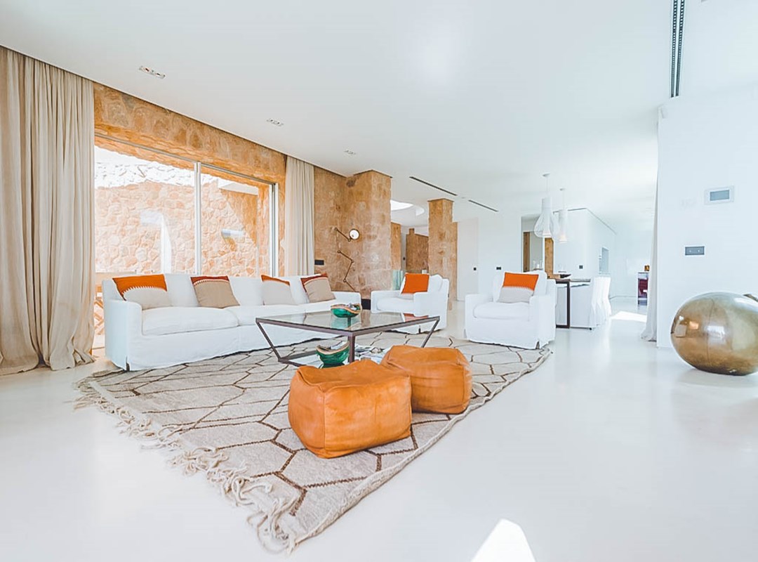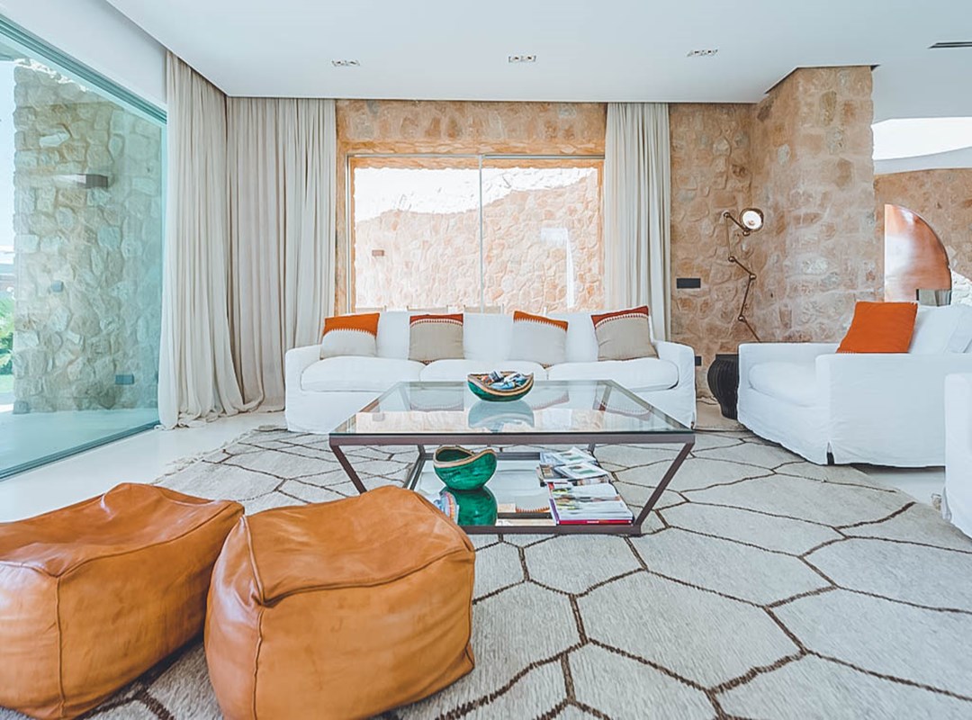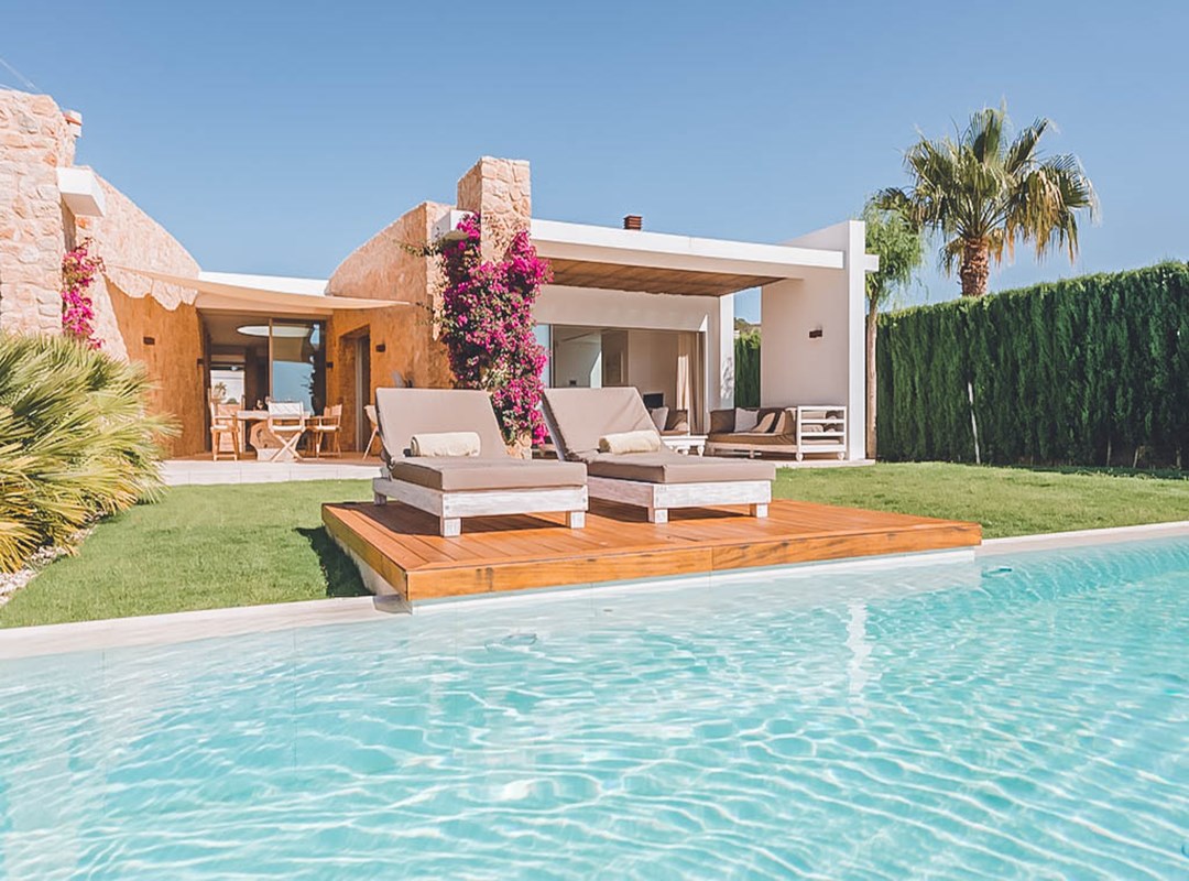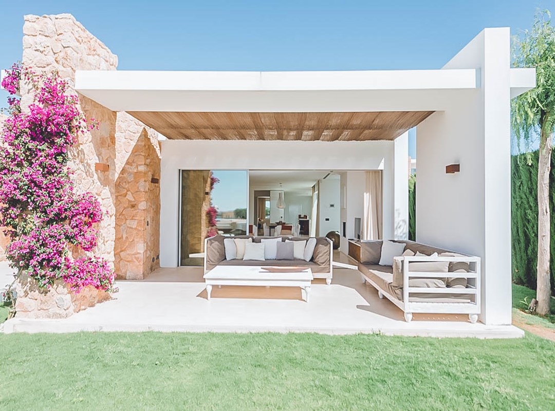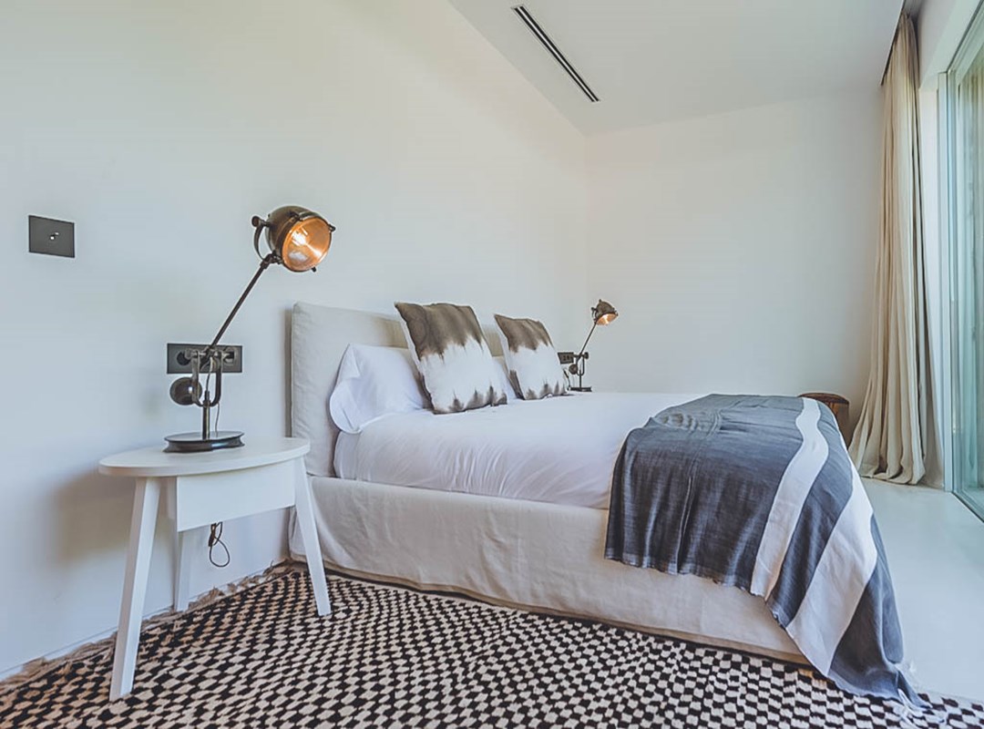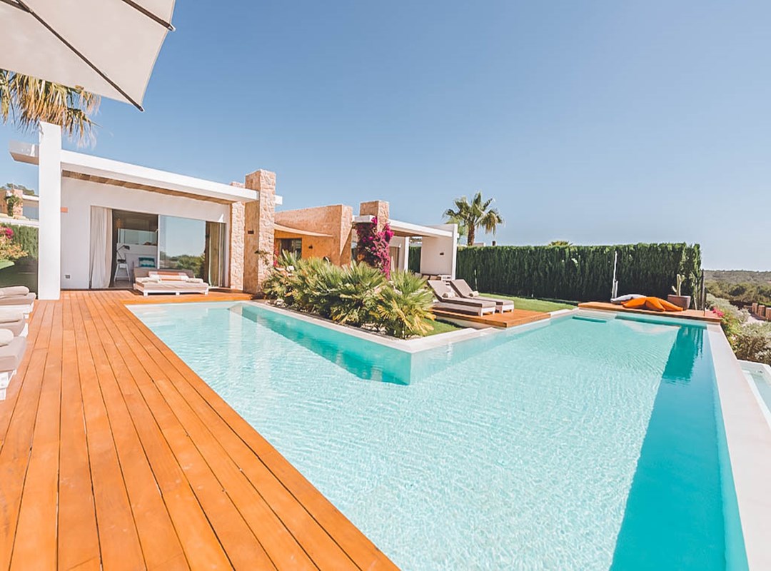This newly constructed five-bedroom villa in the exclusive Cala Conta 33 enclave offers minimalist contemporary architecture and unrivalled sunset views over the Mediterranean, with easy access to Cala Conta Beach.