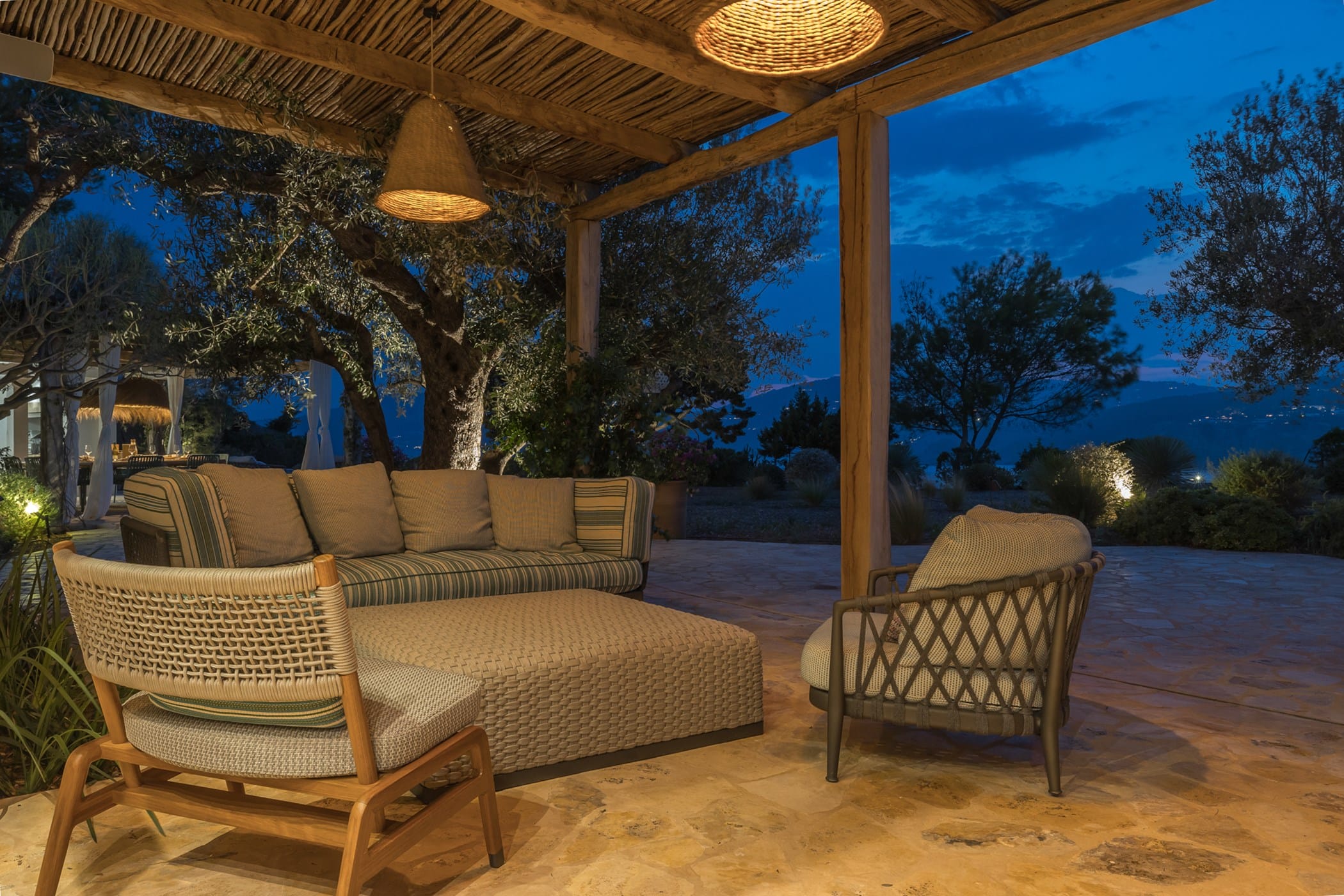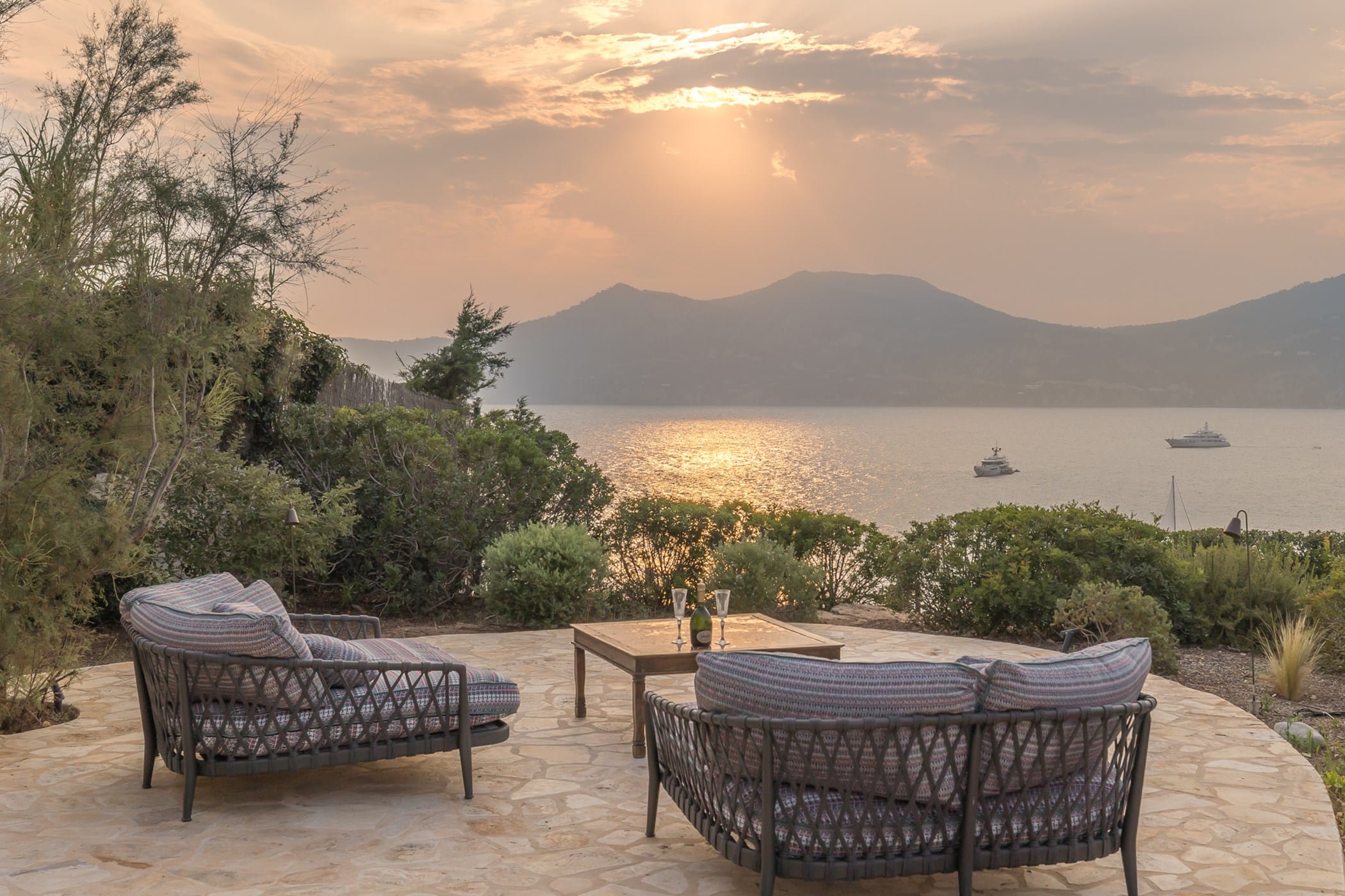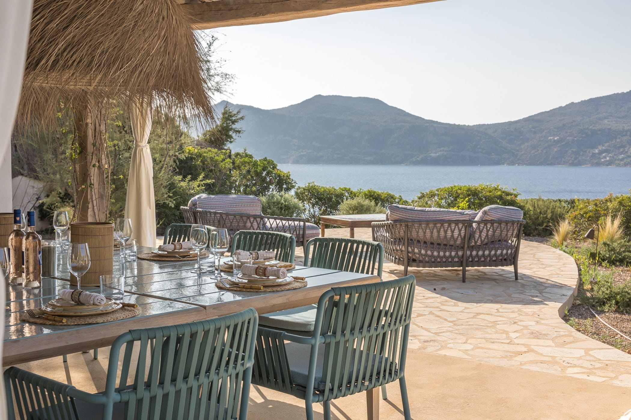 The interiors include elegant living spaces, a fully equipped modern kitchen, and refined areas for relaxation, some with sea-view terraces. The layout combines sophistication with functionality, ensuring both comfort and privacy throughout the property.