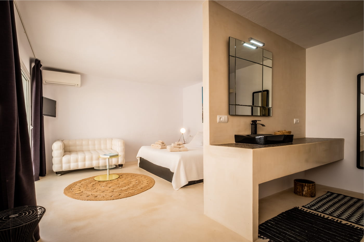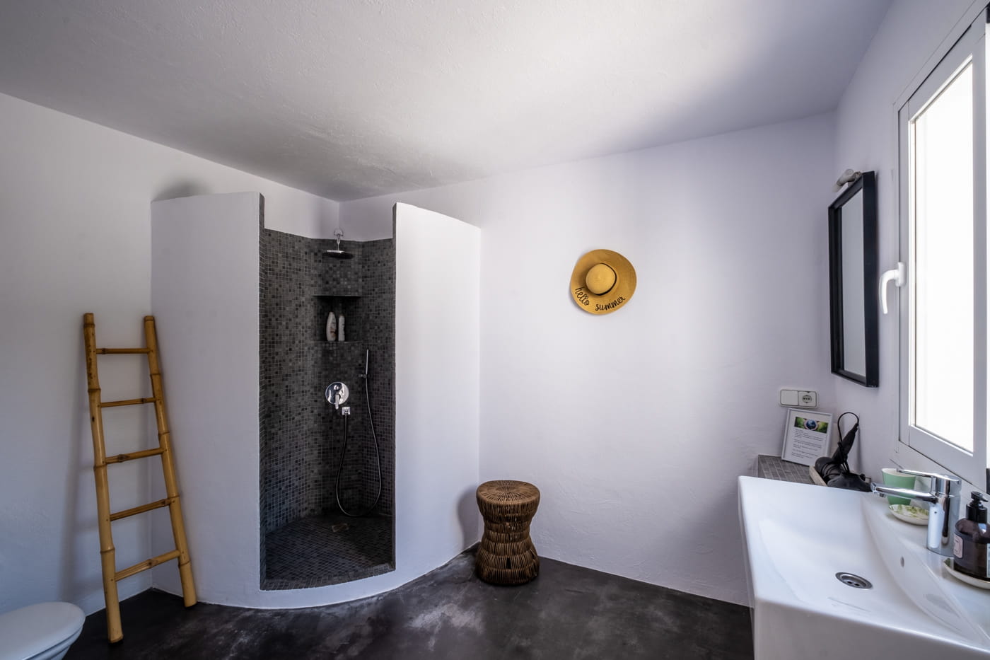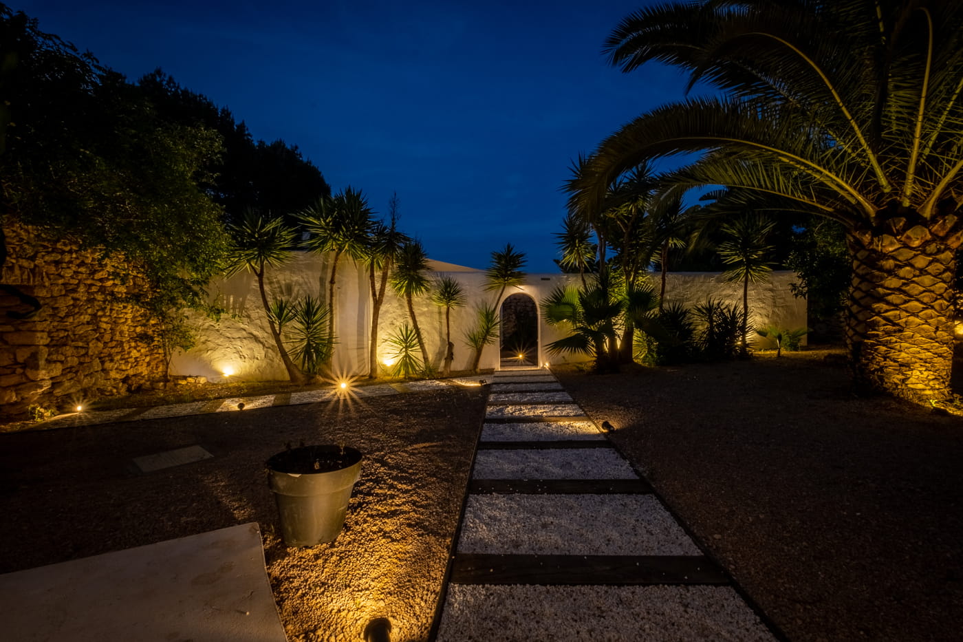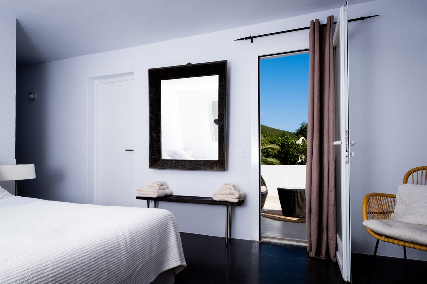This chic and bohemian 5-bedroom villa is located in the sought-after private gated area of Roca Llisa, close to Ibiza’s golf course. Set over several acres, it masterfully blends bohemian chic with traditional and exotic natural decor.