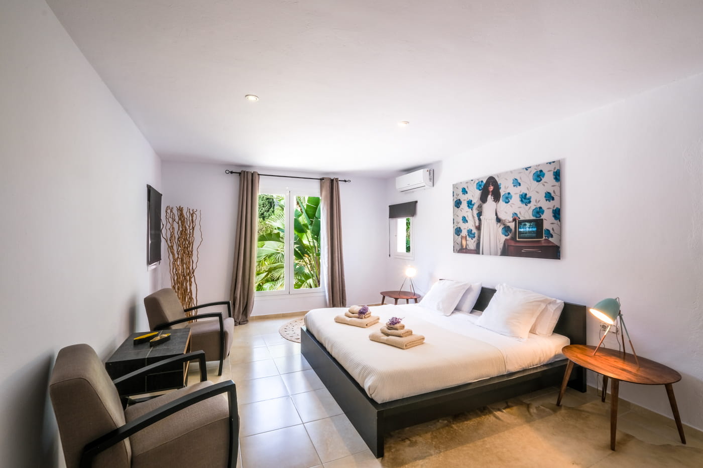 All five bedrooms are elegantly decorated in a contemporary boho style with striking soft furnishings, each offering its own unique and charming character.