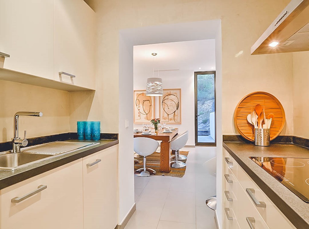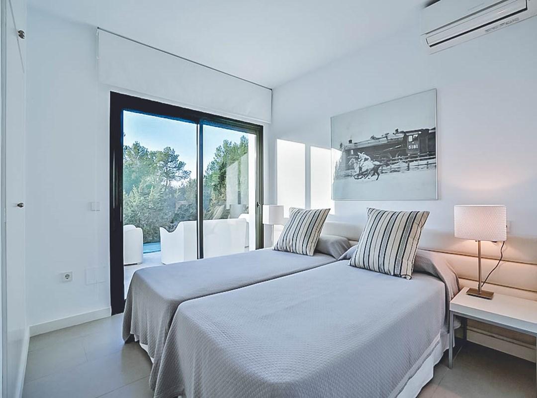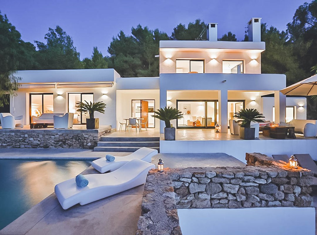 This stunning 4-bedroom contemporary villa is ideally located between the charming village of Sant Josep and the pristine beaches of Cala Tarida, Cala Moli, and Cala Vadella. It offers chic minimalist design, high-end fittings, and breathtaking sea views towards Conillera and S’Espartar.