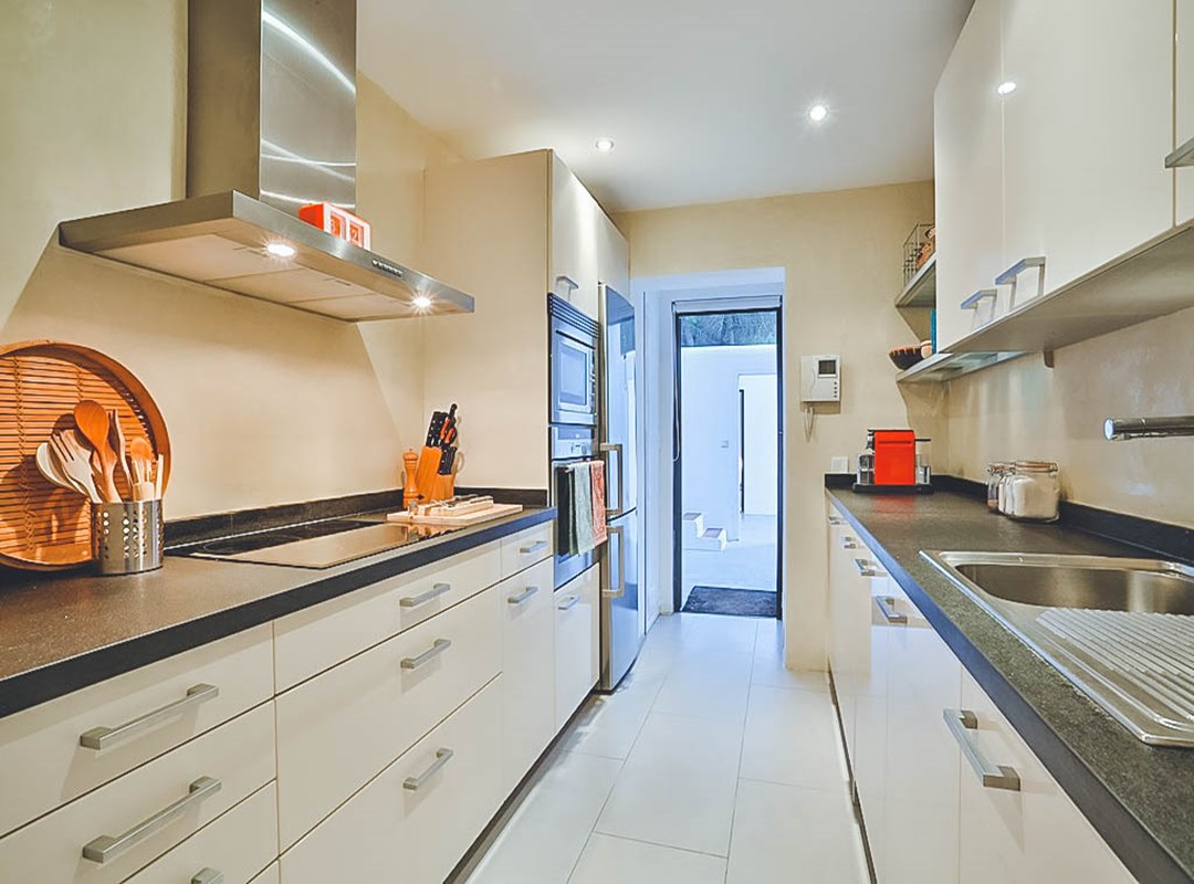 Fully equipped elegant kitchen and dining area complete the interiors.