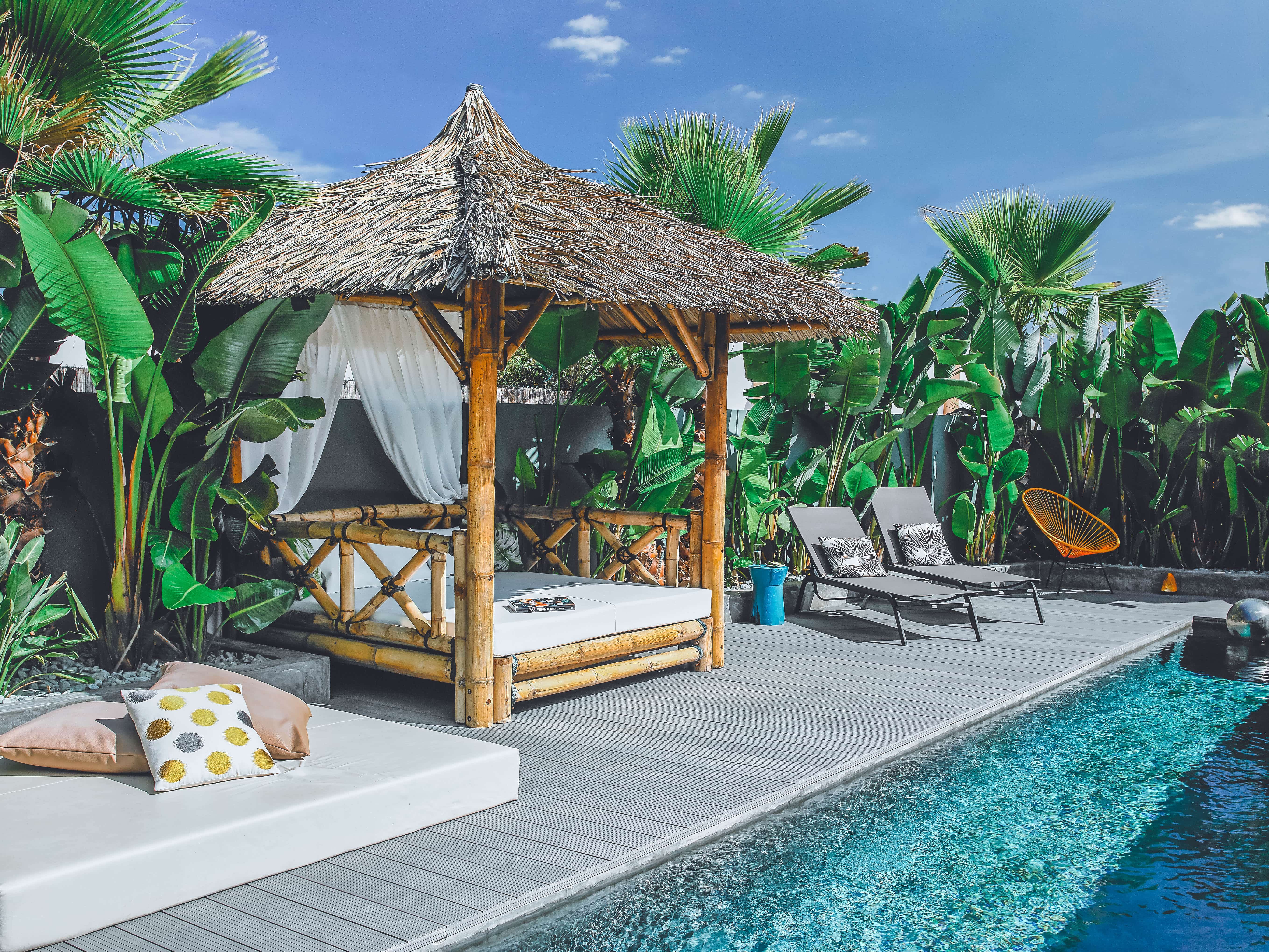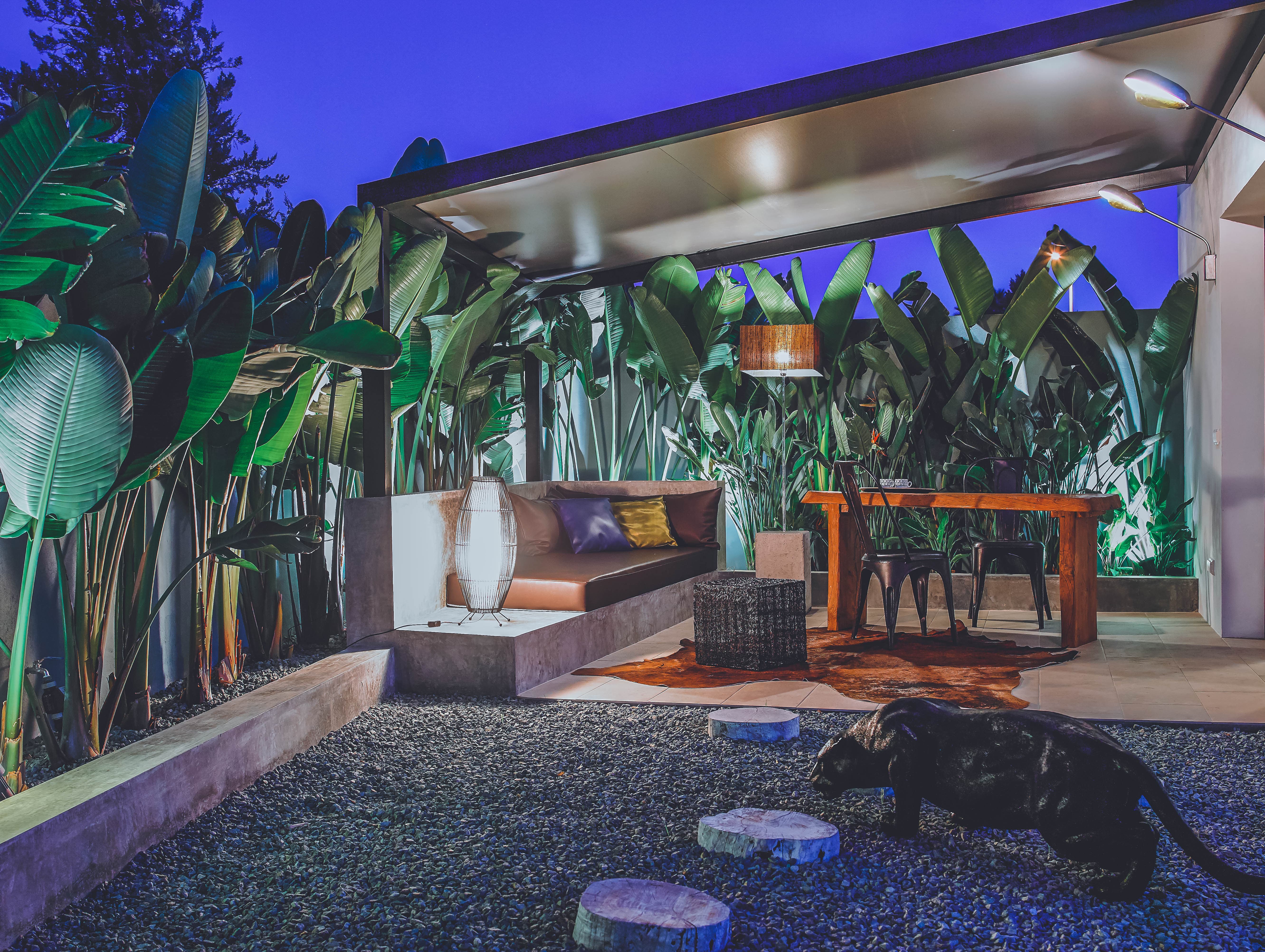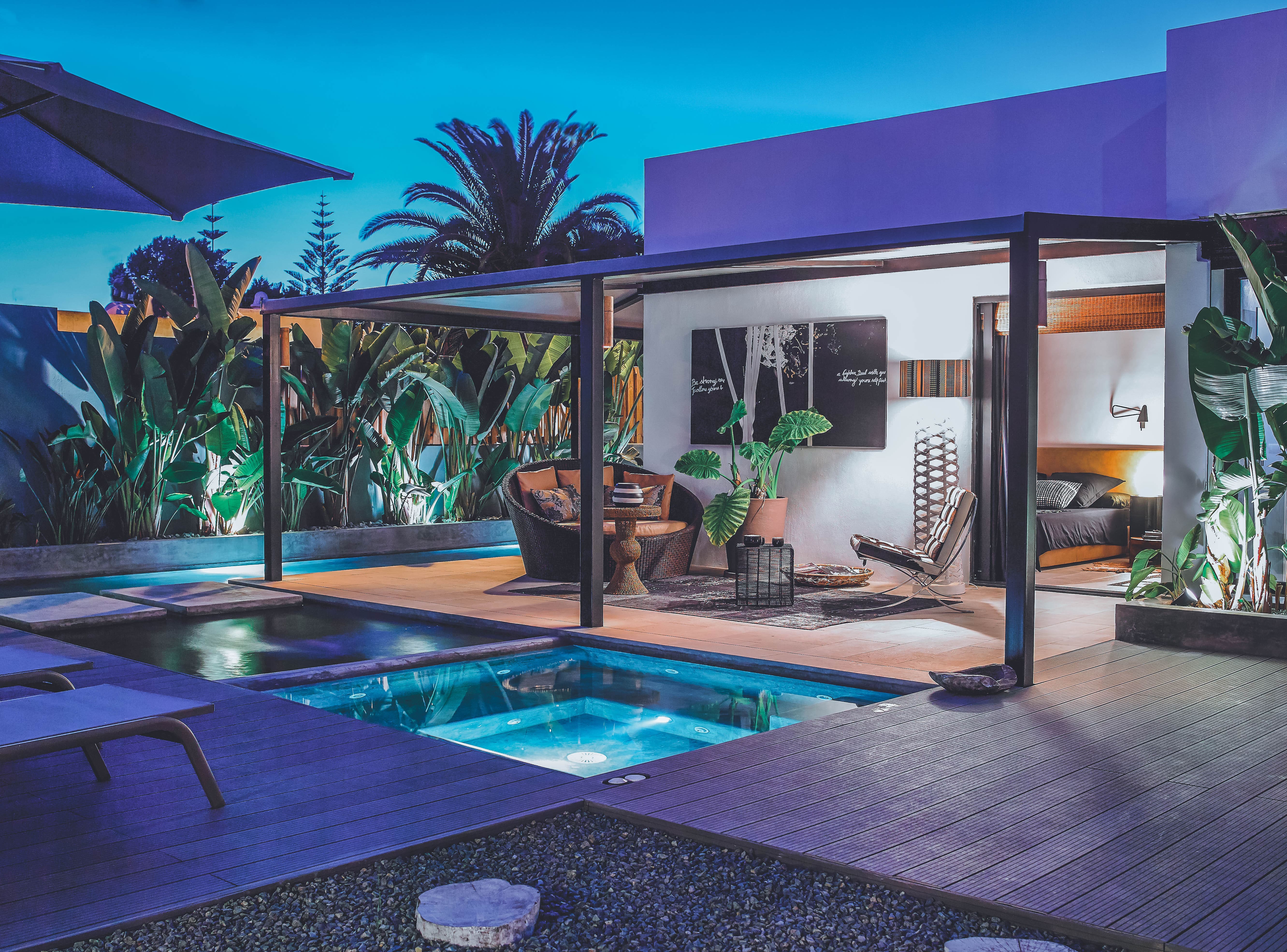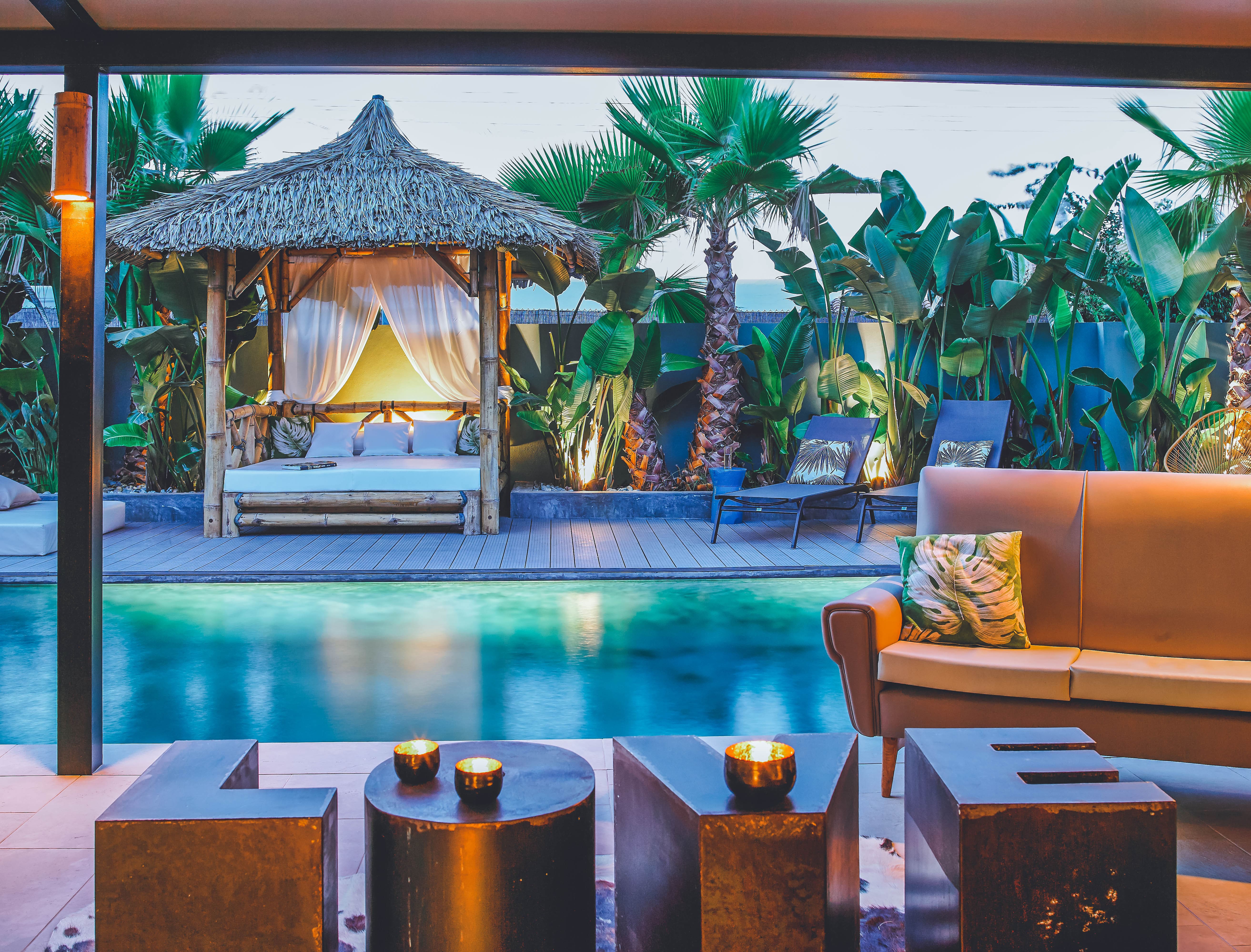 Perfect for small groups of friends or family who appreciate spectacular interior design. Outdoors, guests can enjoy various sun-soaked and shaded areas including a covered terrace lounge with daybeds and sofas, an al fresco dining space.