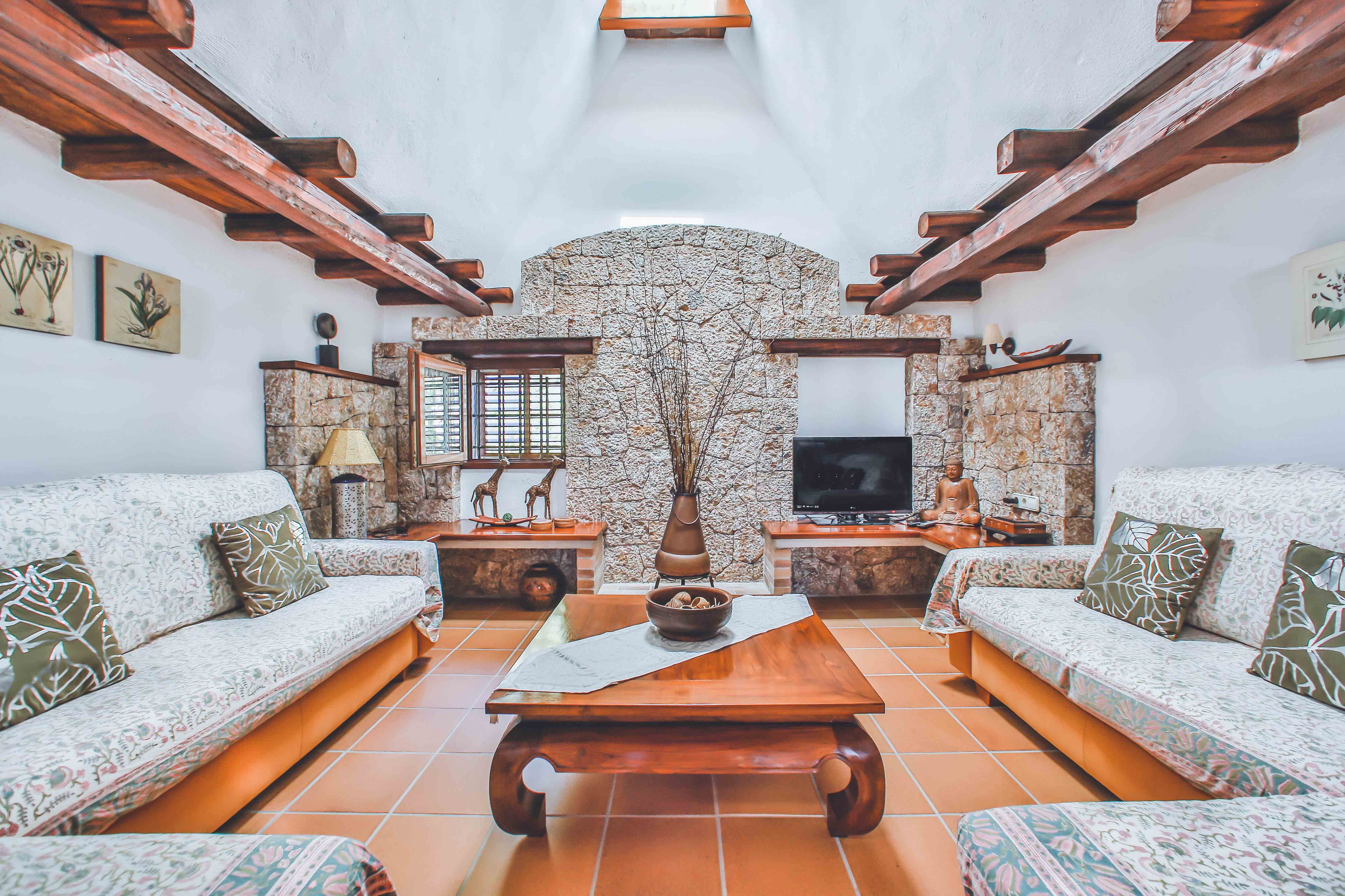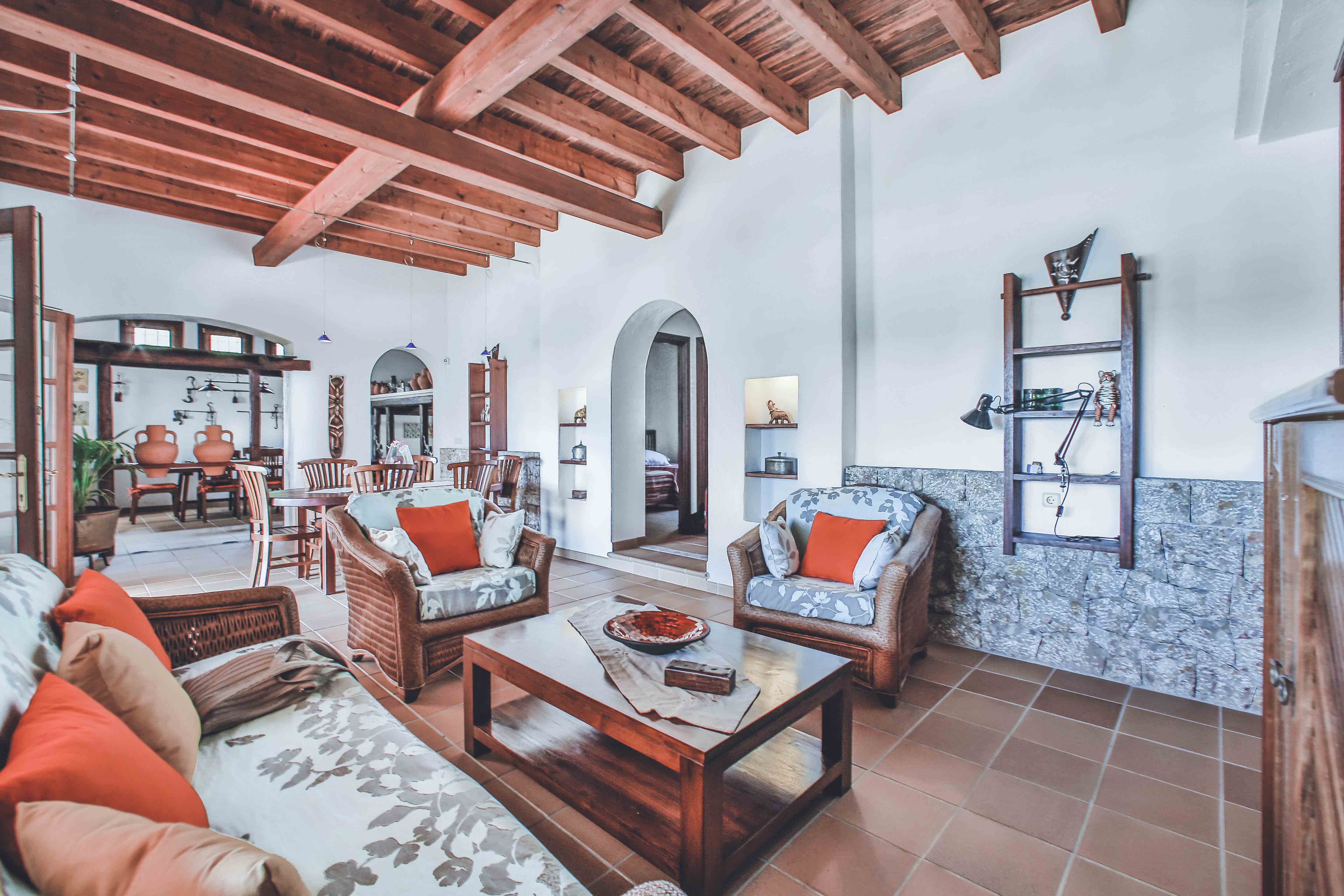 The interior of the villa retains the traditional features but also offers you all the modern day comforts you require. The spacious lounge dining areas are complemented by wooden beams throughout and terrazzo floors, with exposed brickwork on the walls adding to that farmhouse charm.