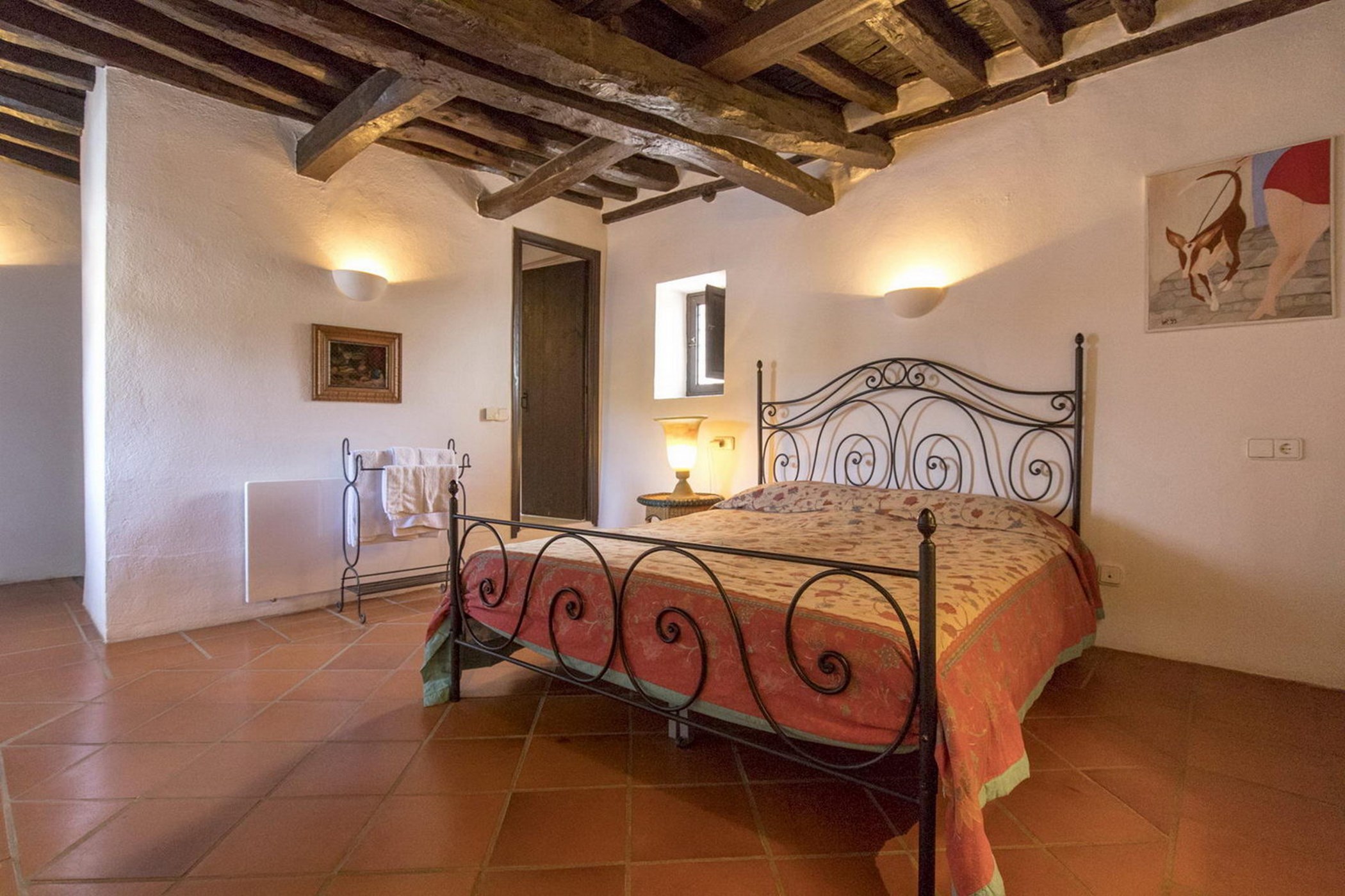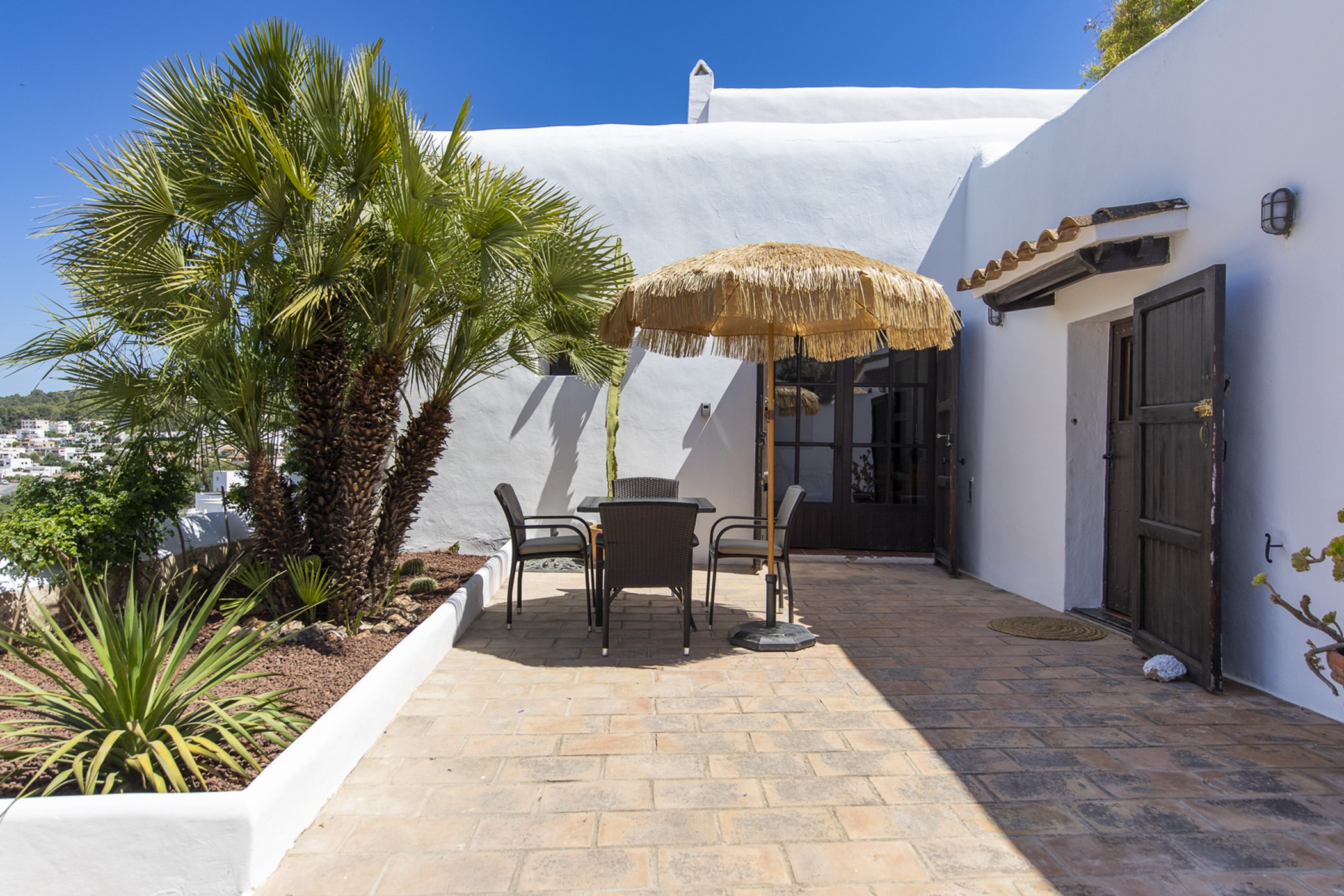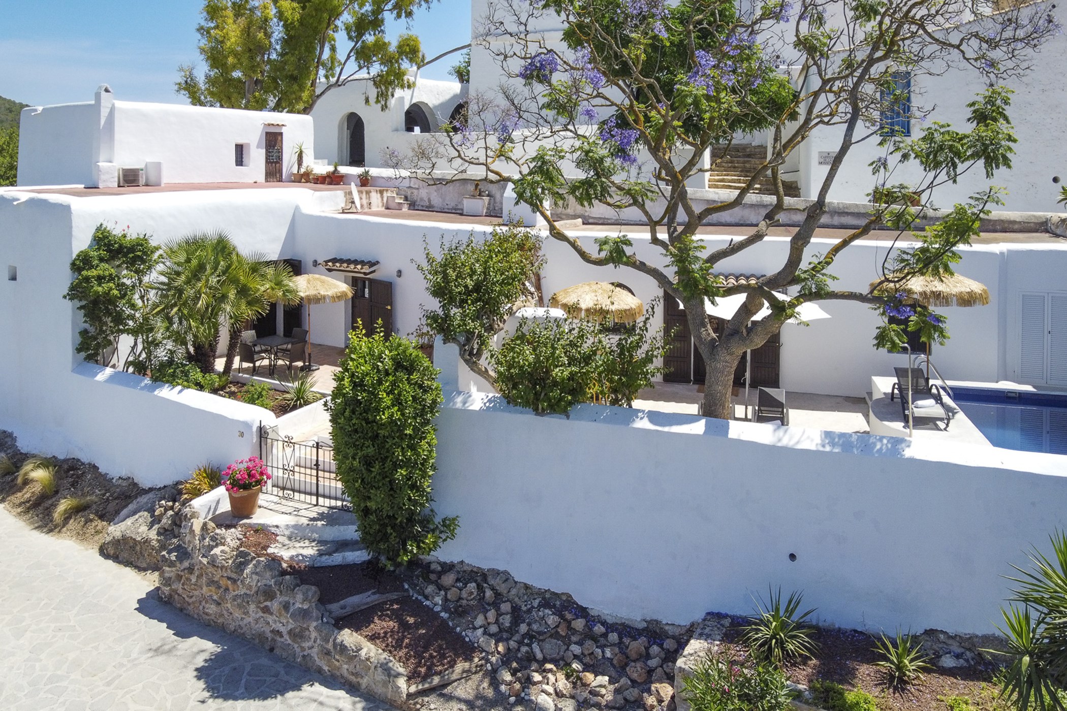 The Mediterranean hillside property is completely fenced and has a total area of 250m2. It is overgrown with trees and many native plants such as bougainvillea and oleander. Two house terraces plus a pool terrace offer space for clapping, relaxing, sunbathing .... The two-storey 225m² finca surprises with great panoramic views and unique situation at Santa Eulalia.