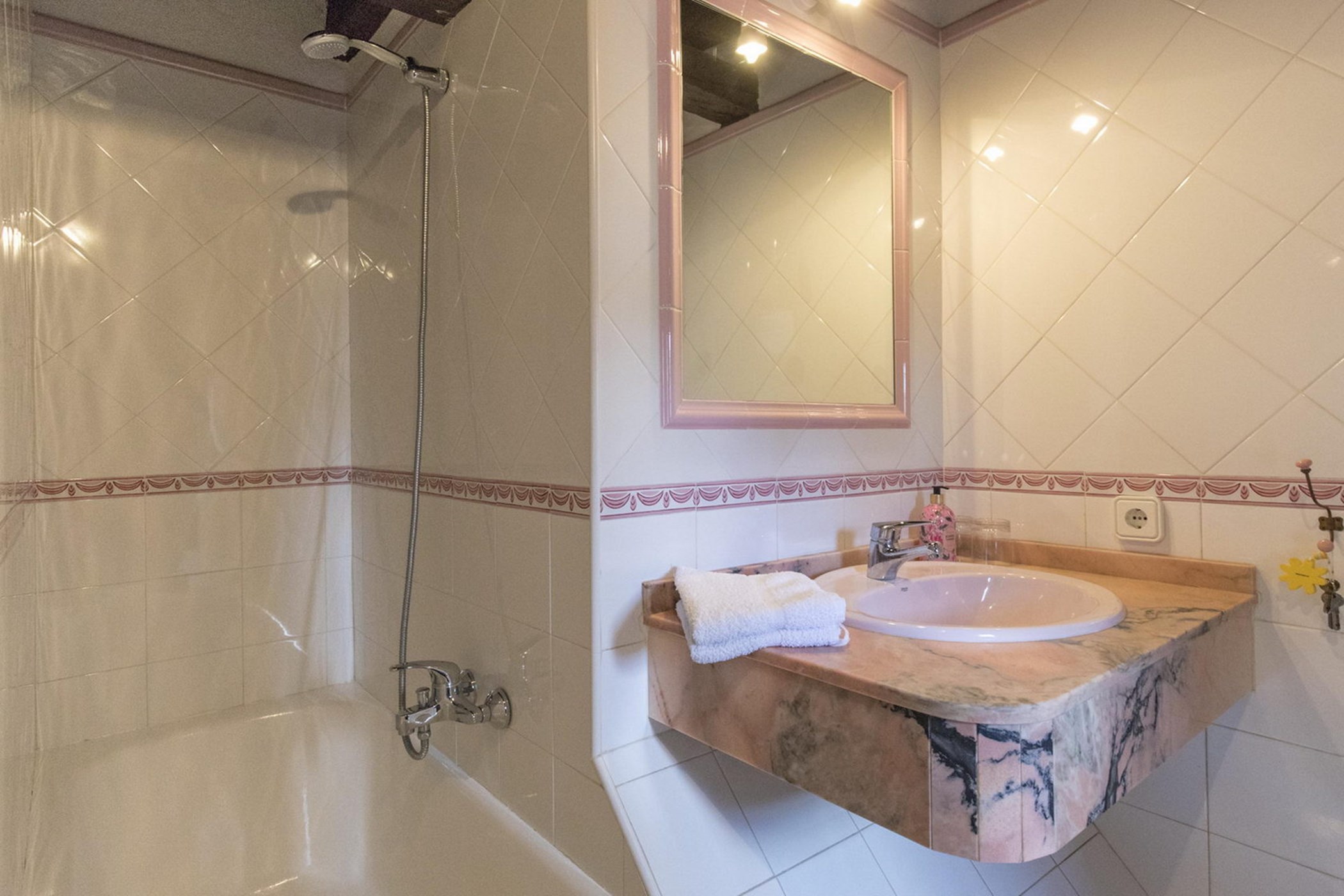 You enter the finca on the lower floor and get directly into a bright, comfortably furnished living / dinning room (40m2) with satellite TV and a fireplace. The fitted kitchen is fully furnished and equipped.