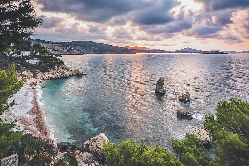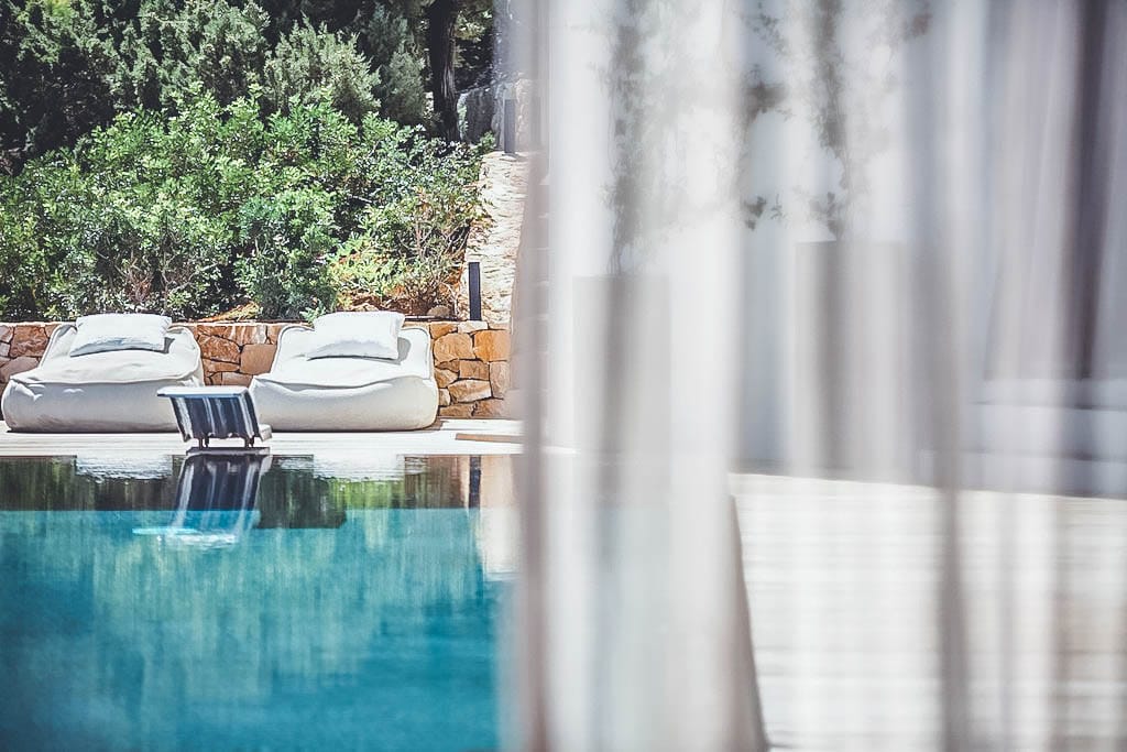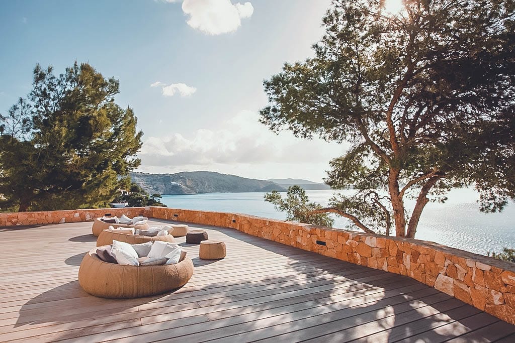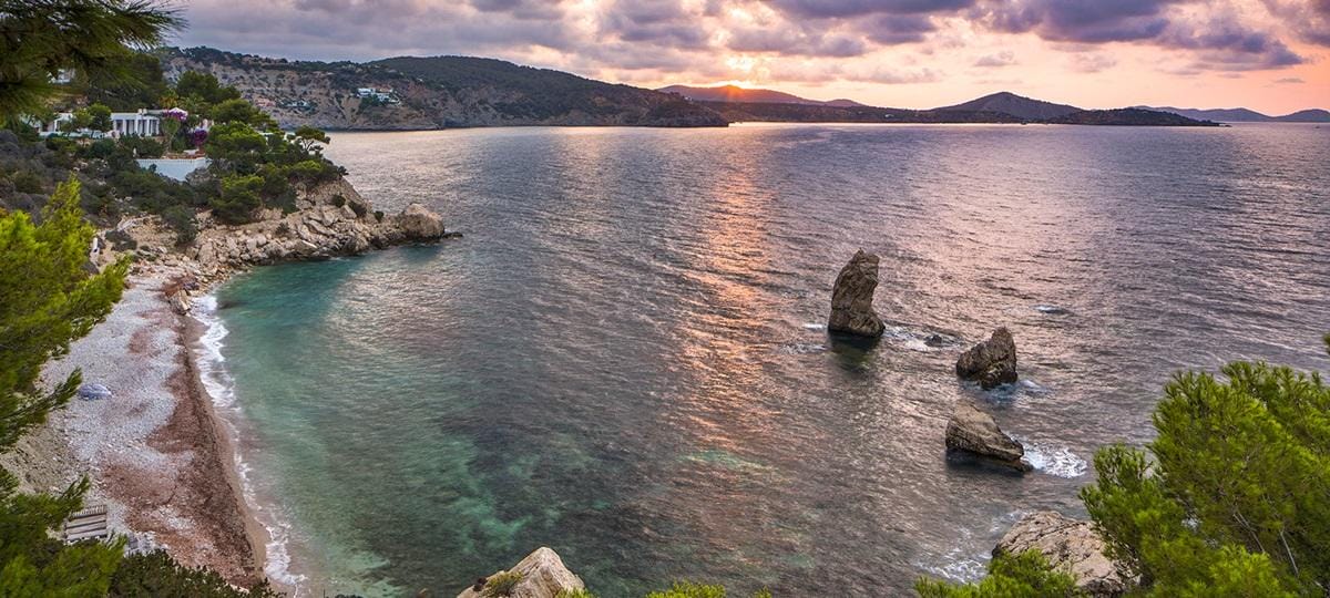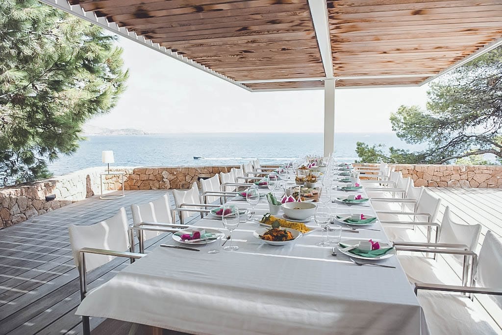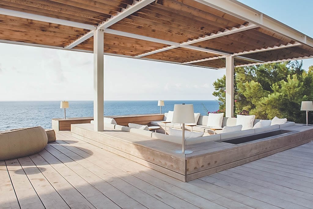 This exceptional front-line villa sits high on a cliffside in exclusive Es Cubells, with direct access to a secluded beach and spectacular uninterrupted views over the Mediterranean Sea, countryside, and coastline. Just a short drive from Ibiza Town.