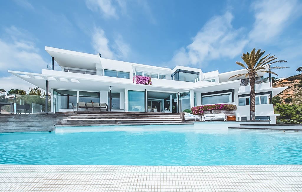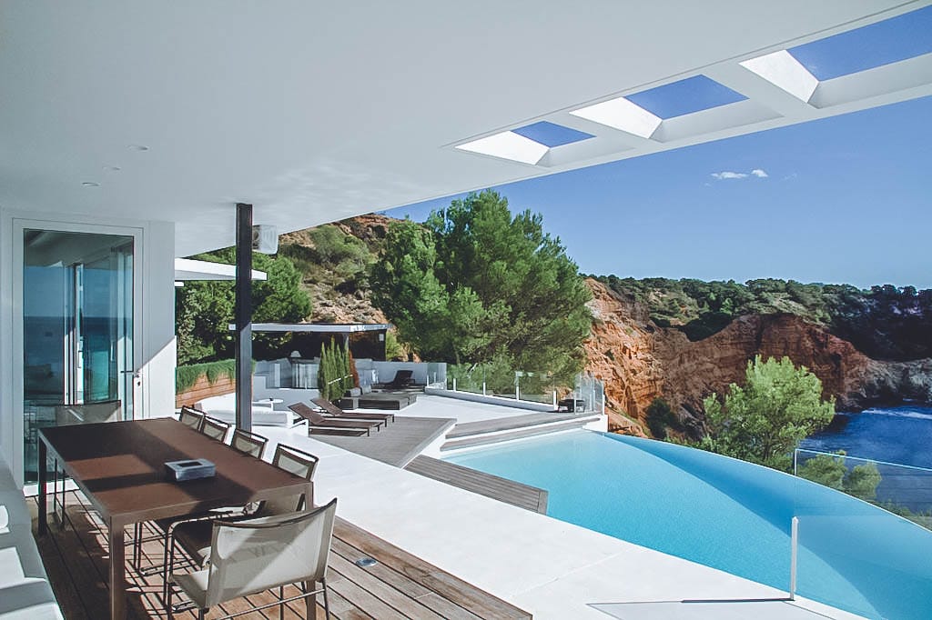 This exceptional 6-bedroom modern villa is located inside the sought-after gated community of Vista Alegre with direct beach access. It offers unrivalled sea views and ranks among Ibiza’s most desirable luxury hideaways.