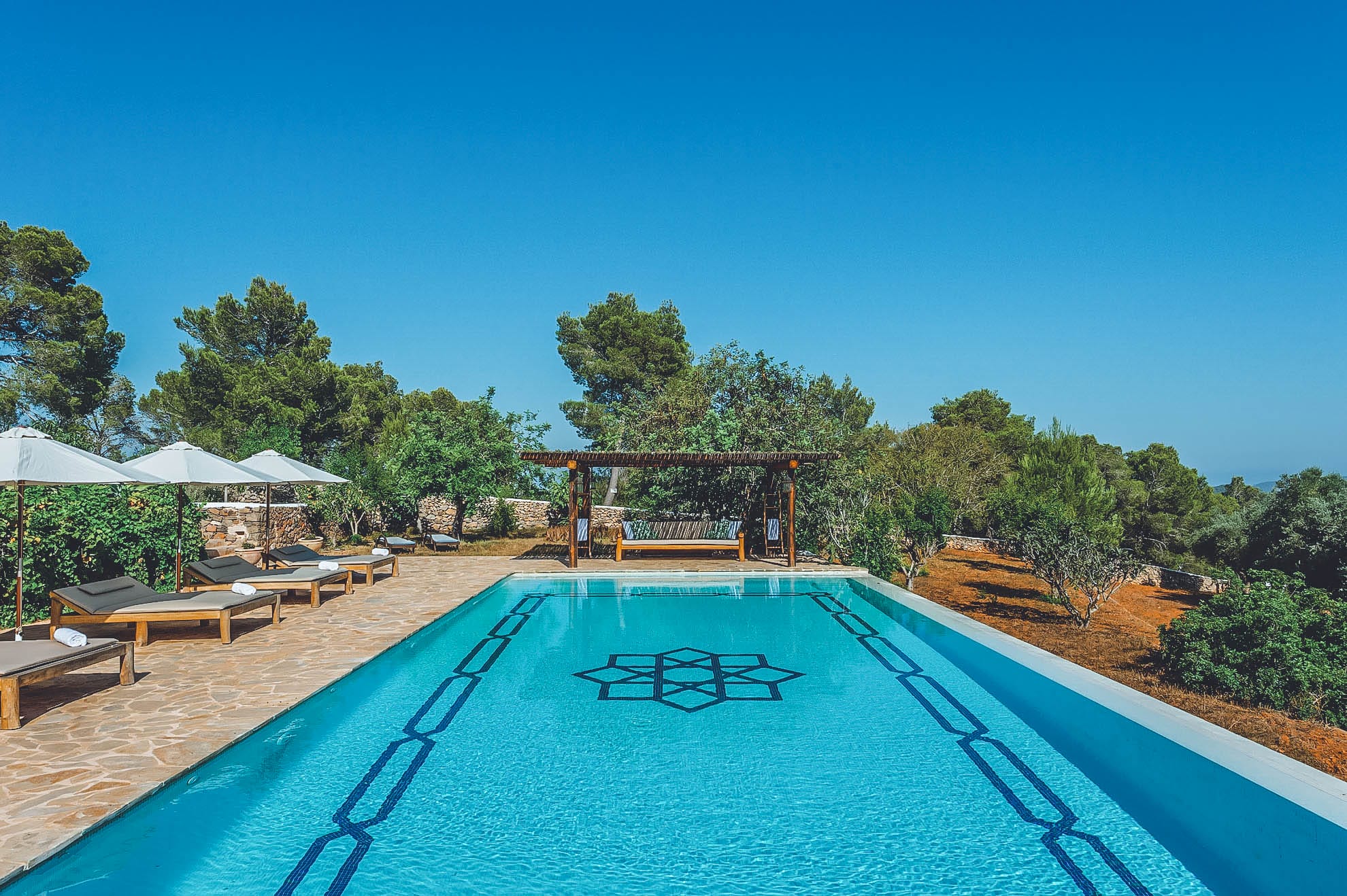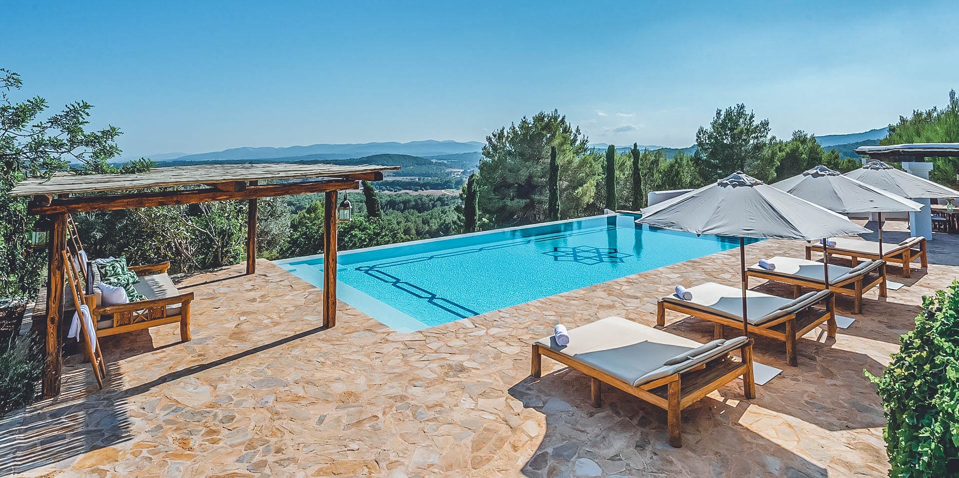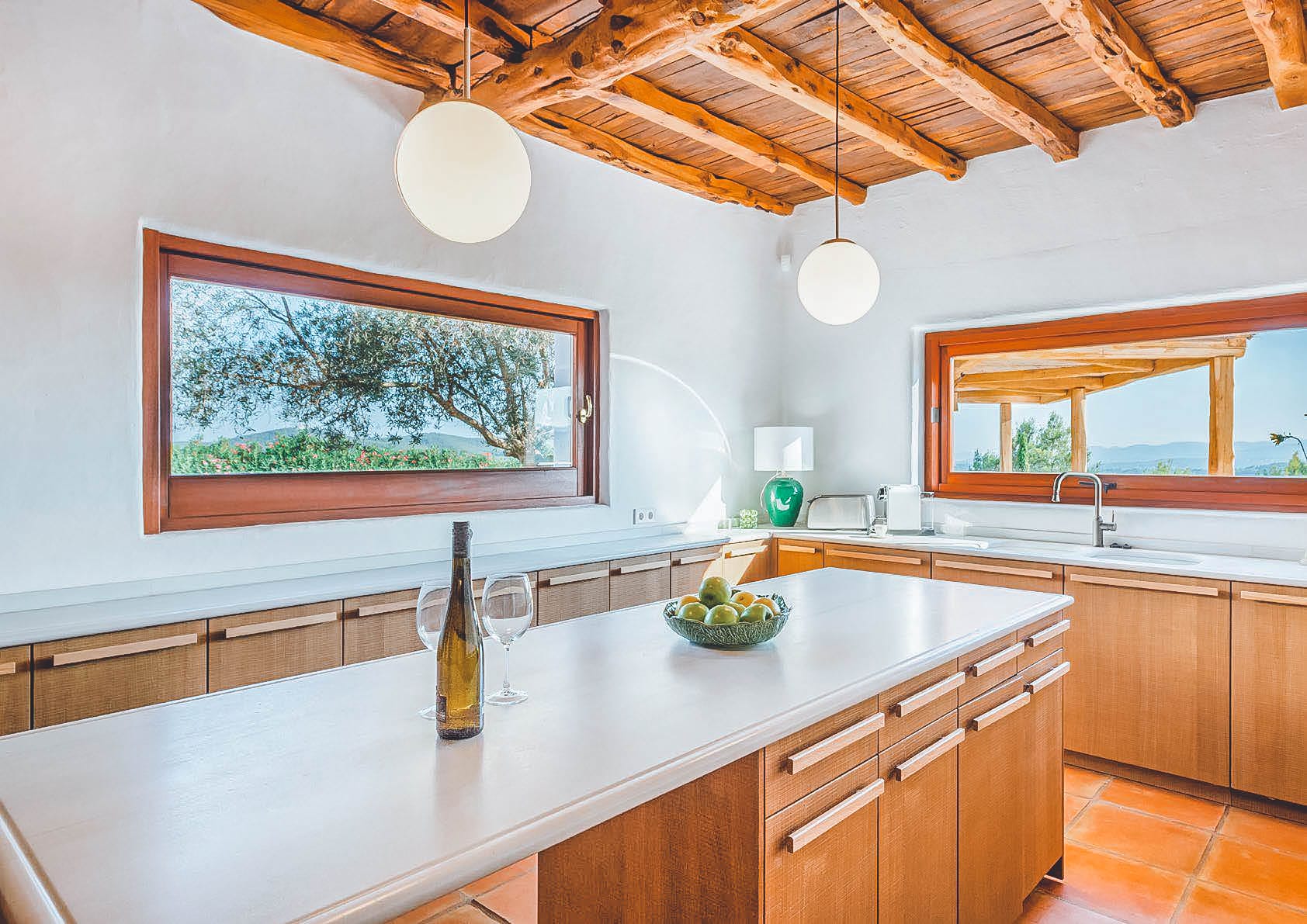 This newly modernised 6-bedroom Blakstad finca offers sensational south-facing views over miles of lush Ibizan countryside. Located in Santa Gertrudis, it is close to fashionable restaurants, boutiques, and a charming village square with vibrant café culture, while Ibiza Town is just a short drive away.