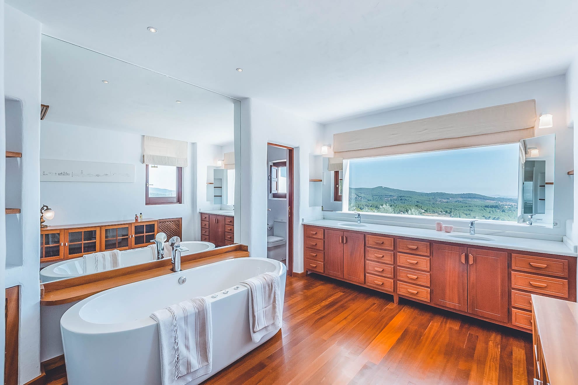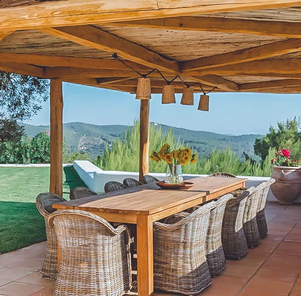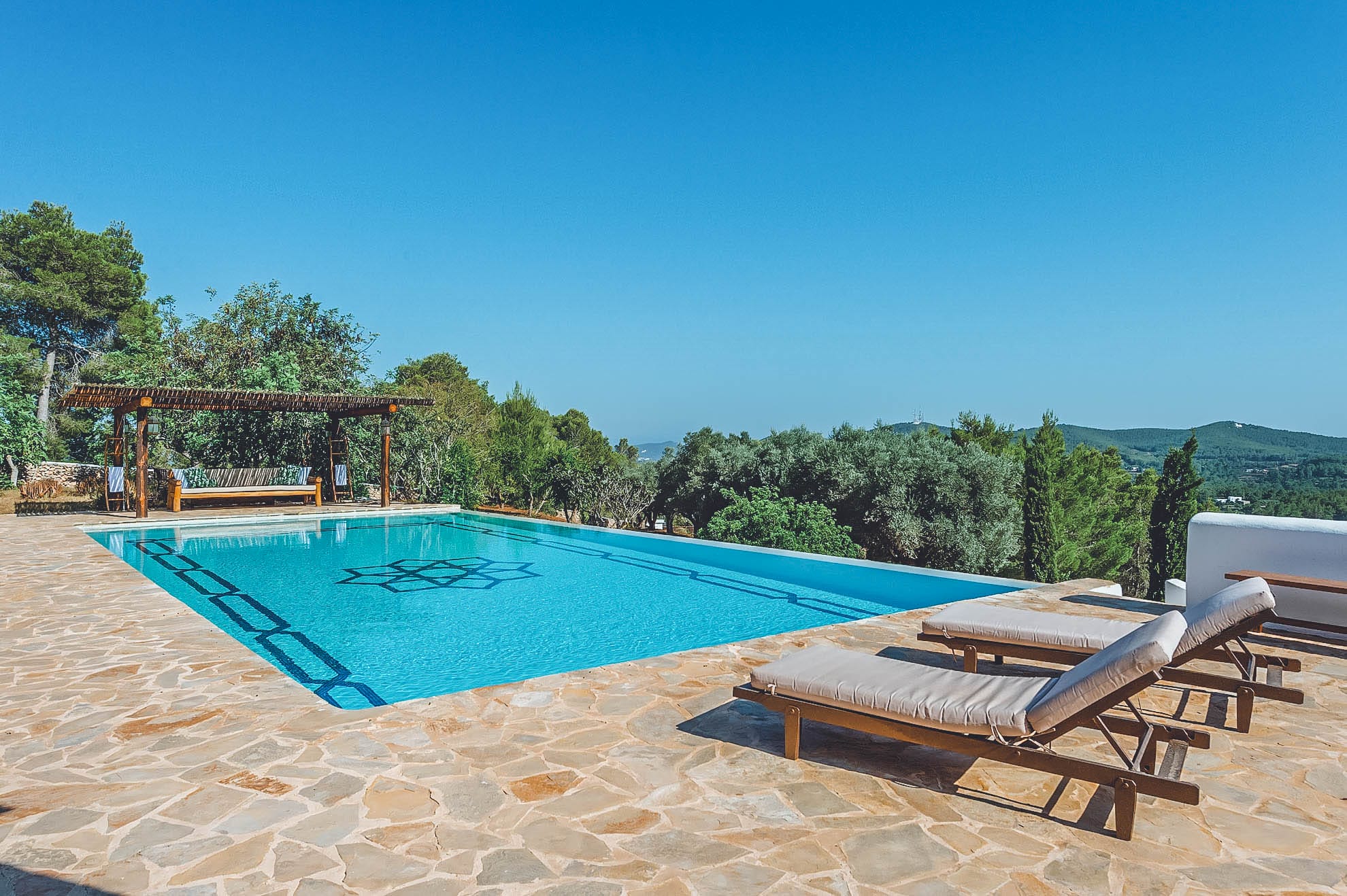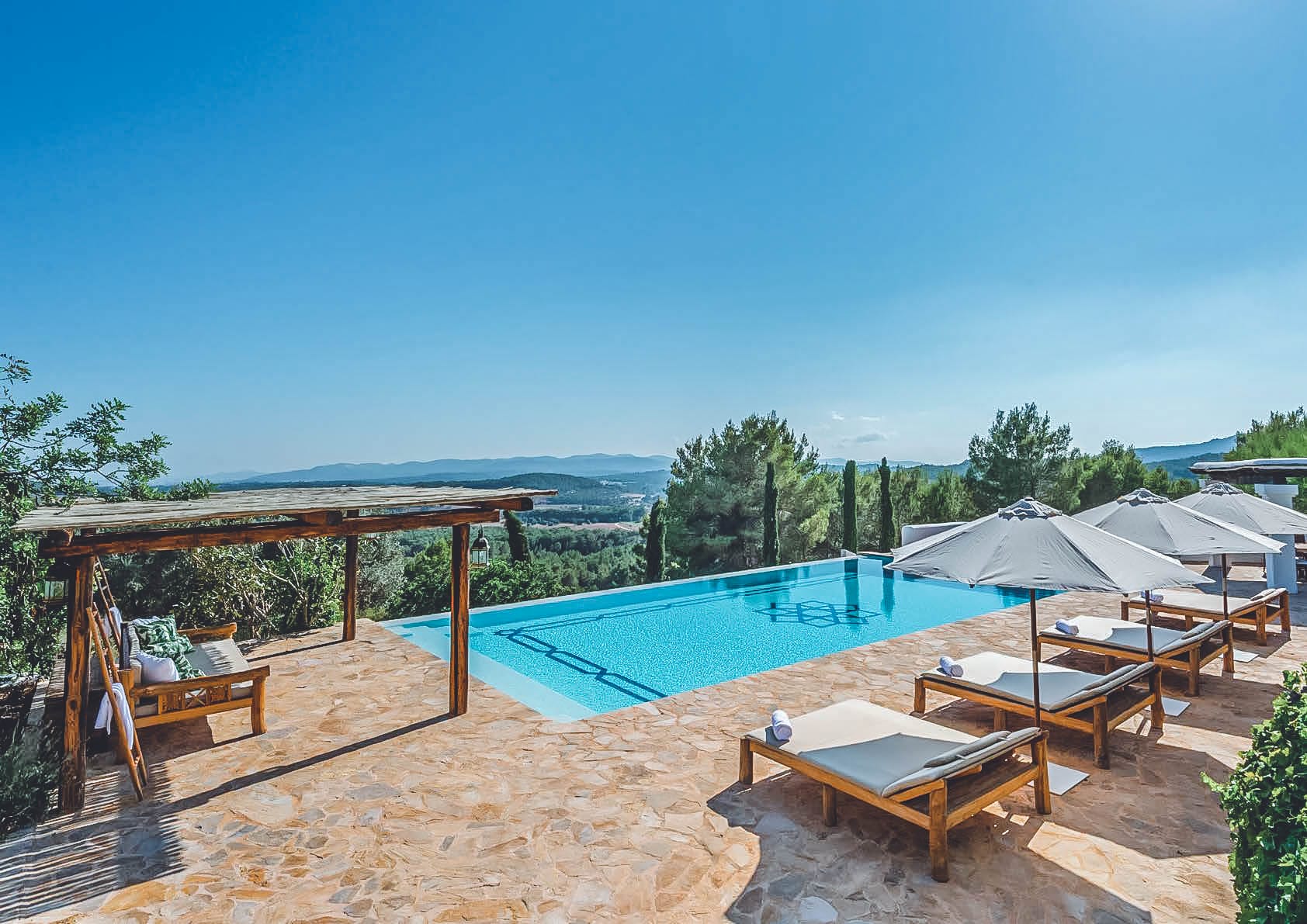 This newly modernised 6-bedroom Blakstad finca offers sensational south-facing views over miles of lush Ibizan countryside. Located in Santa Gertrudis, it is close to fashionable restaurants, boutiques, and a charming village square with vibrant café culture, while Ibiza Town is just a short drive away.