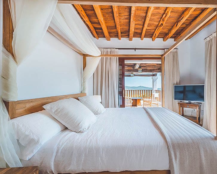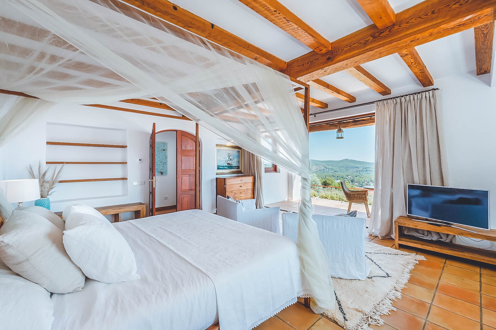 All six bedrooms enjoy breathtaking countryside views. The master bedroom features its own private terrace, perfect for morning coffee. A sumptuous day bed on the roof terrace offers panoramic views for sunbathing or stargazing.