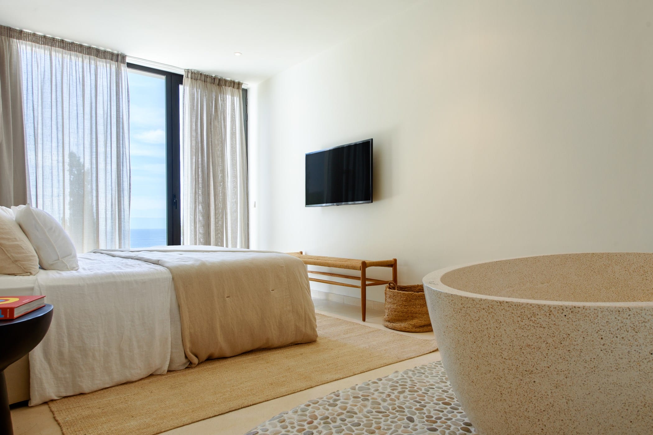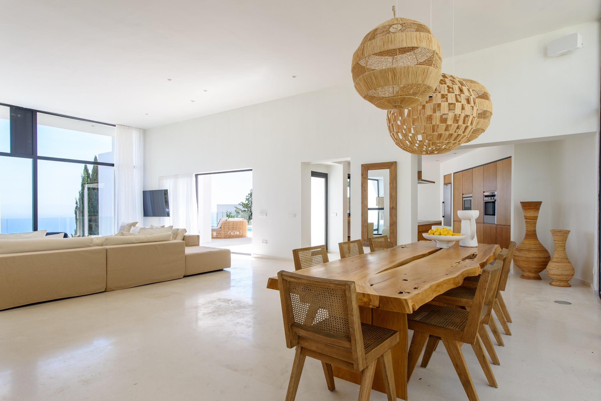 This striking contemporary 5-bedroom villa is set high above sea level in the prestigious gated community of Roca Llisa, offering breathtaking panoramic sea and countryside views. Just a short drive from Ibiza Town and the marina, it provides the perfect balance of privacy and convenience.