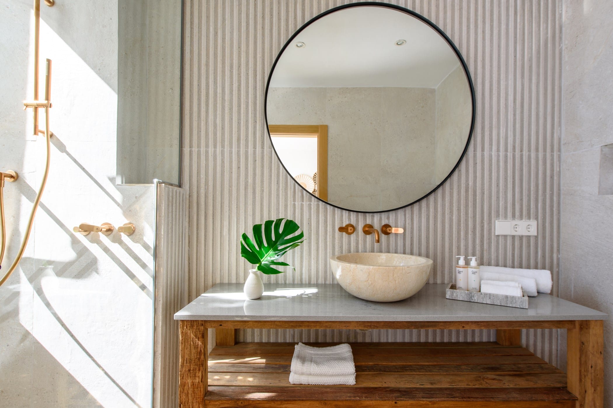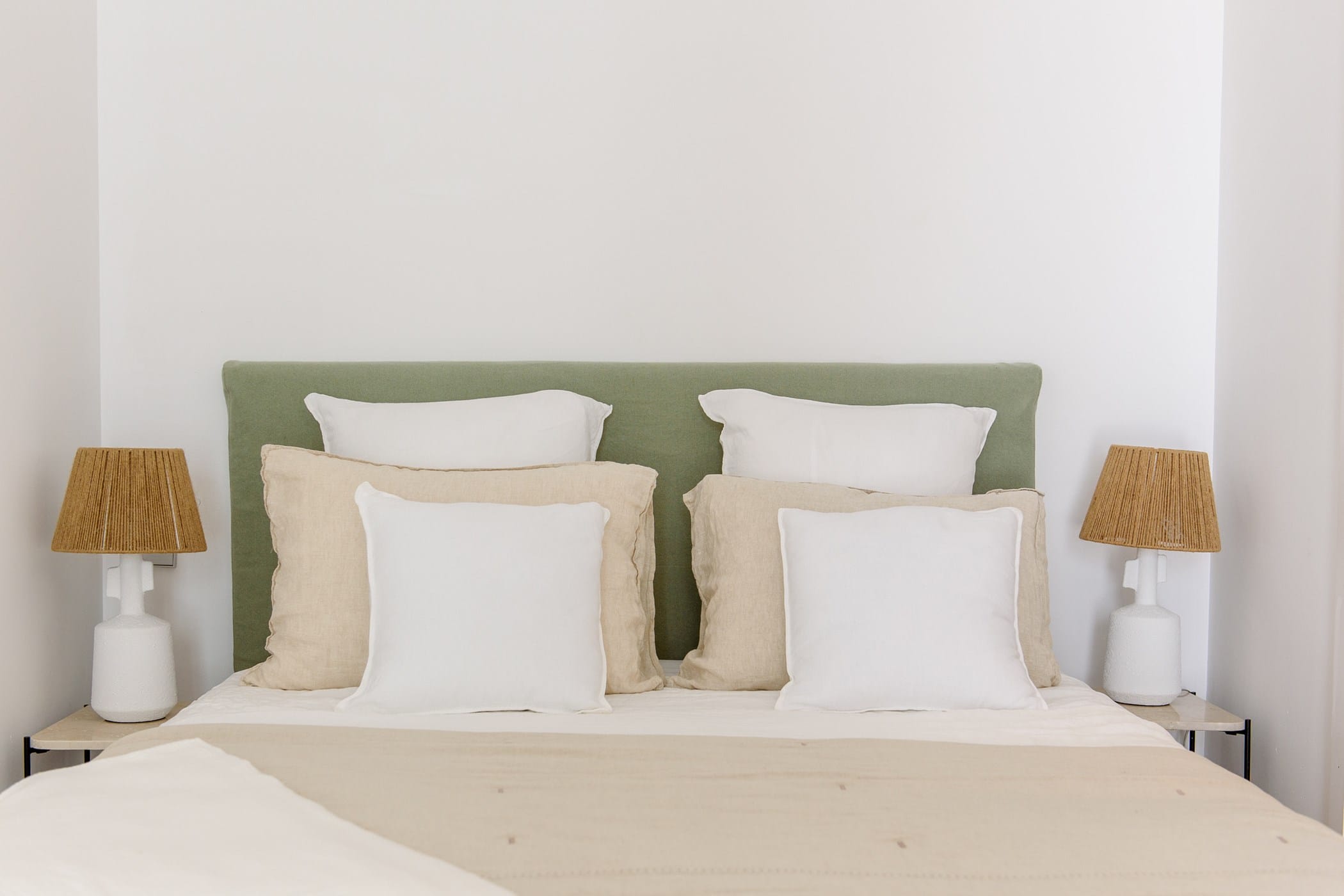 Outside: a stunning infinity pool (heatable on request) that blends into the horizon, surrounded by luxurious loungers, sunbeds, a shaded chill-out area, and an alfresco dining space with barbecue.
