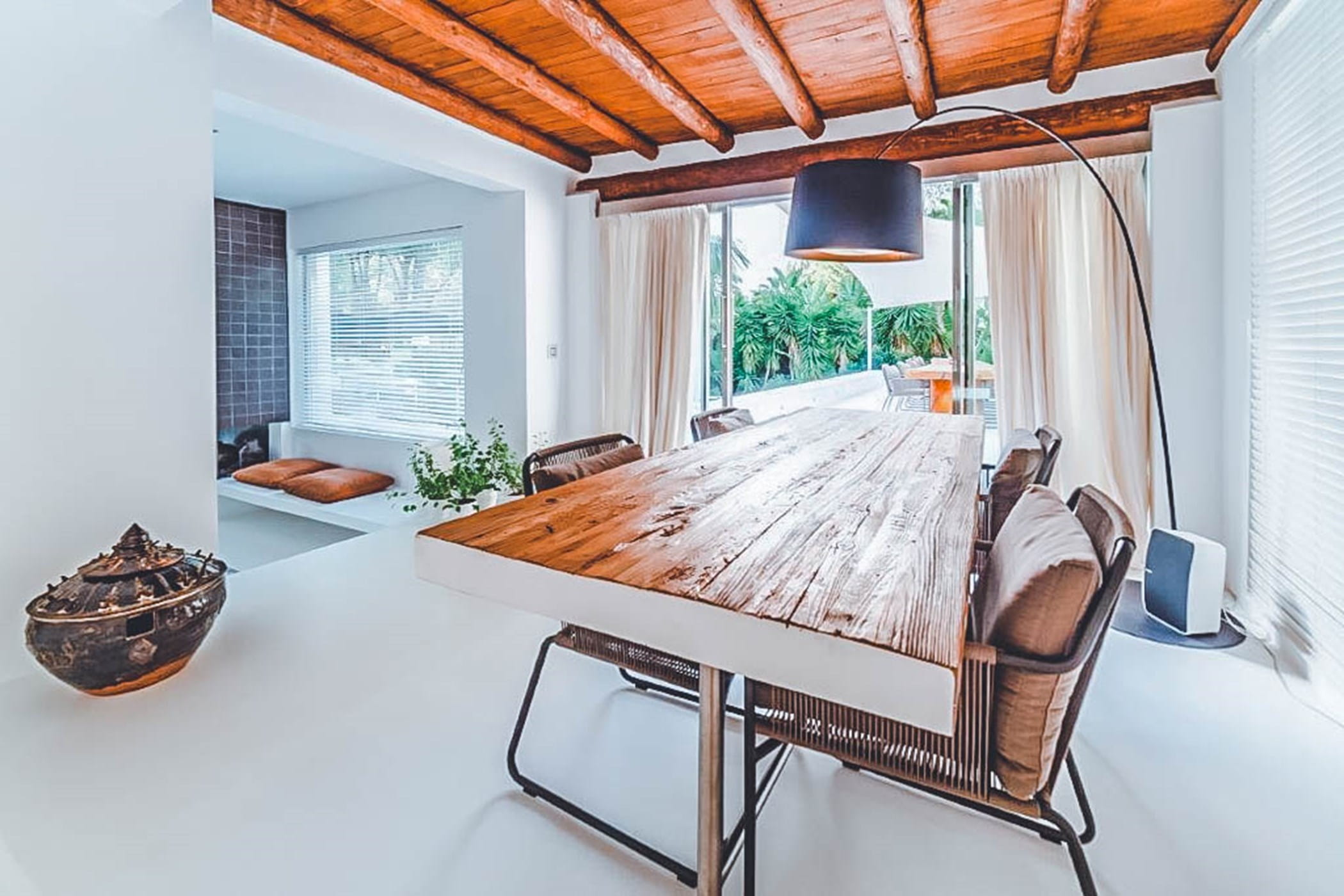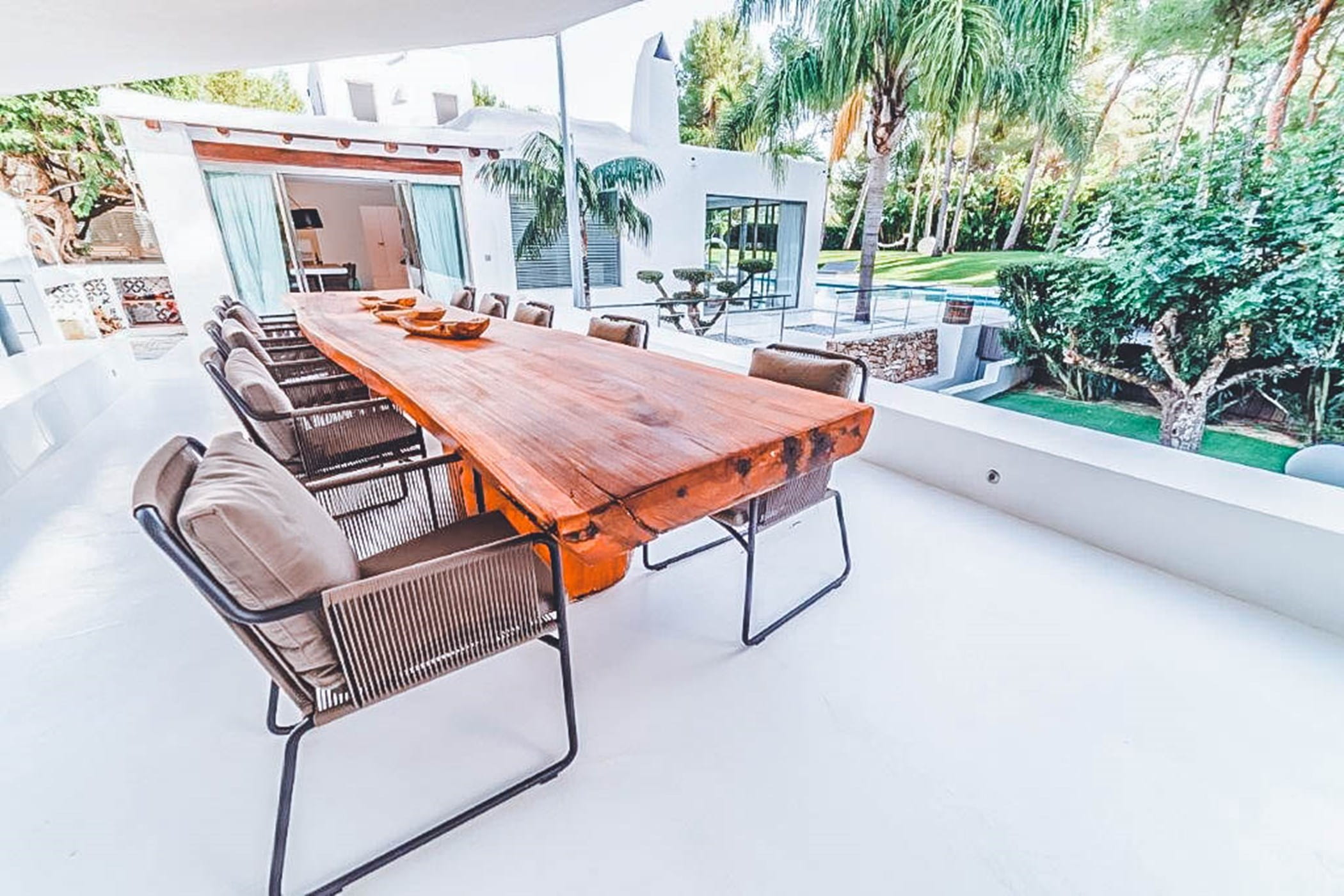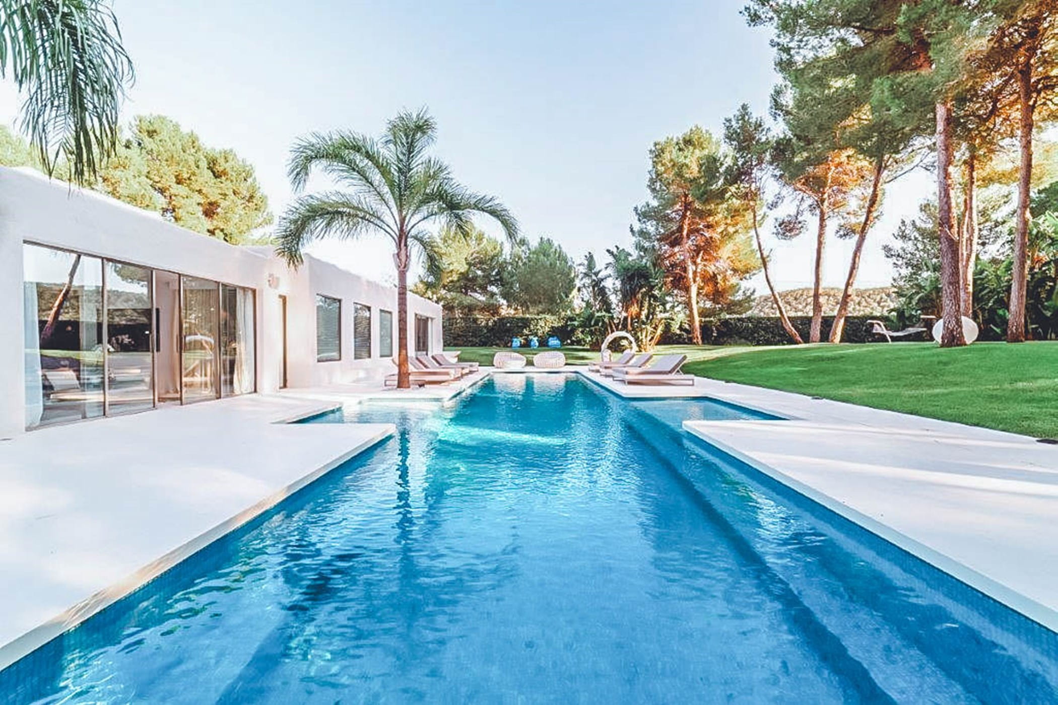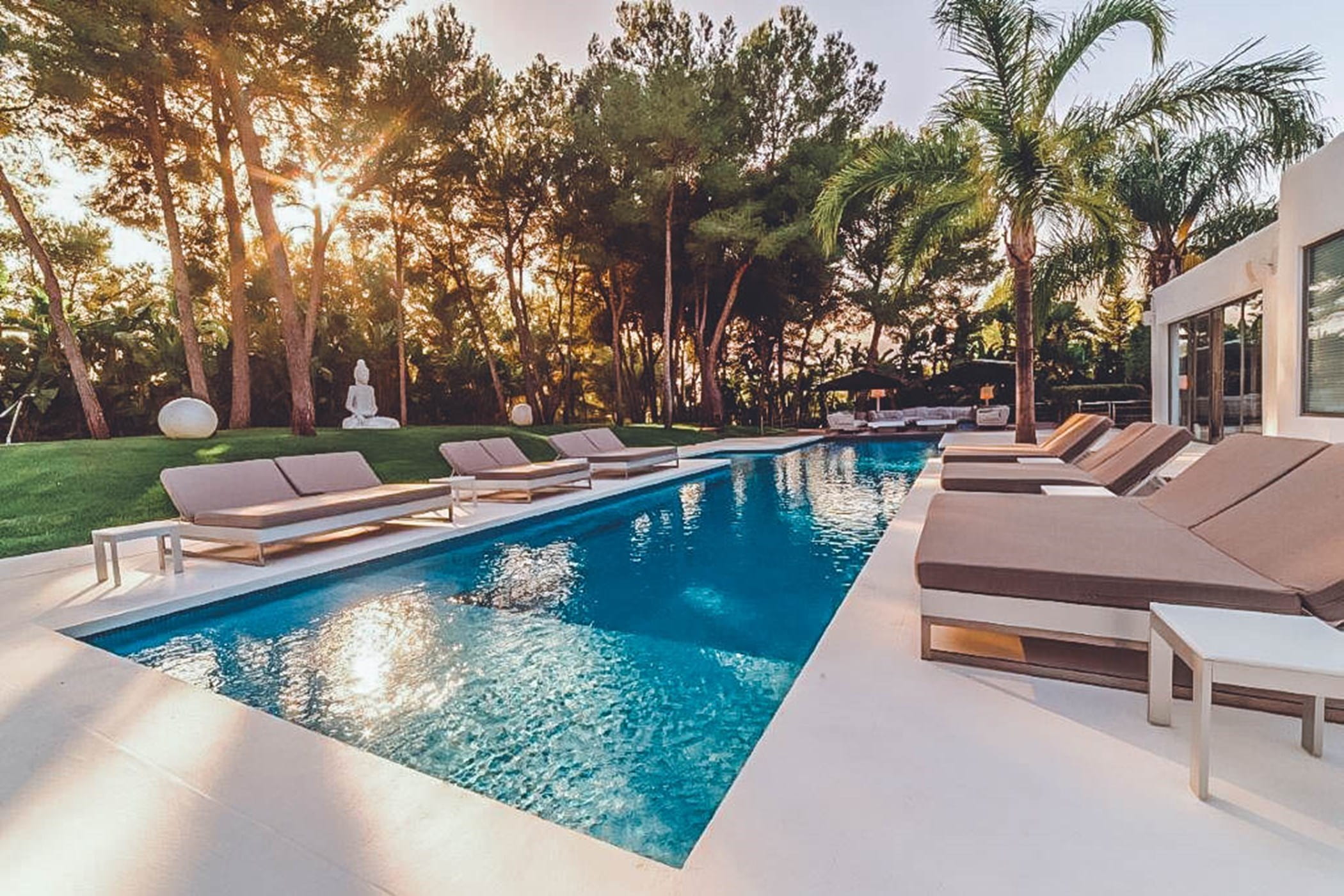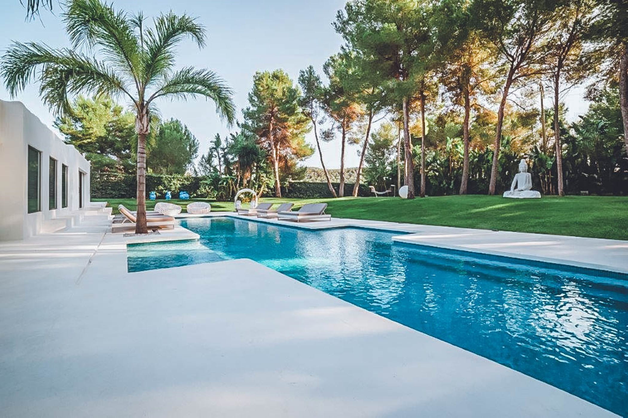 This beautifully restored and modernised Ibizan finca offers 5 spacious and luminous bedrooms within a lush garden filled with natural pines and an organic orchard. Located in a privileged position, it is just a short drive from Las Salinas beach and Ibiza Town’s vibrant dining and nightlife scene.