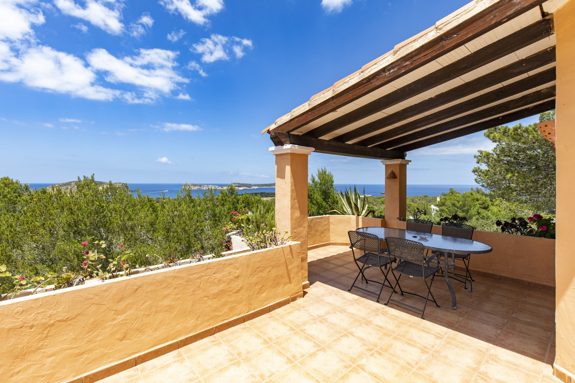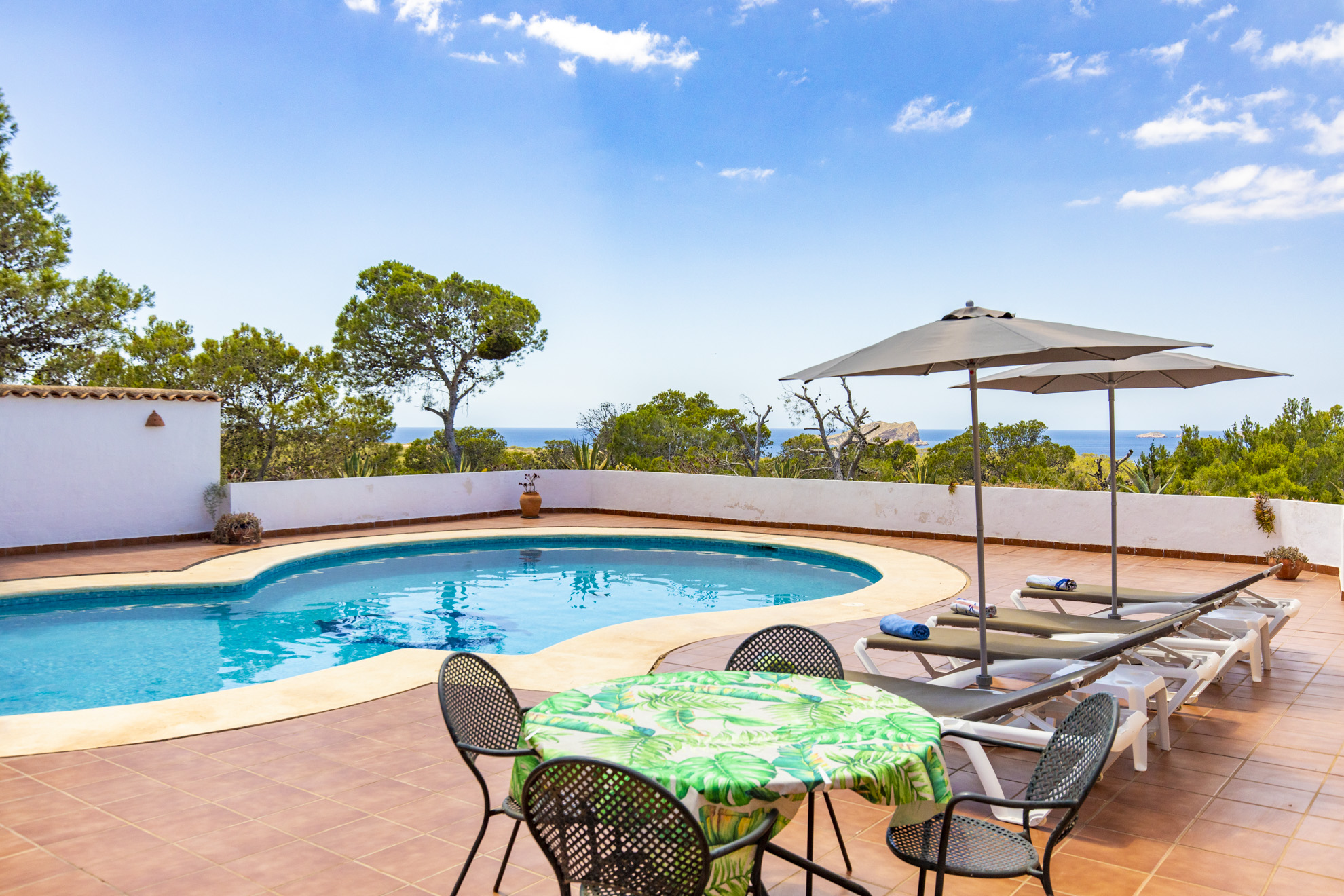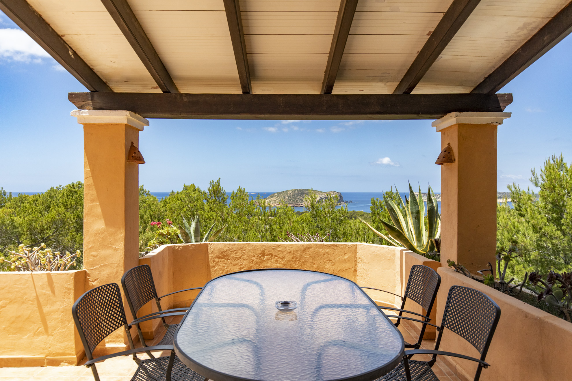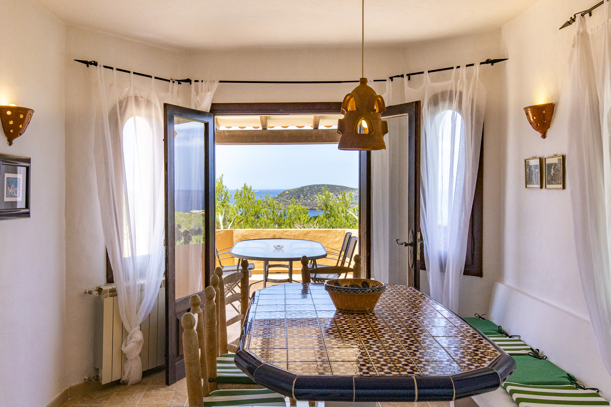 Nestled in the enchanting west part of the island, overlooking the picturesque shores of Cala Compte and Cala Conta, this villa offers an awe-inspiring panorama of untouched landscapes extending to the vast sea, all complemented by the legendary sunsets! A mere 15-minute leisurely stroll takes you to the beautiful beaches of Cala Compte and Cala Conta, making it easily accessible on foot. This retro-inspired villa, situated on an expansive 16,500m² seafront plot, beckons relaxation on its spacious pool terrace featuring a BBQ, a quaint outdoor kitchen, an alfresco shower, and a covered patio with a dining area.