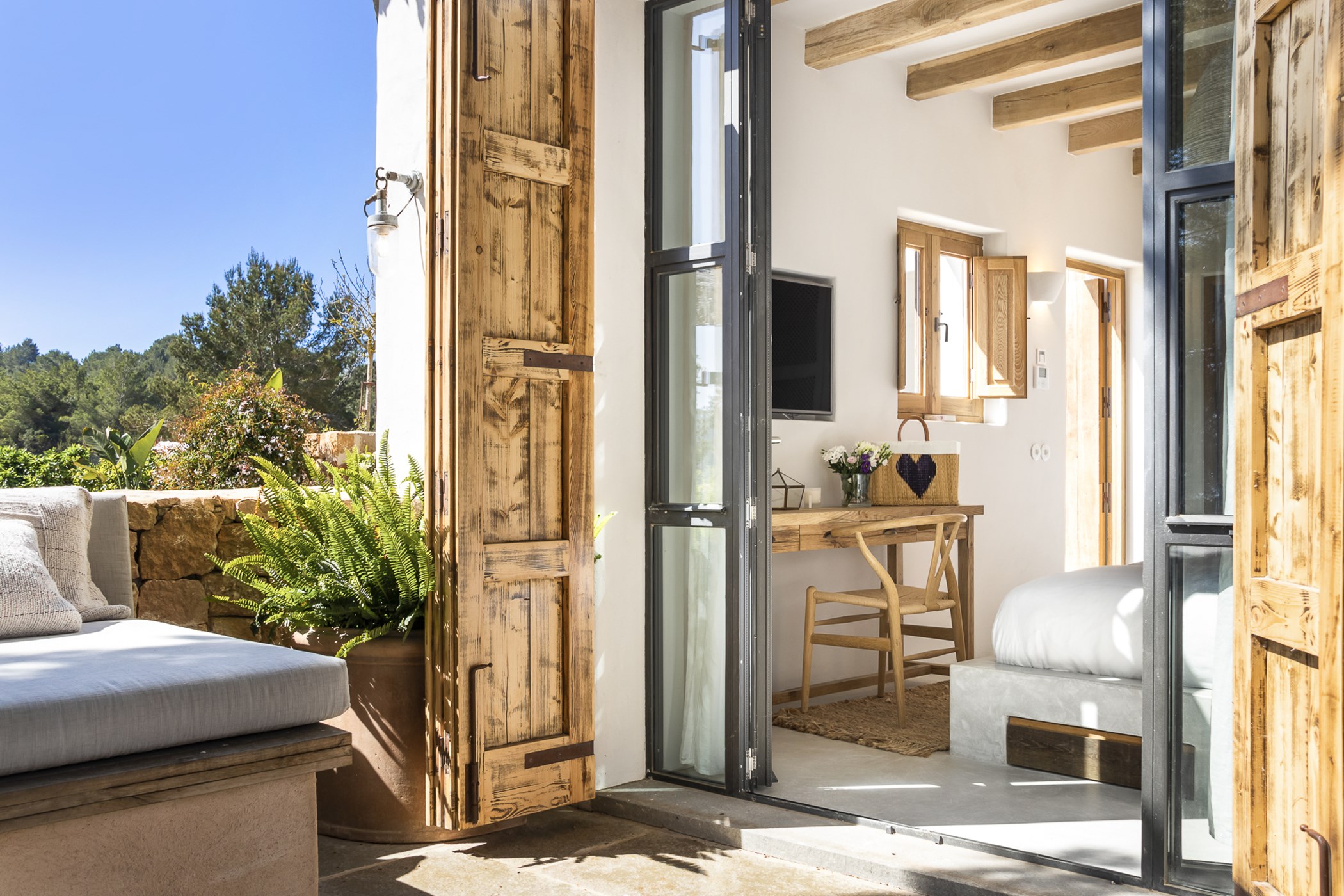 This meticulously restored classic finca in tranquil S’Estanyol sits on a 3,500m² private plot, blending rustic Ibizan charm with contemporary elegance. Reclaimed timber, Crittall doors, flowing linen, and whitewashed walls create a refined yet relaxed atmosphere with seamless indoor-outdoor flow.