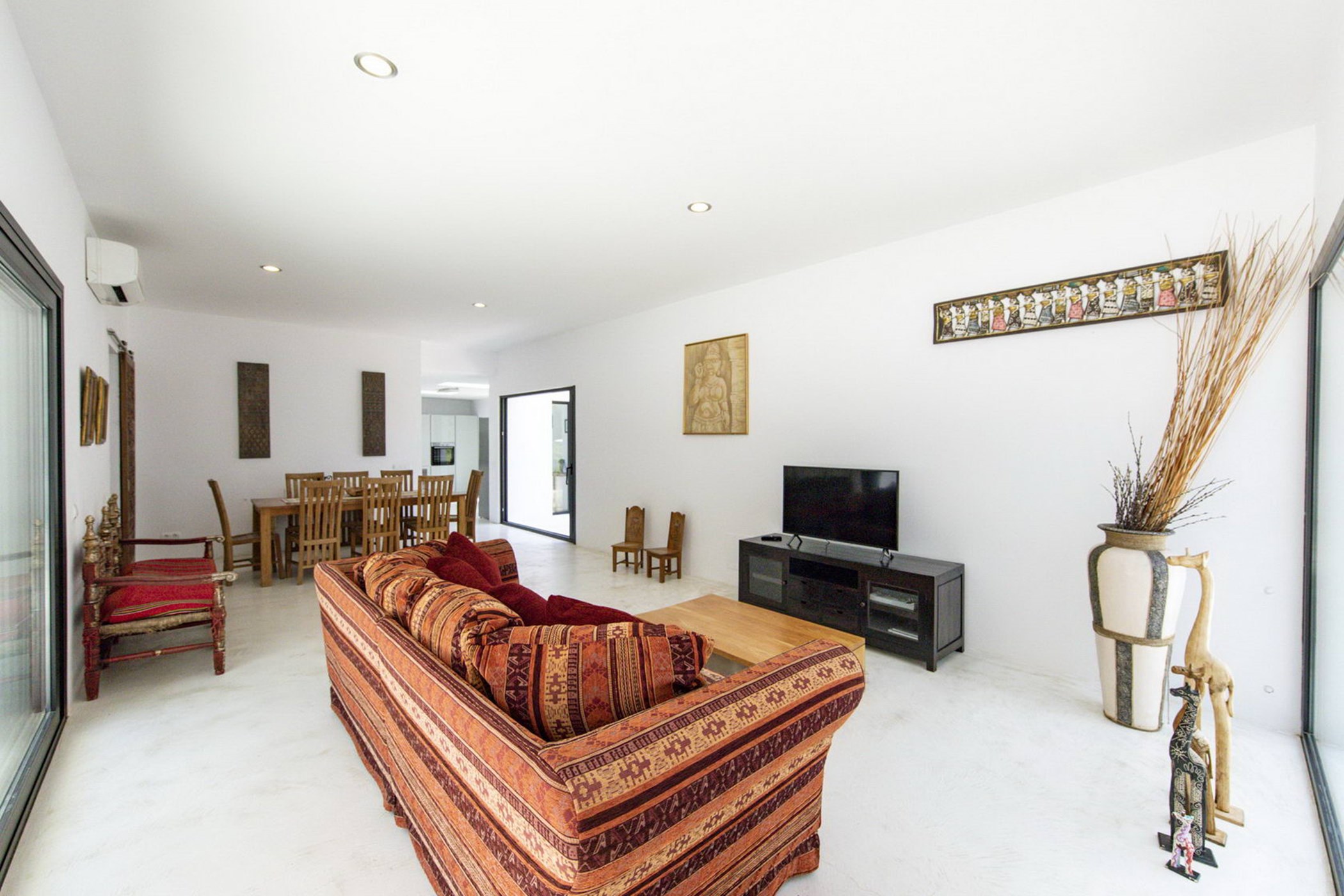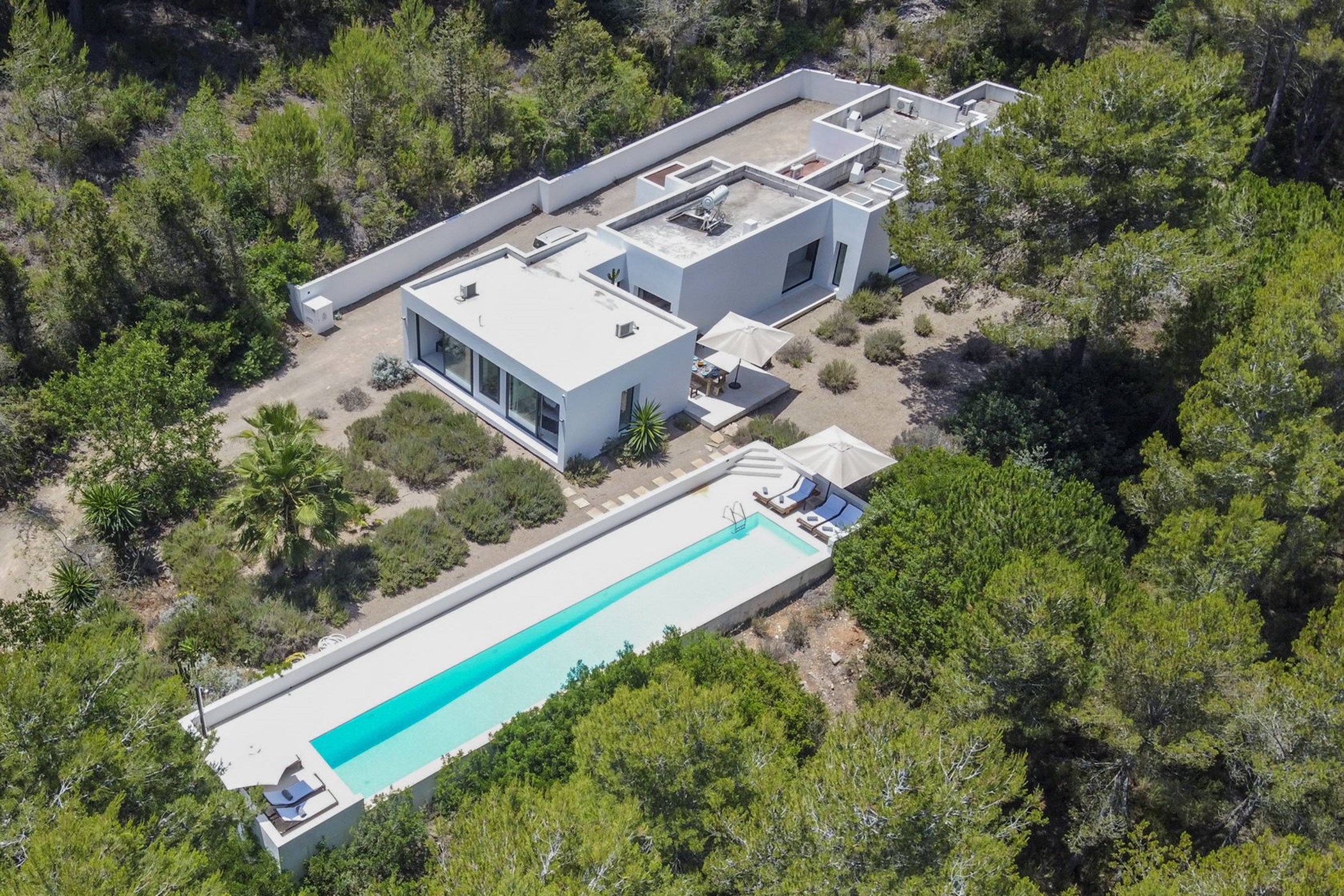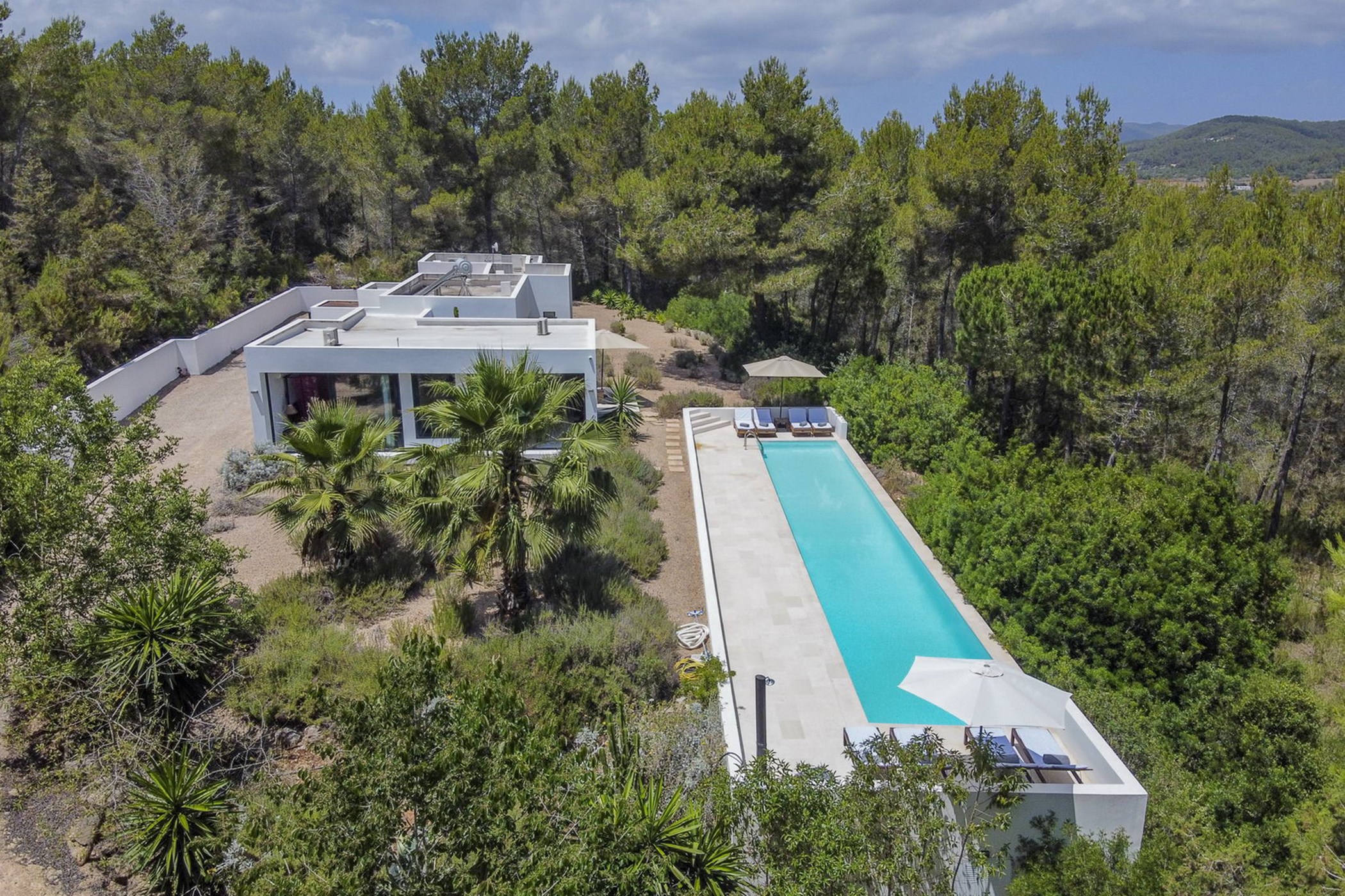 Discover an exclusive 4-bedroom villa in Ibiza, ideally located between Ibiza Town, Santa Eulalia, and Santa Gertrudis. This property seamlessly blends contemporary minimalism with the traditional charm of an Ibizan finca, offering the best of both worlds. Set on a sprawling 40,000 m² plot in the heart of the Ibiza forest, the villa has been meticulously renovated, combining timeless elegance with modern luxury.