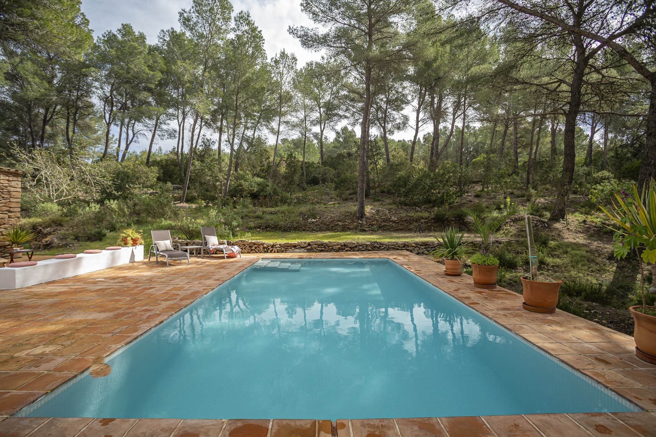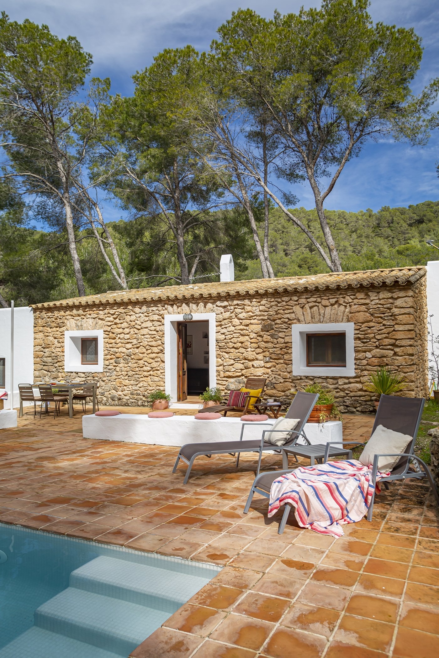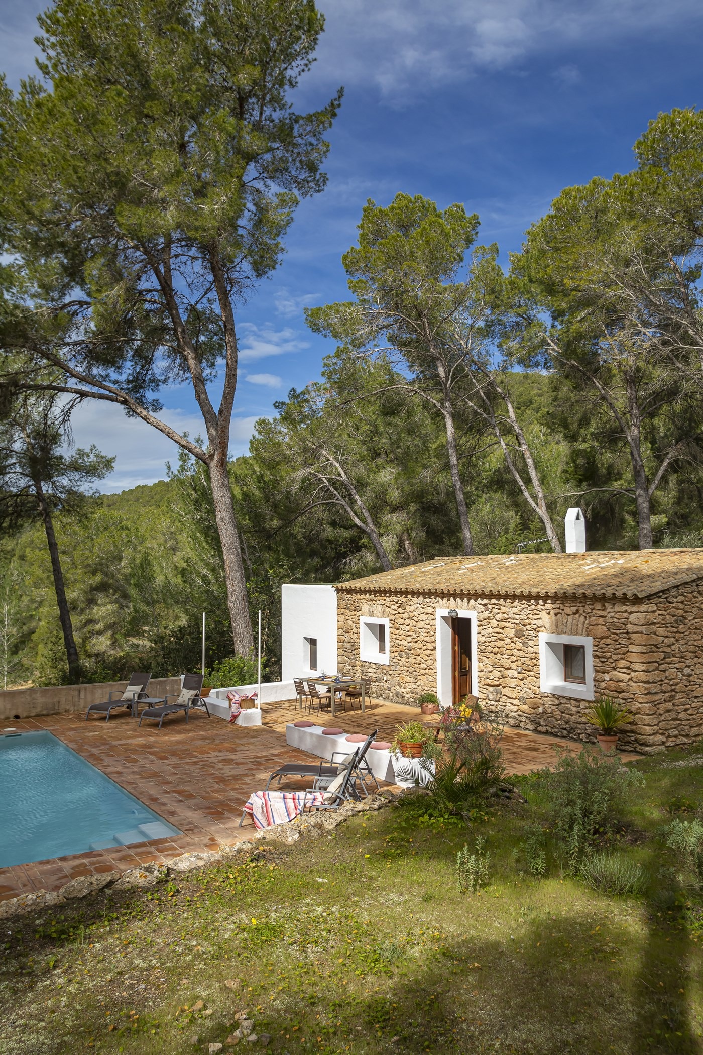 Nestled in a serene pine forest, this beautifully restored country house blends traditional Ibizan charm with modern comfort. Its 80cm-thick stone walls keep interiors naturally cool in summer.