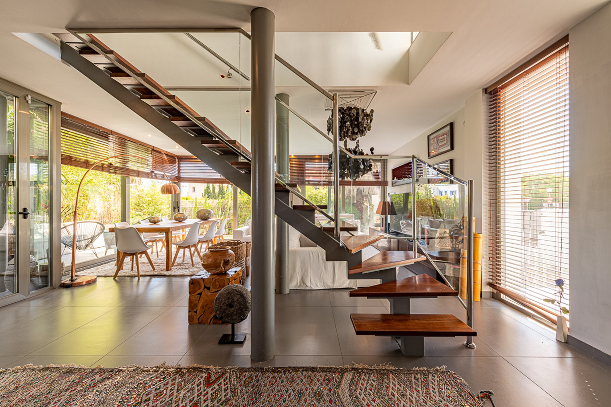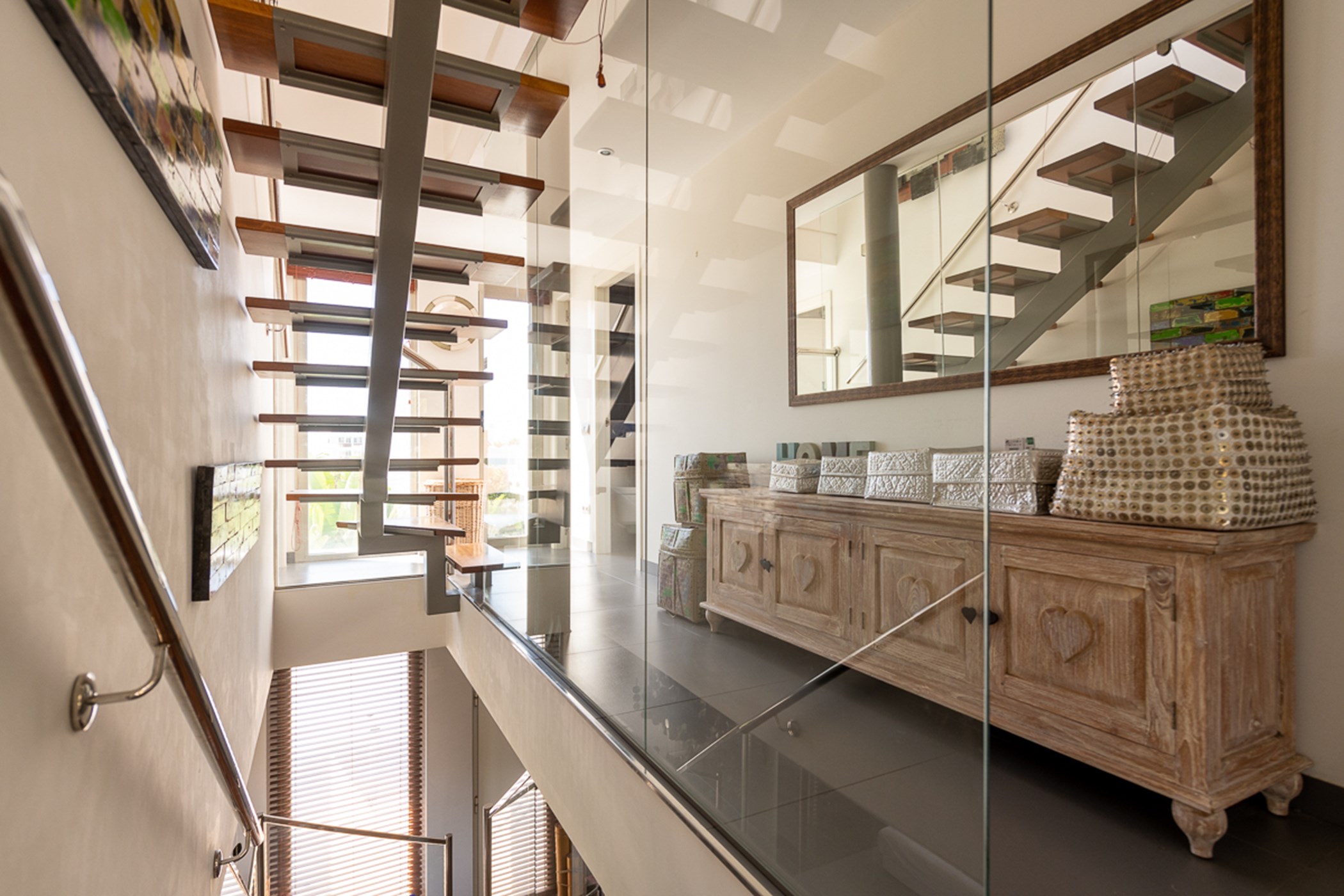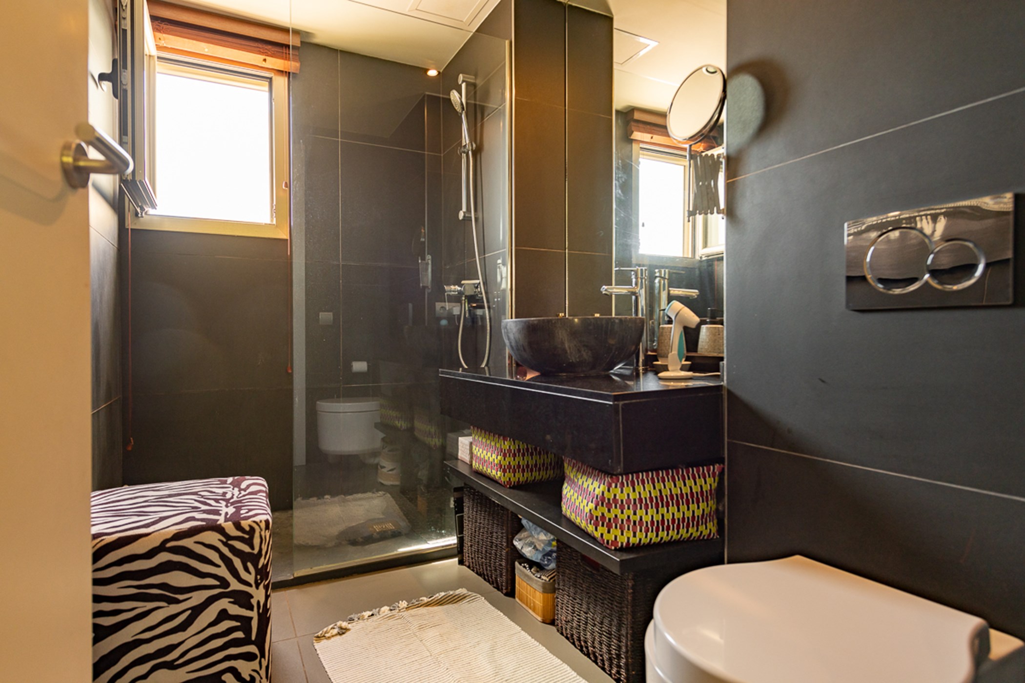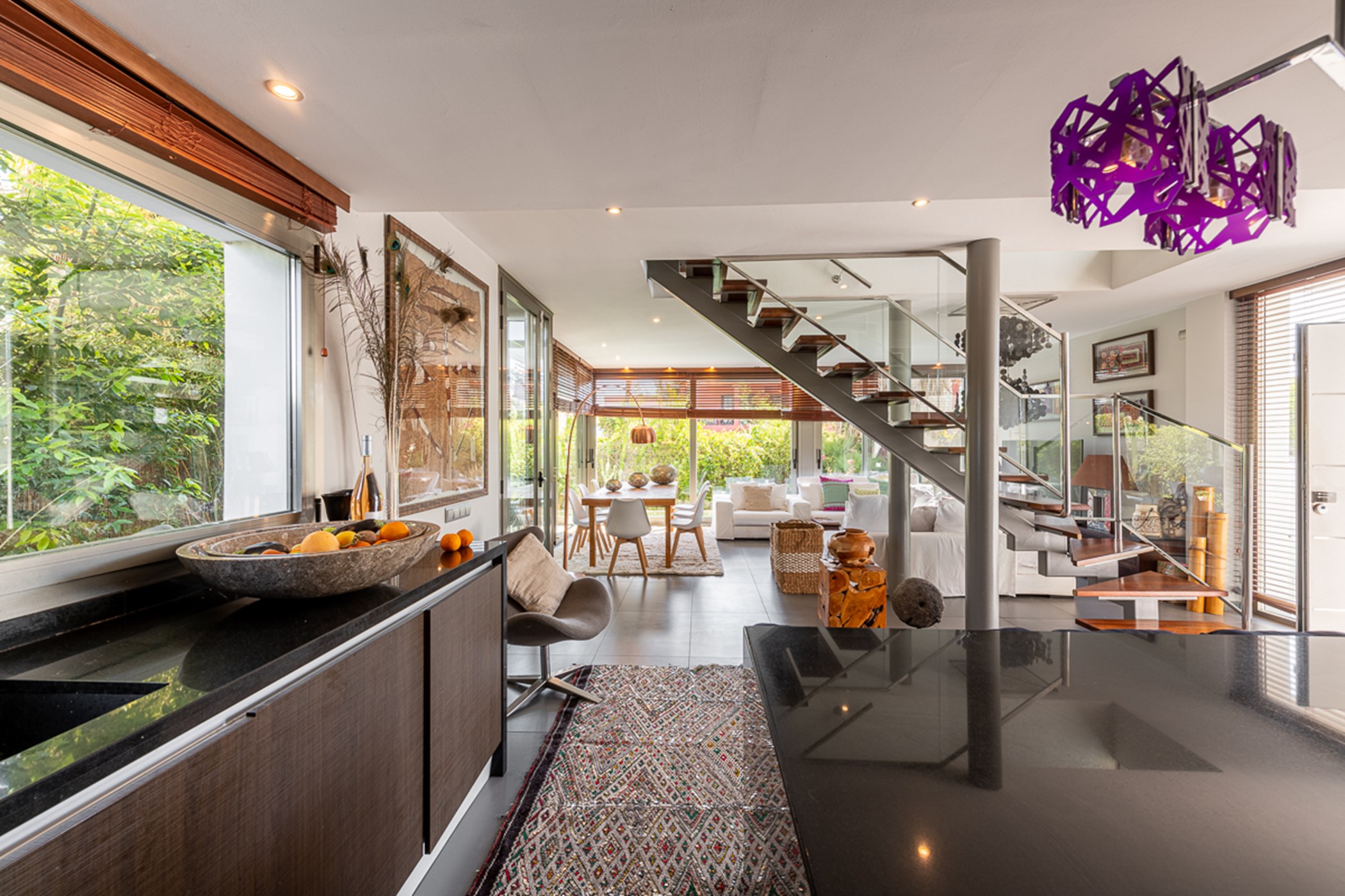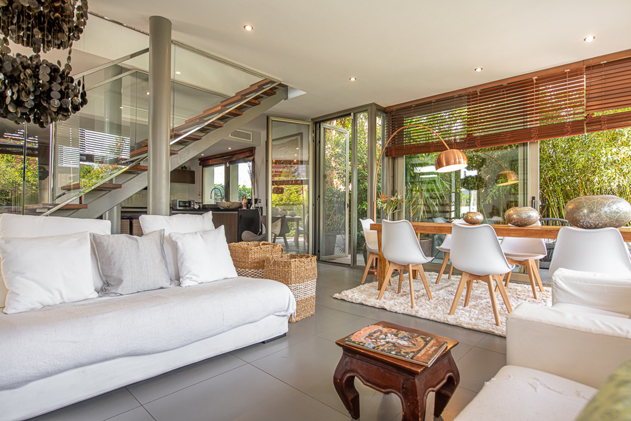 Built over two levels to an exceptionally high standard, it features quality materials and impeccable design. Bright, open-plan living spaces open directly onto a terrace with sea and Ibiza Old Town views – ideal for relaxing or entertaining.