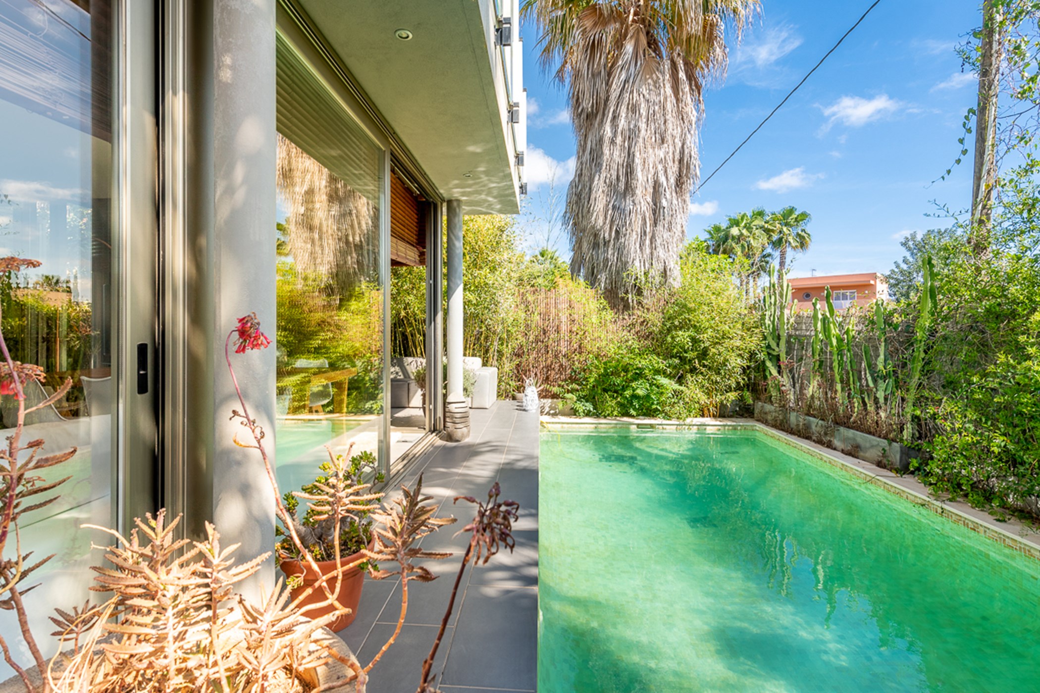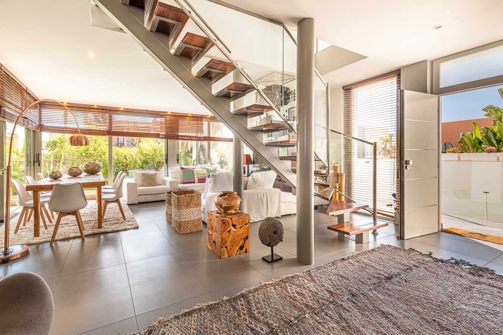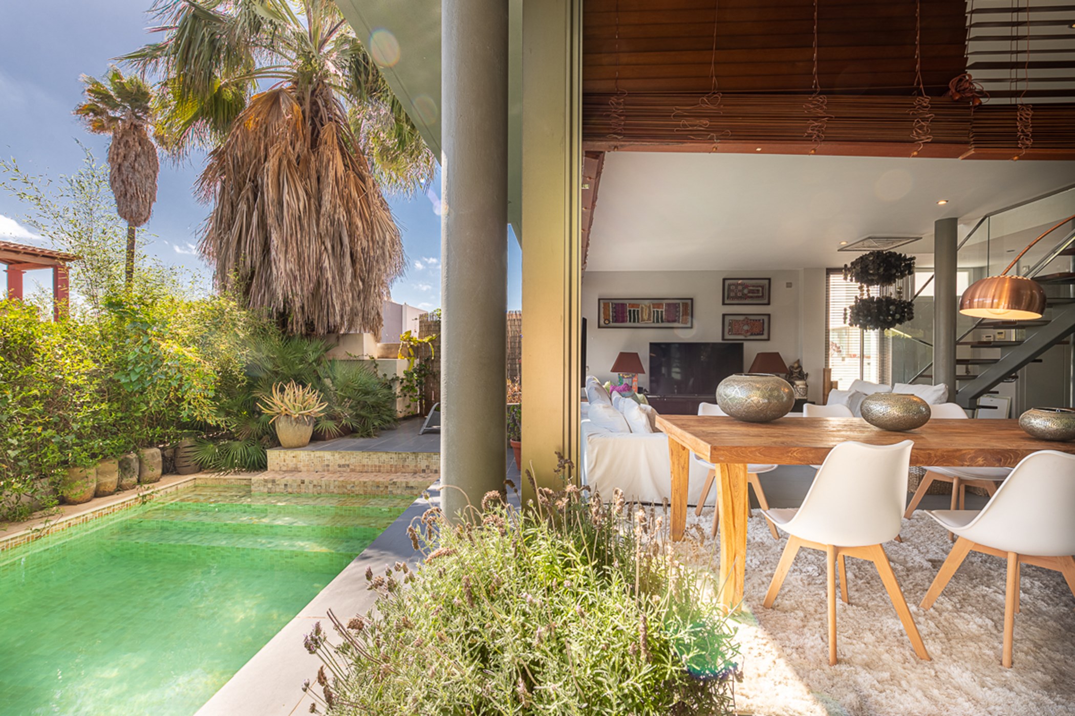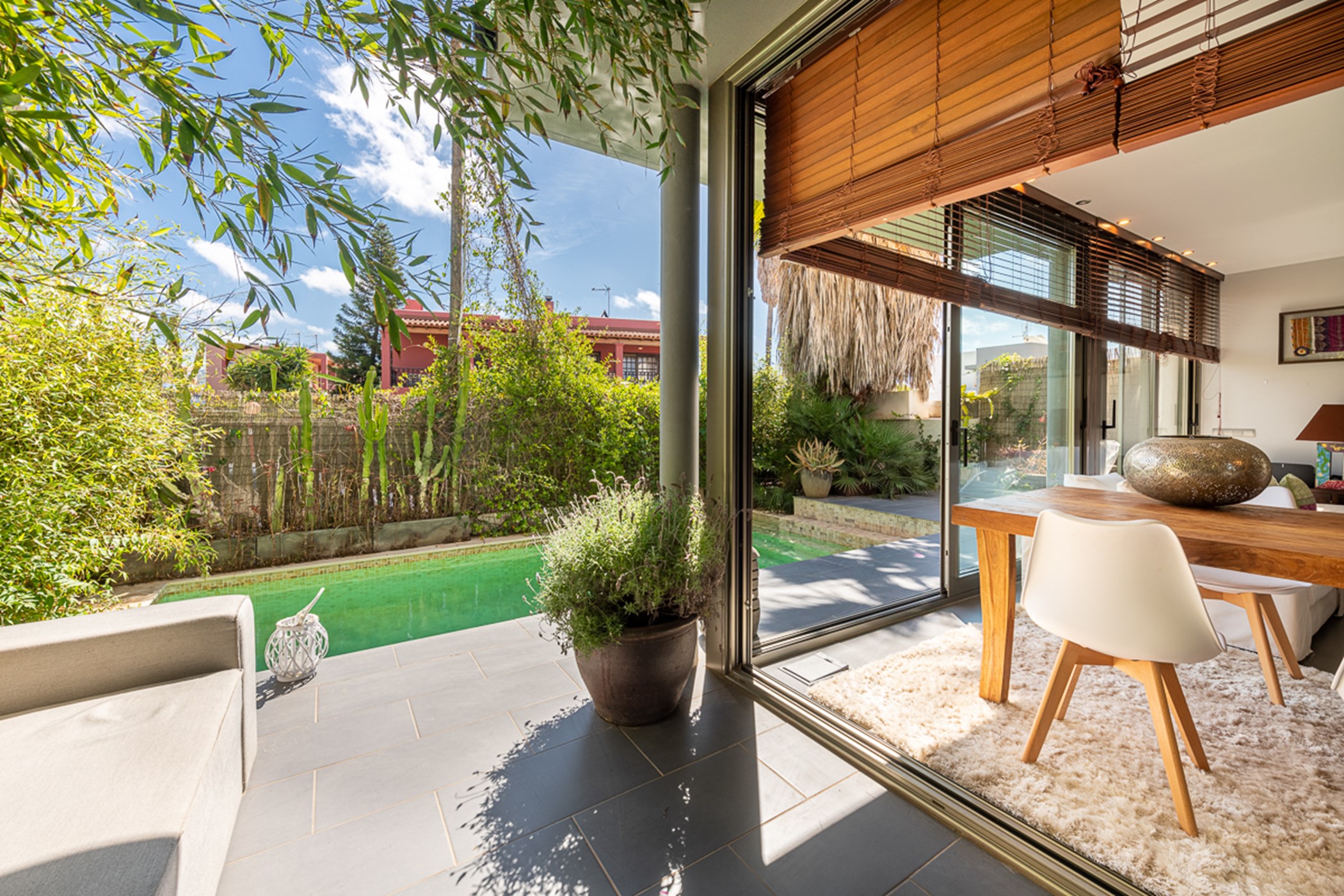 Located in the charming village of Jesús – with favorite local coffee shops and restaurants – this adorable townhouse is just a 3-minute drive from Talamanca beach. It offers a calm, comfortable base close to Ibiza Town's vibrant nightlife, exclusive beaches, sports centers, and outdoor activities.