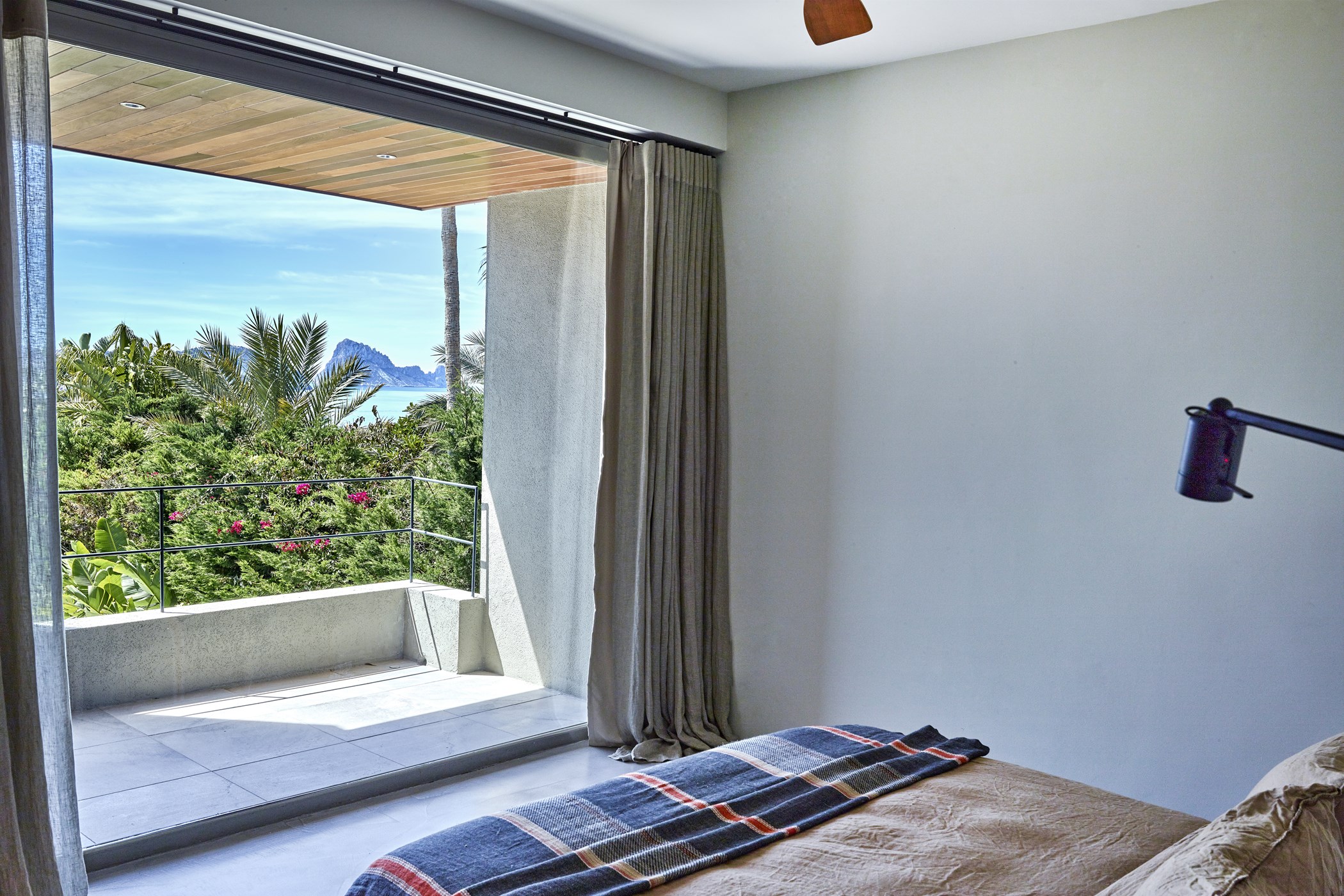 High ceilings and expansive windows fill interiors with natural light, seamlessly connecting to sun-drenched terraces and a landscaped garden—ideal for relaxing, dining, or entertaining. The private pool offers tranquility, while the spectacular rooftop terrace provides panoramic sea views, perfect for Ibiza’s legendary sunsets.