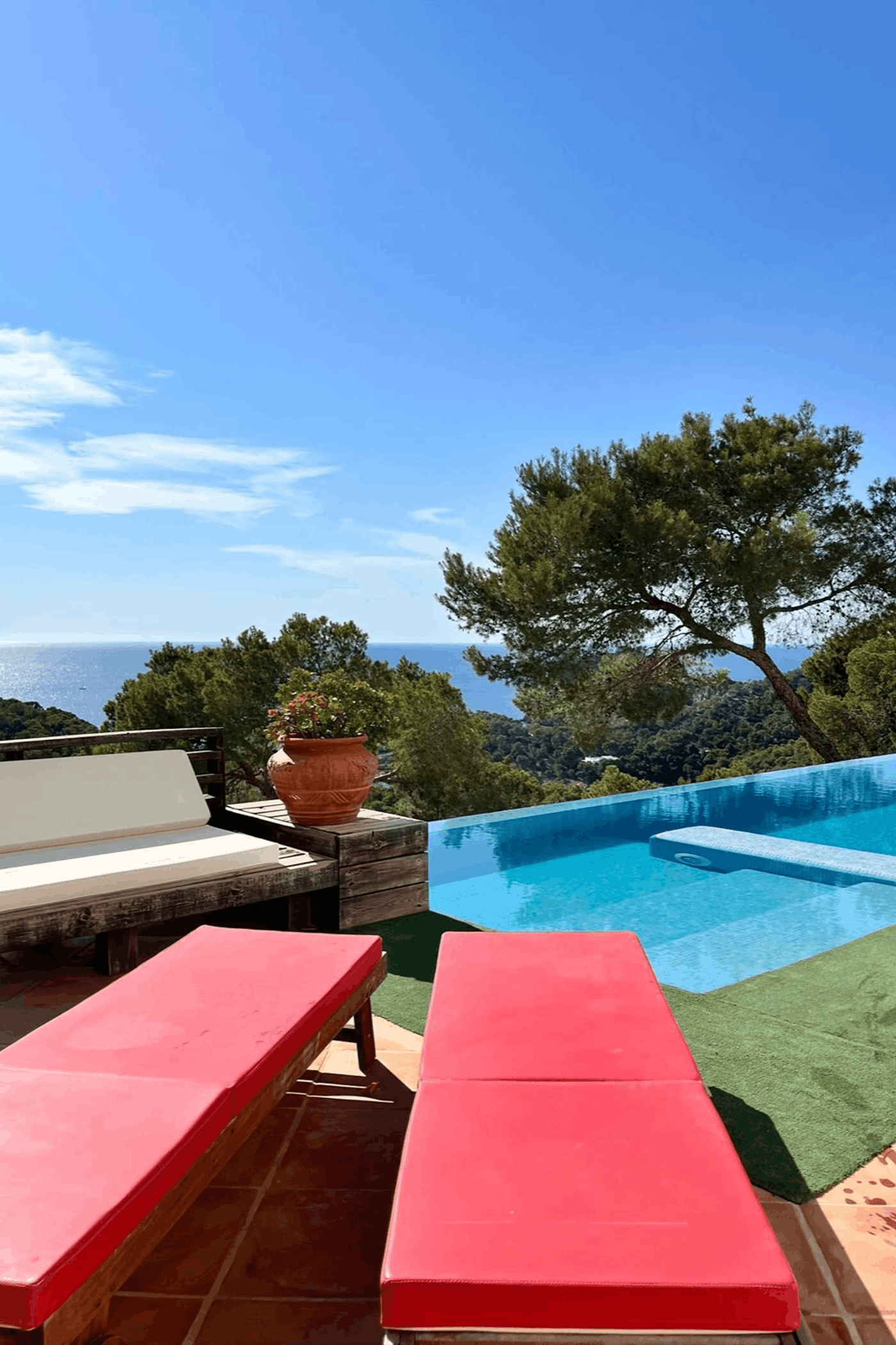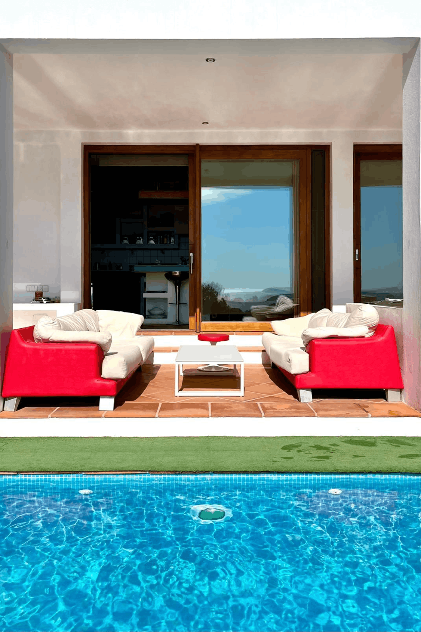 Every room faces the sea. Walking distance to Cala Salada, close to iconic sunset spot La Torre, with easy access to Ibiza Town via main road. Quiet, private, and surrounded by nature.
