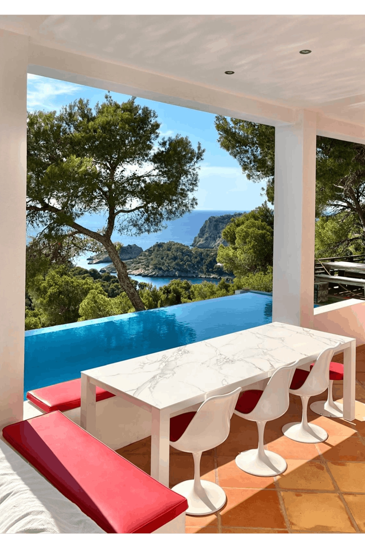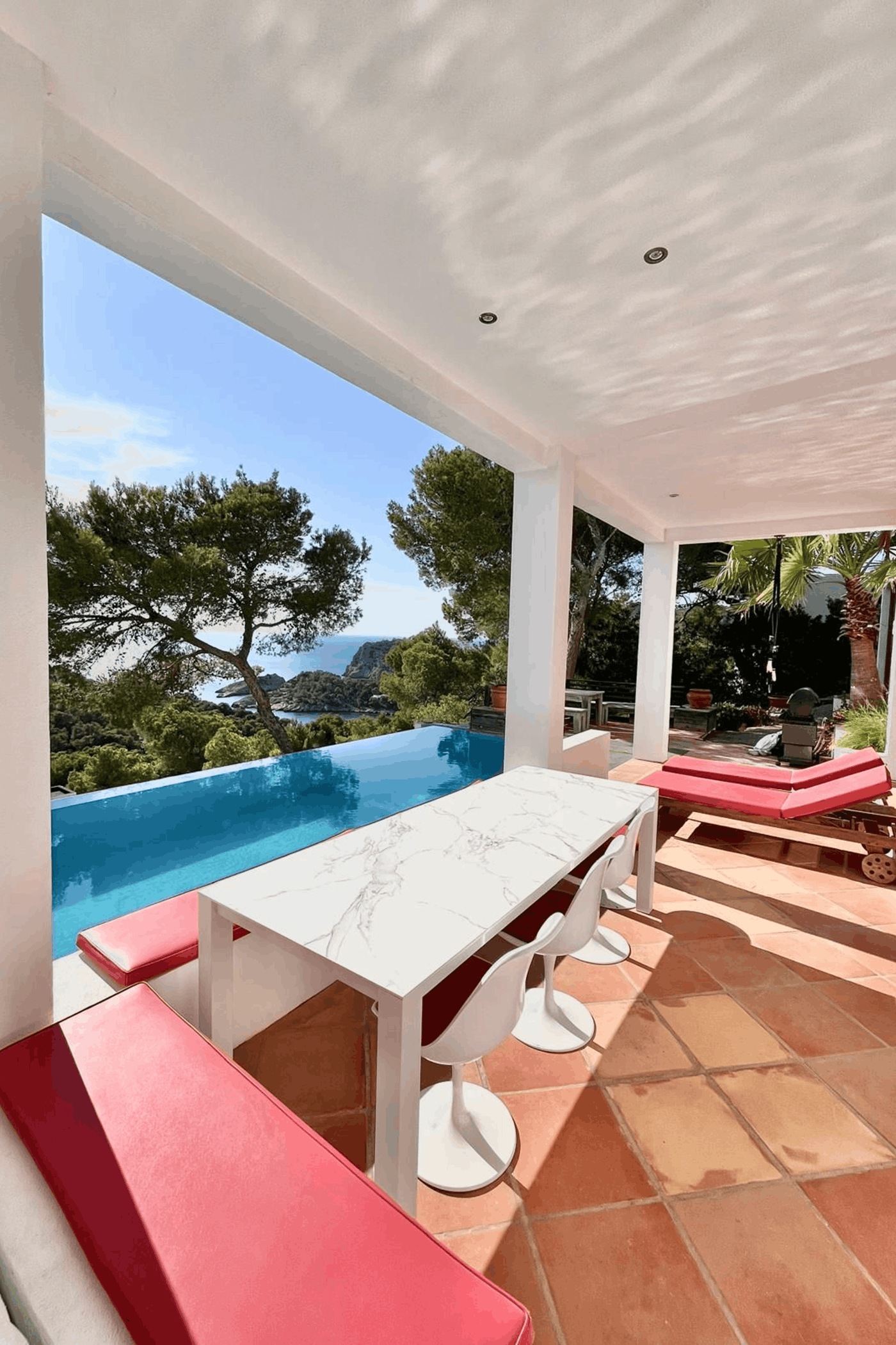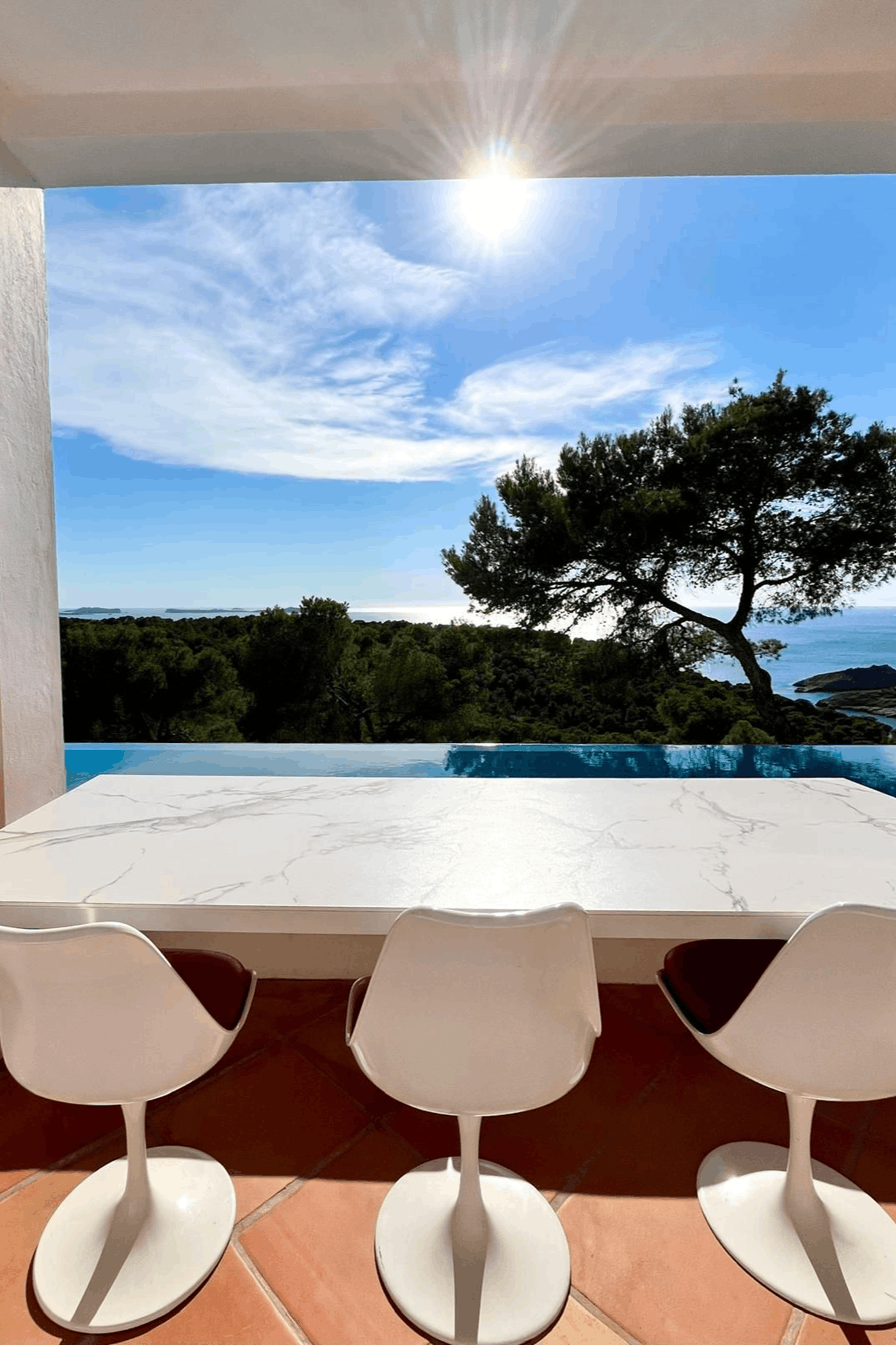 Perched above one of Ibiza’s most breathtaking coastlines, this exceptional villa features a 15-meter infinity pool with 180° panoramic sea views, perfectly aligned for year-round sunsets.