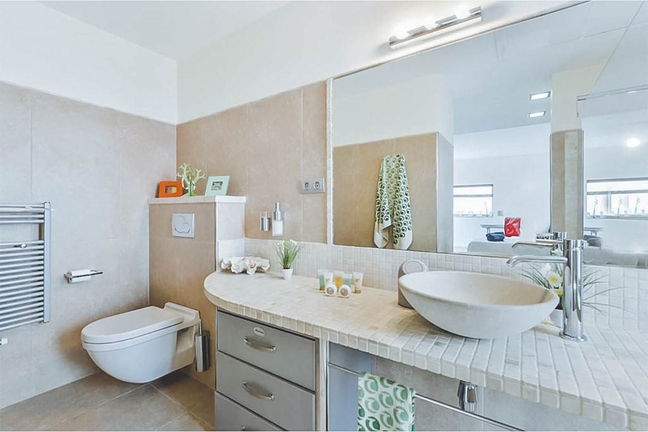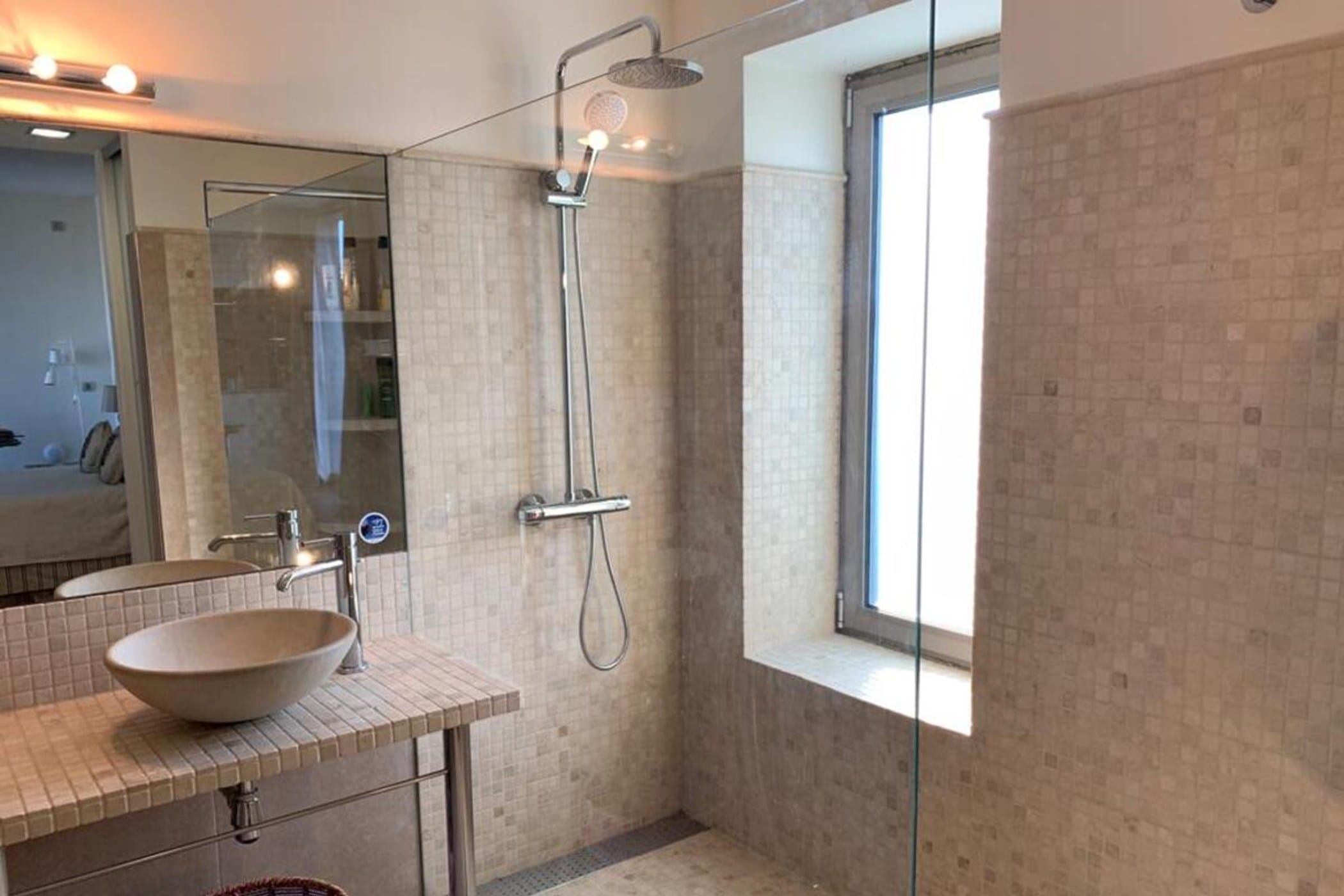 Four double bedrooms: two on the first floor (each with private bathroom and terrace), two on the ground floor (sharing a hall bathroom with shower; one has a small double bed, better suited for one adult).