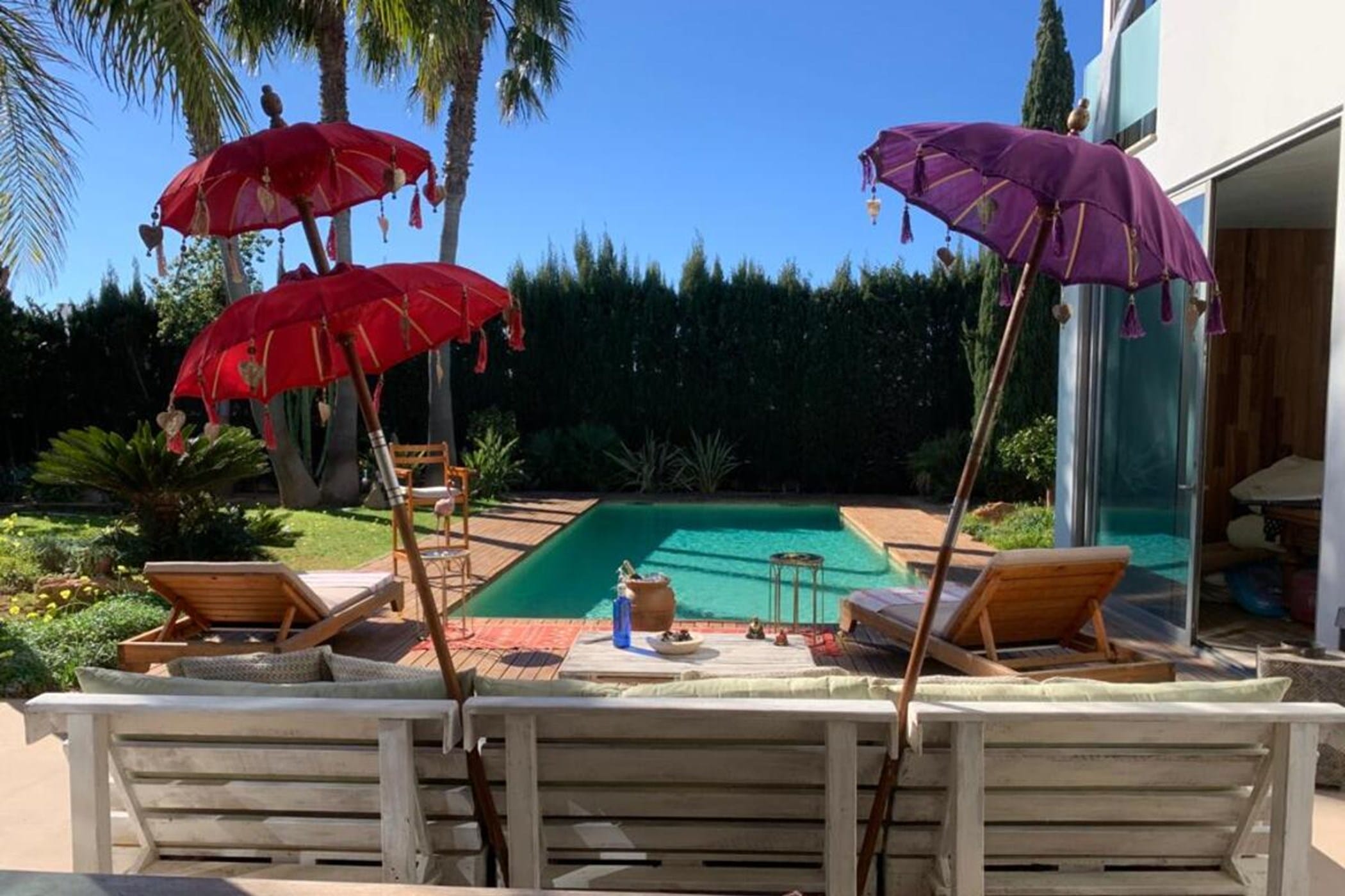Spread over 300m²: stunning living room with high ceilings and views of the pool/garden, spacious outdoor lounge and dining area for summer evenings. Fully equipped modern kitchen.