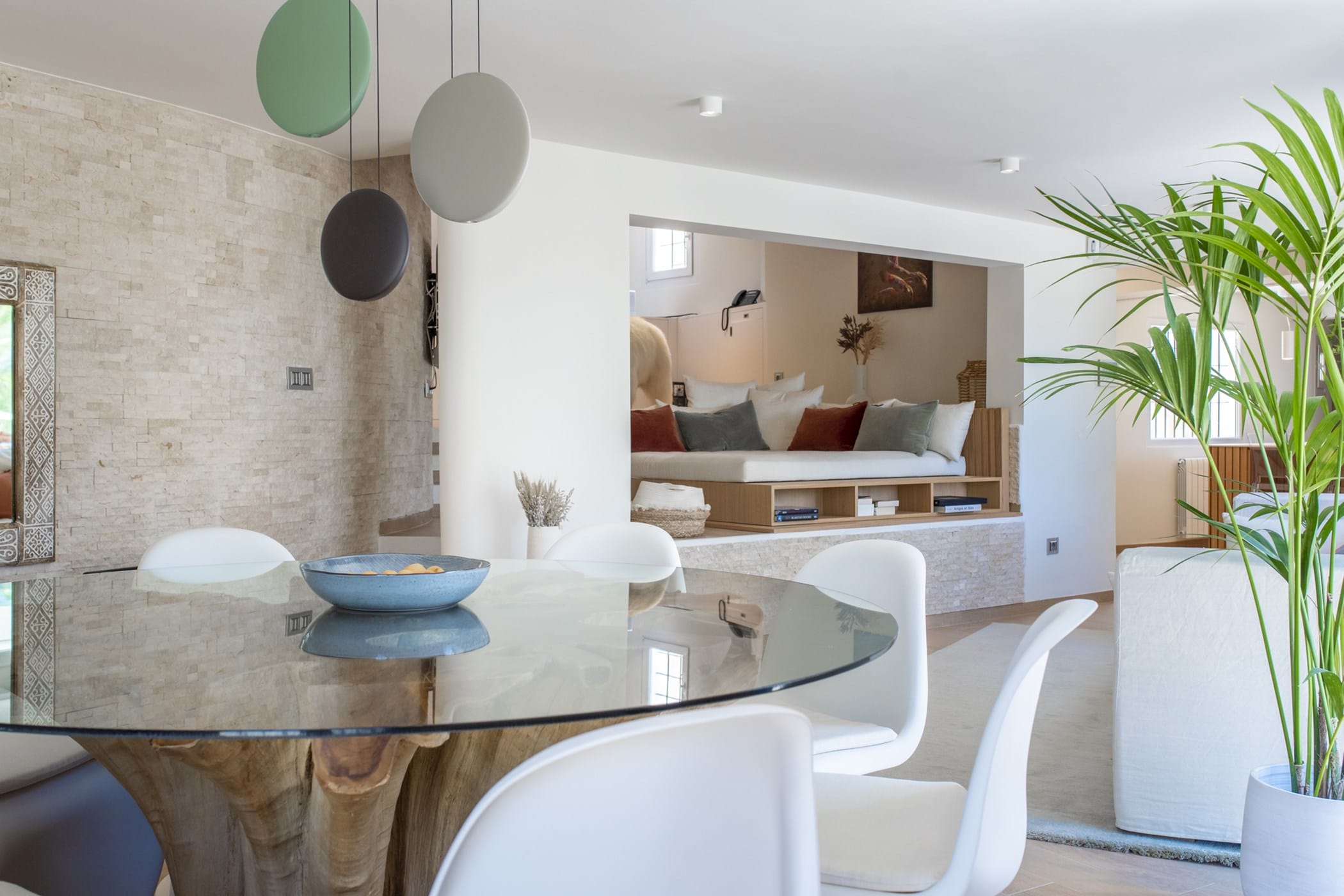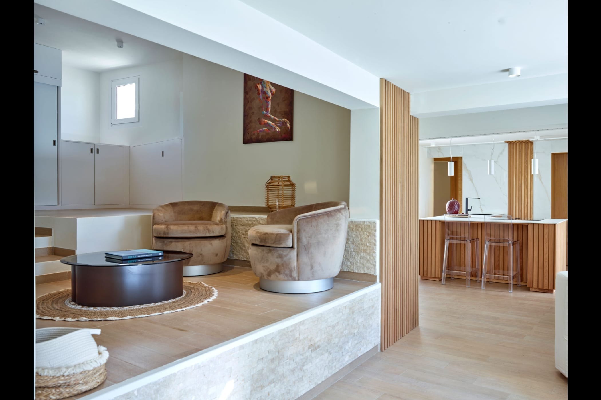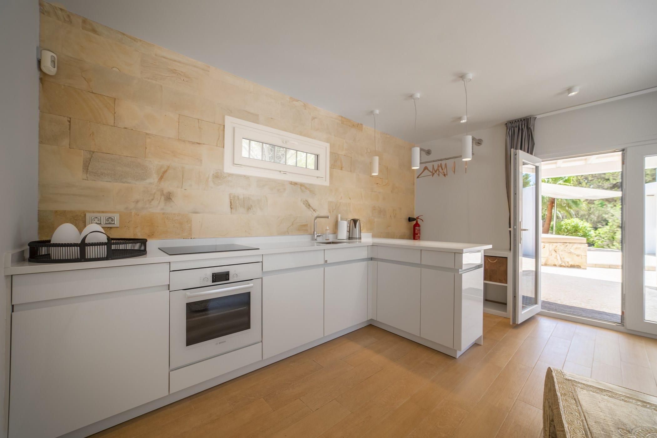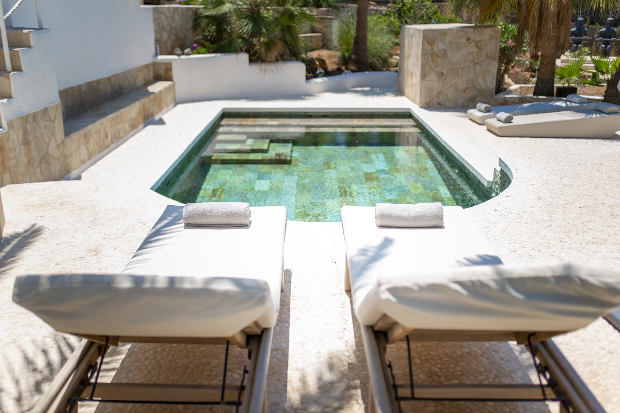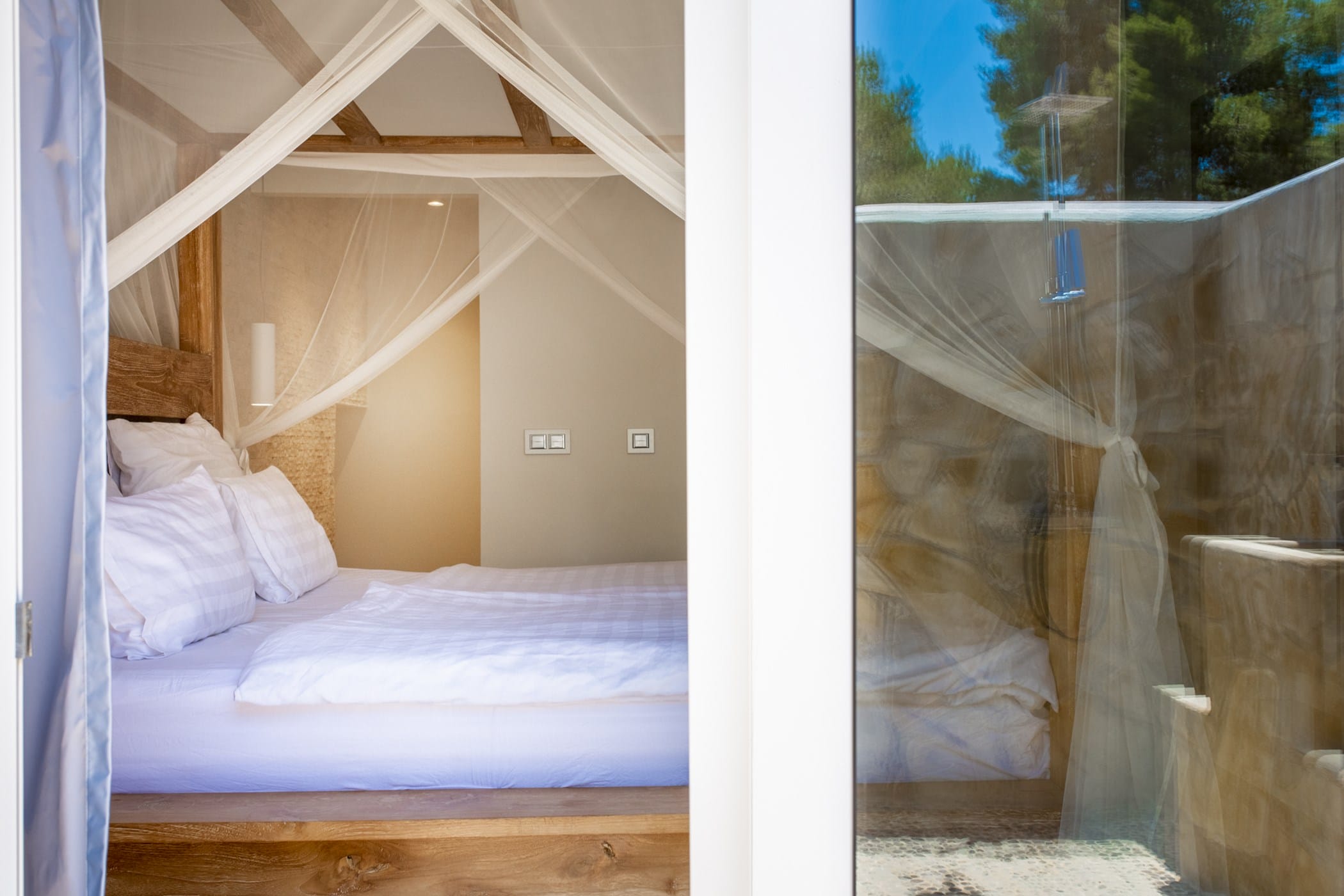 This modern finca sits on a private crescent-shaped plot in southwest Ibiza, just 3 km from Cala Tarida and its beach clubs. Fully renovated in 2021, it offers a fresh contemporary feel across three levels.