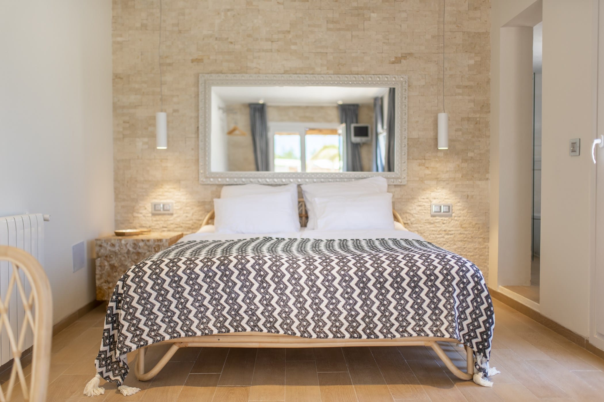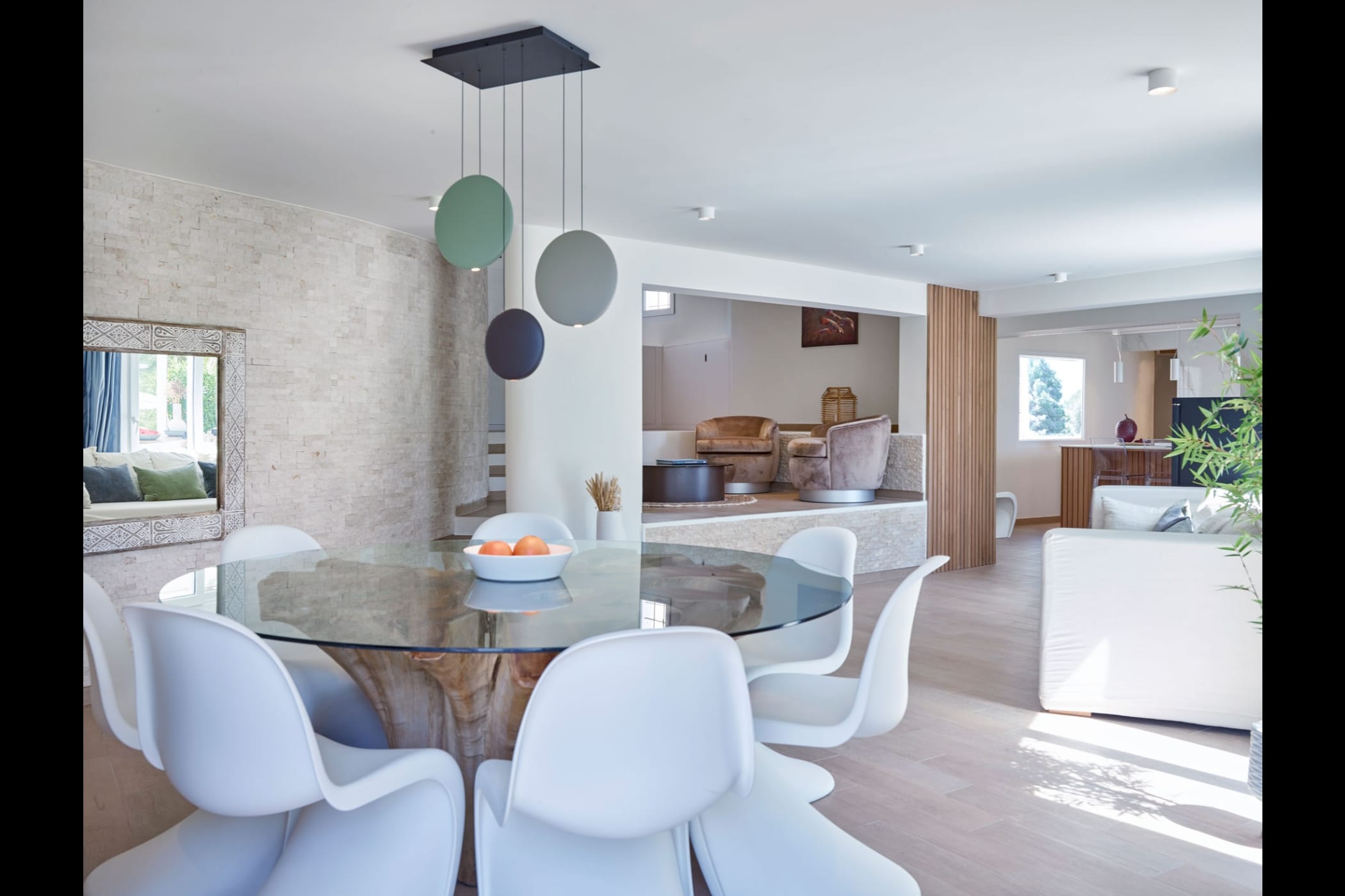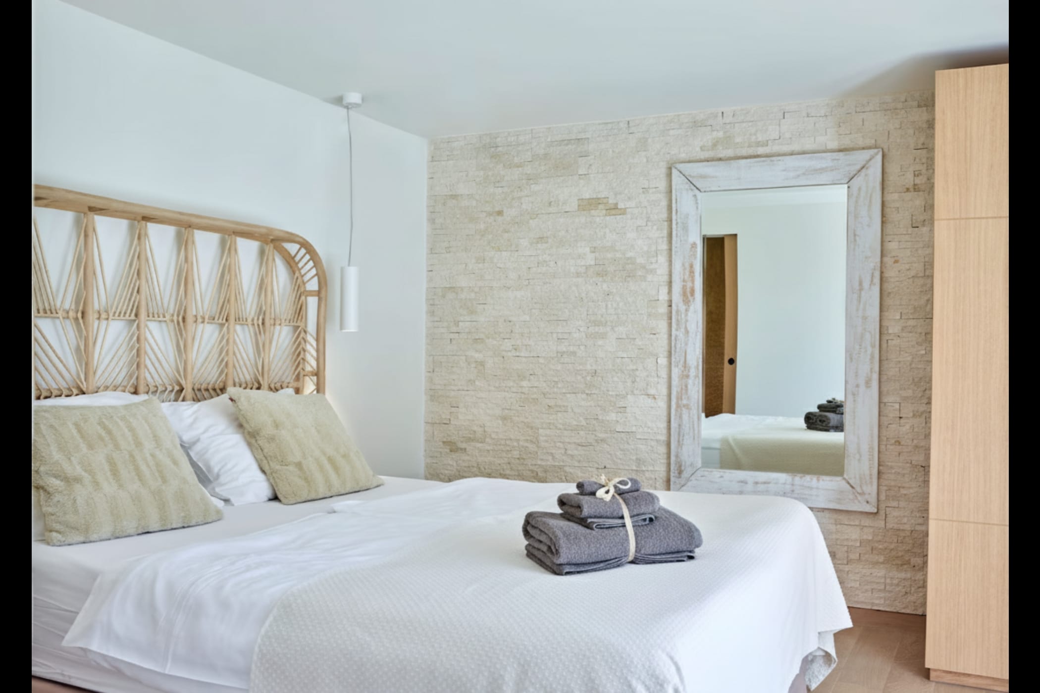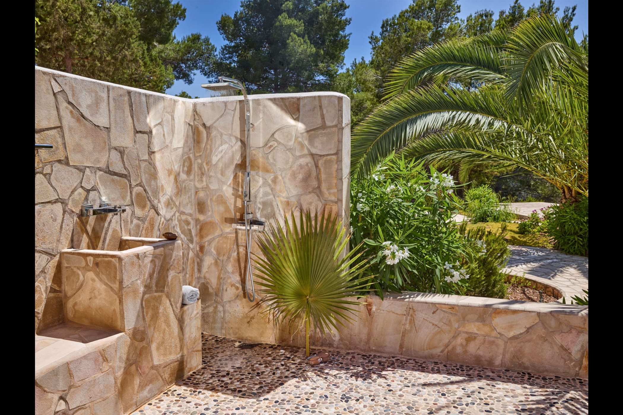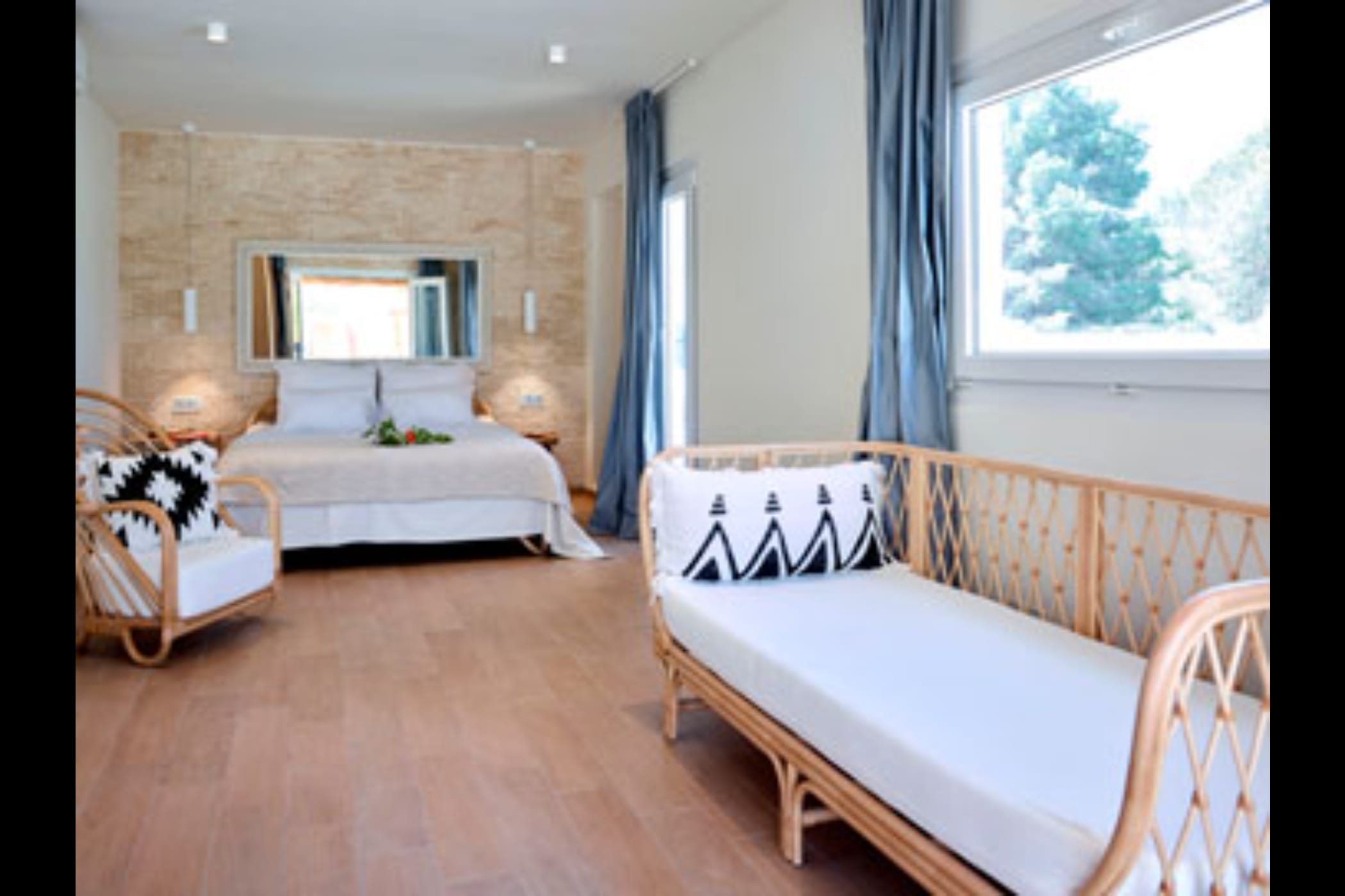 This modern finca sits on a private crescent-shaped plot in southwest Ibiza, just 3 km from Cala Tarida and its beach clubs. Fully renovated in 2021, it offers a fresh contemporary feel across three levels.