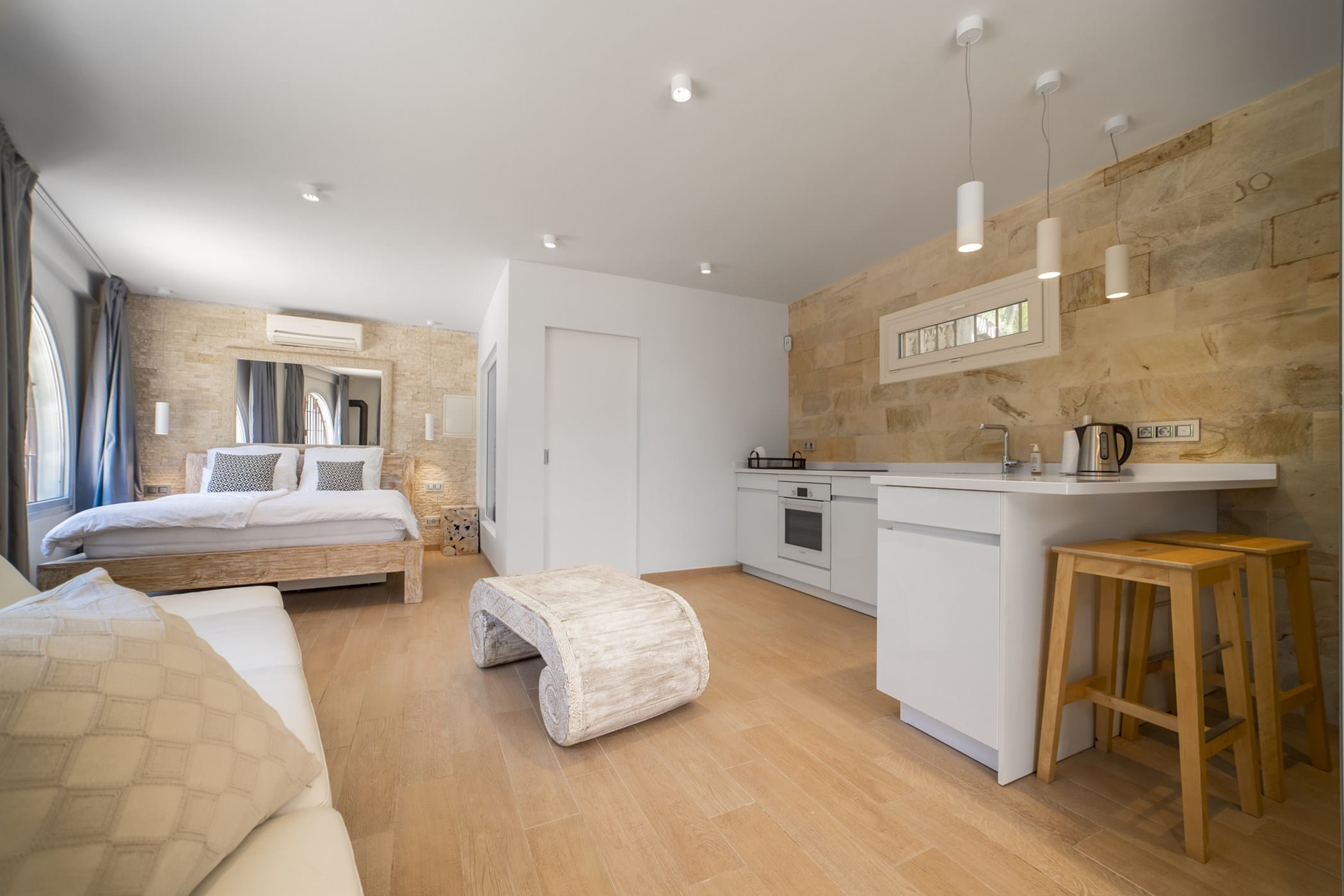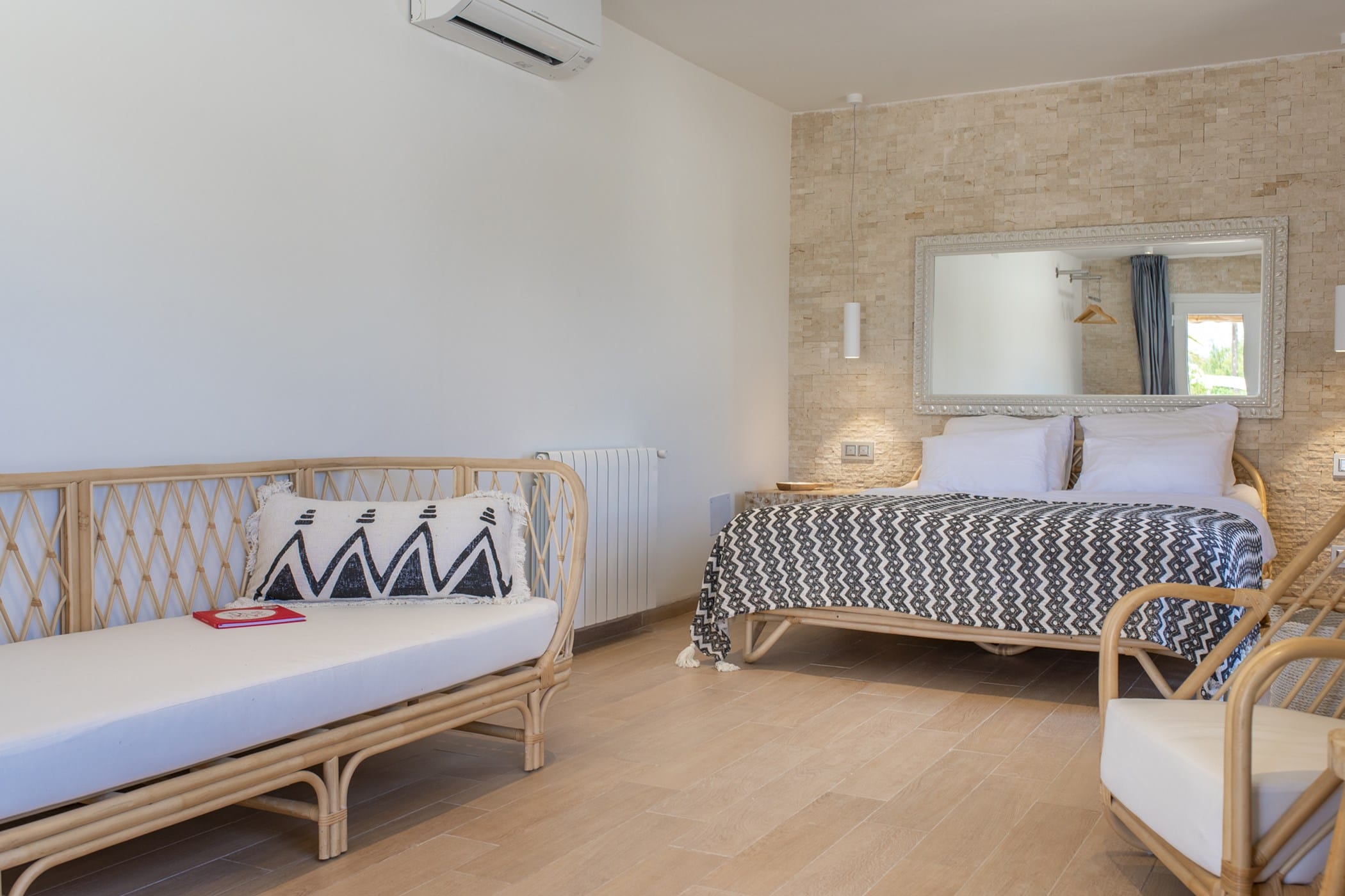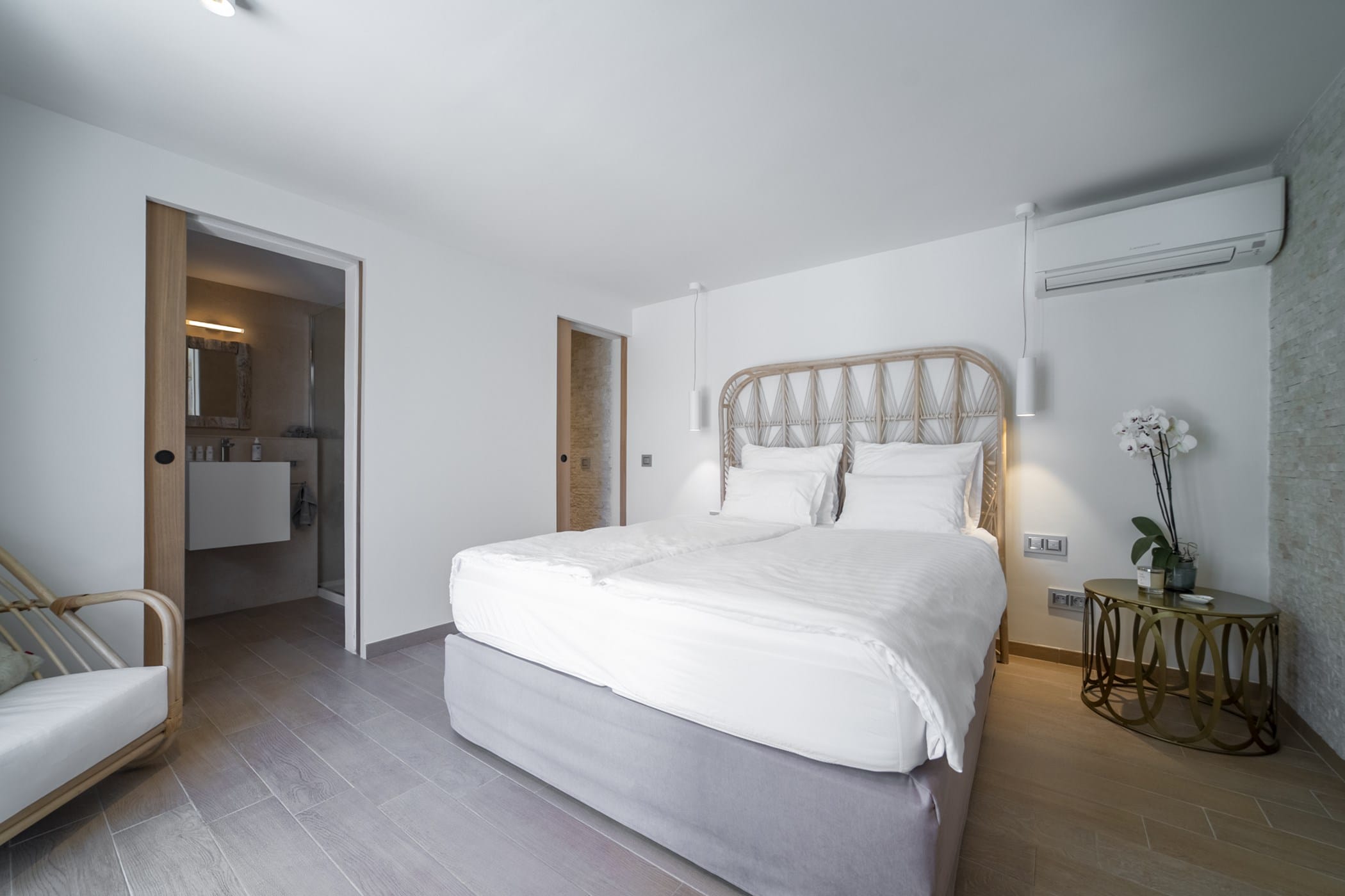 It features four uniquely styled bedrooms, each with its own bathroom. A separate guest house includes its own kitchen, TV, and sofa. The property has free WiFi and air conditioning throughout, plus two kitchens (both with ceramic hob, oven; one with dishwasher and microwave).