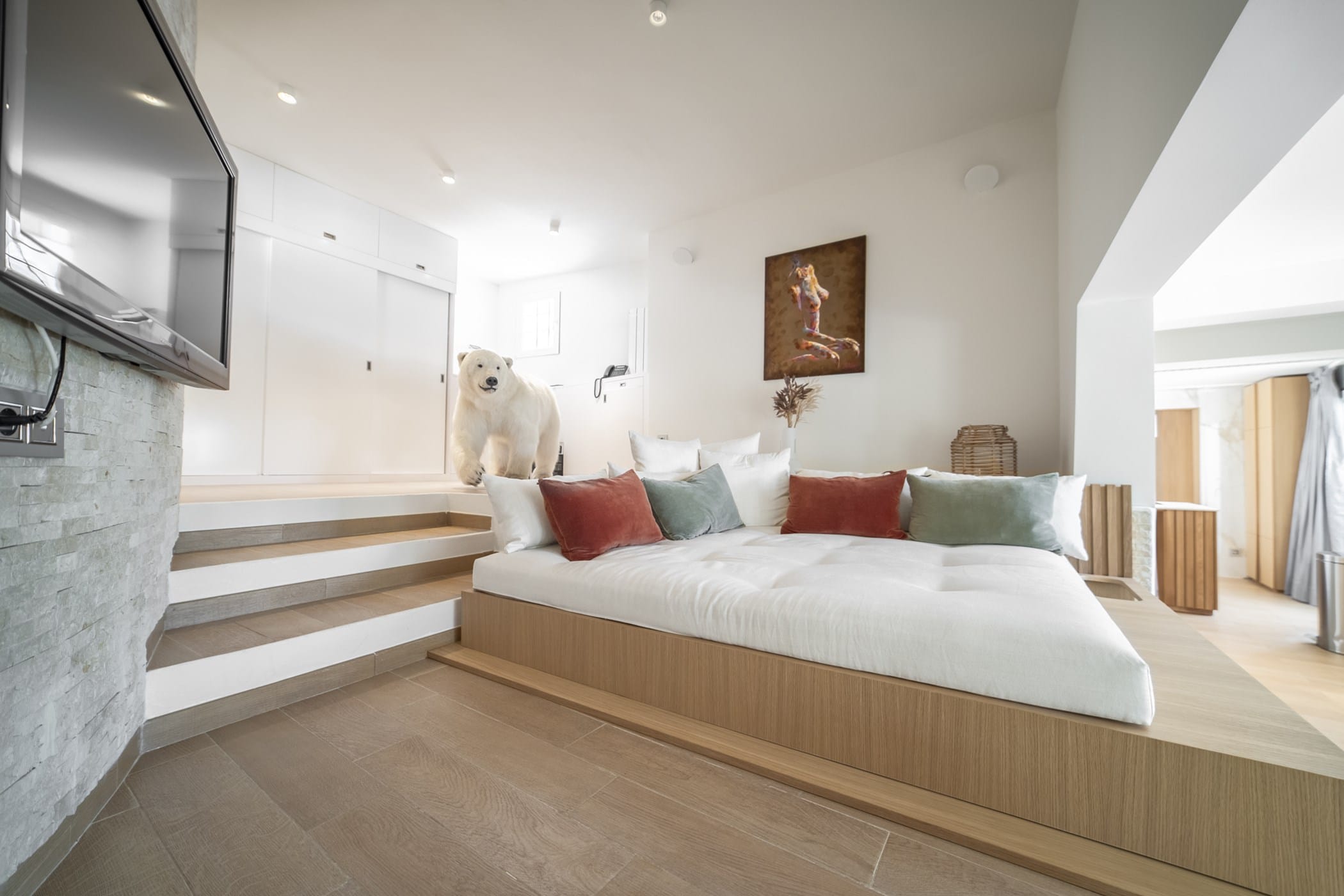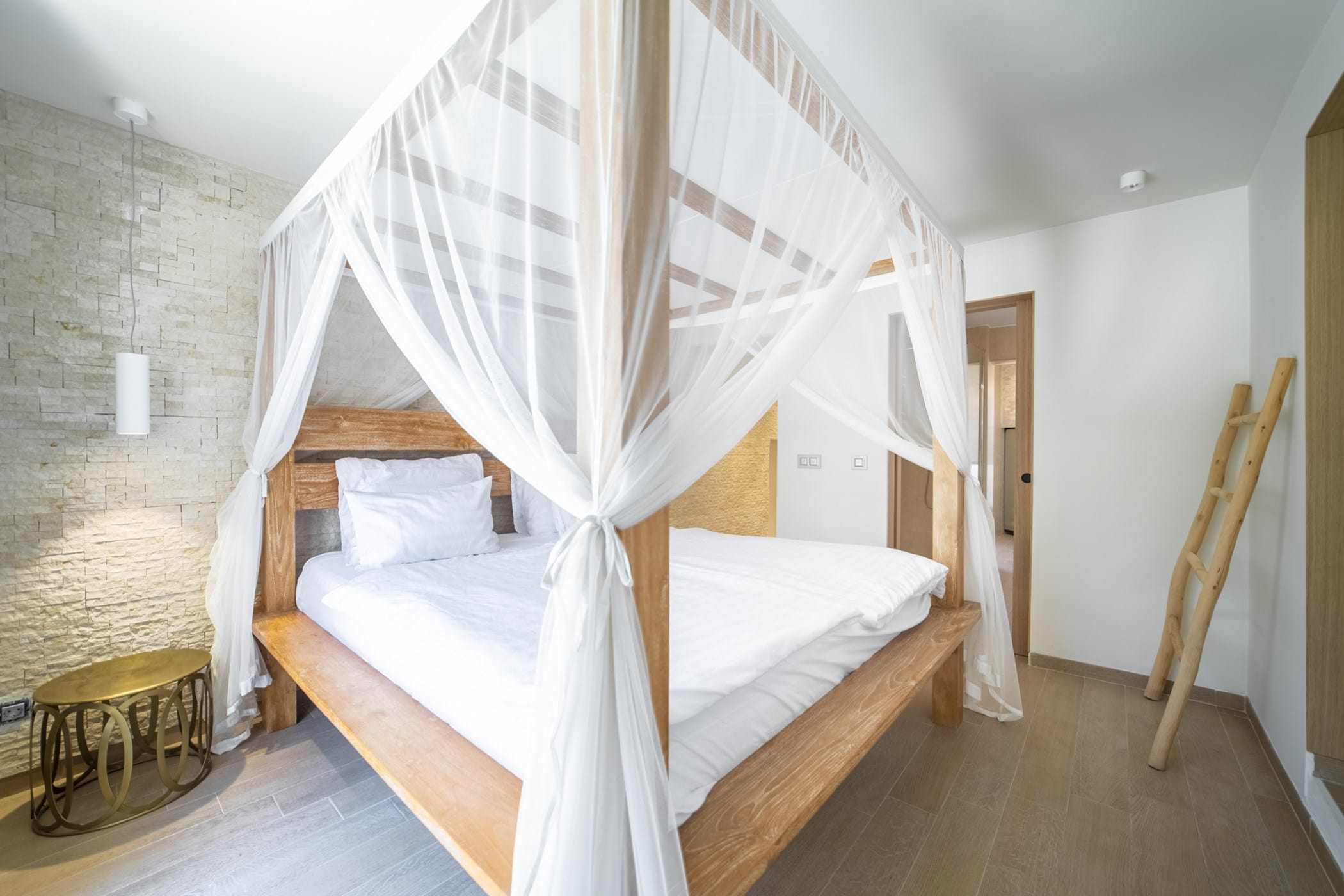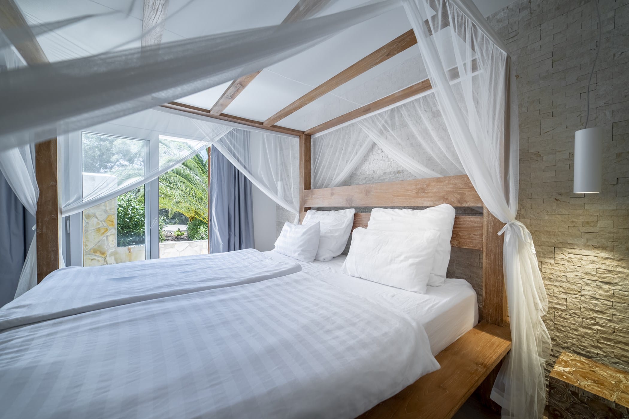 It features four uniquely styled bedrooms, each with its own bathroom. A separate guest house includes its own kitchen, TV, and sofa. The property has free WiFi and air conditioning throughout, plus two kitchens (both with ceramic hob, oven; one with dishwasher and microwave).