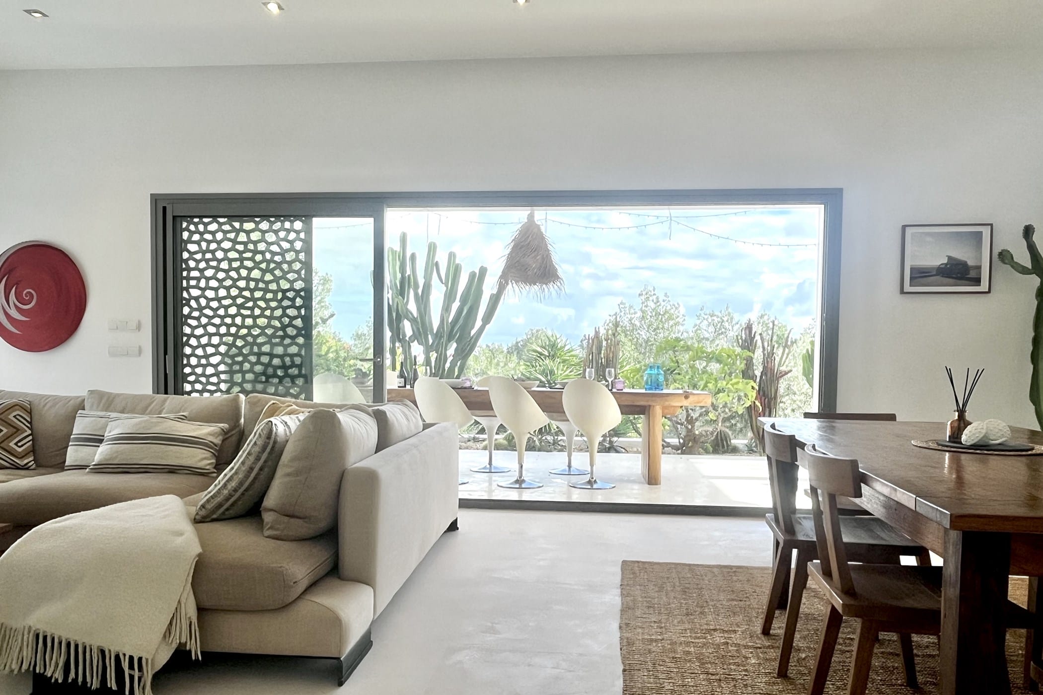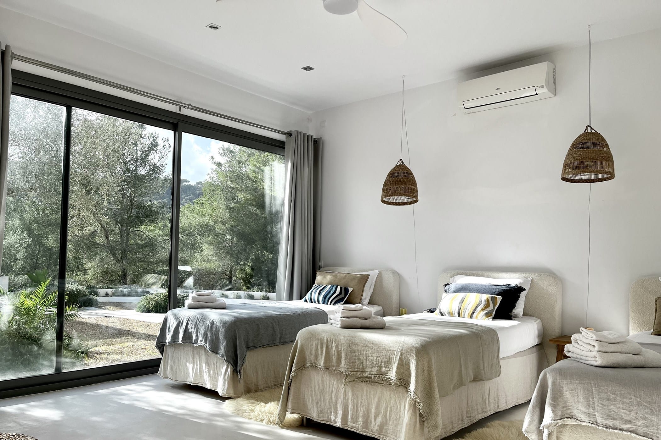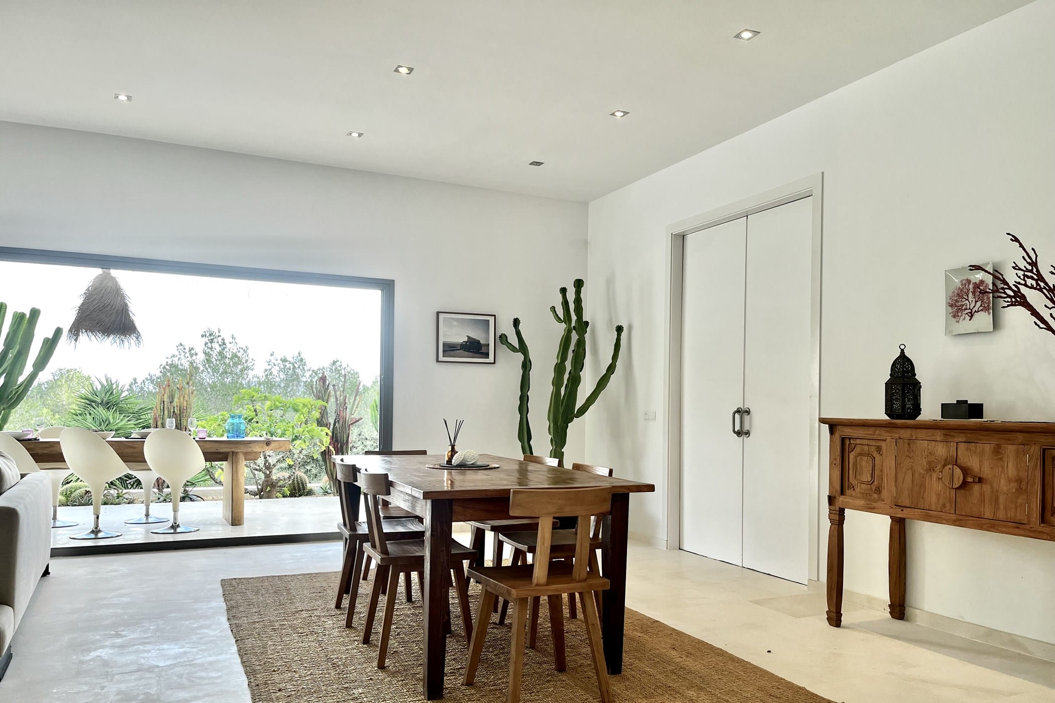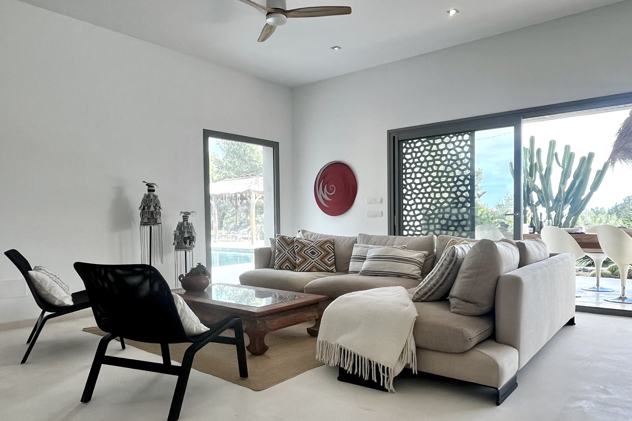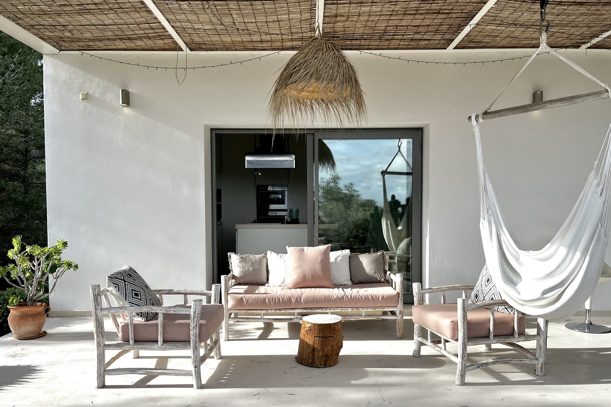 Nestled on a peaceful pine-covered hill in Ibiza’s serene countryside between Santa Gertrudis, San Lorenzo, and Santa Eulalia, this stunning modern Mediterranean villa offers a private swimming pool, sunny terraces, and multiple outdoor dining areas.