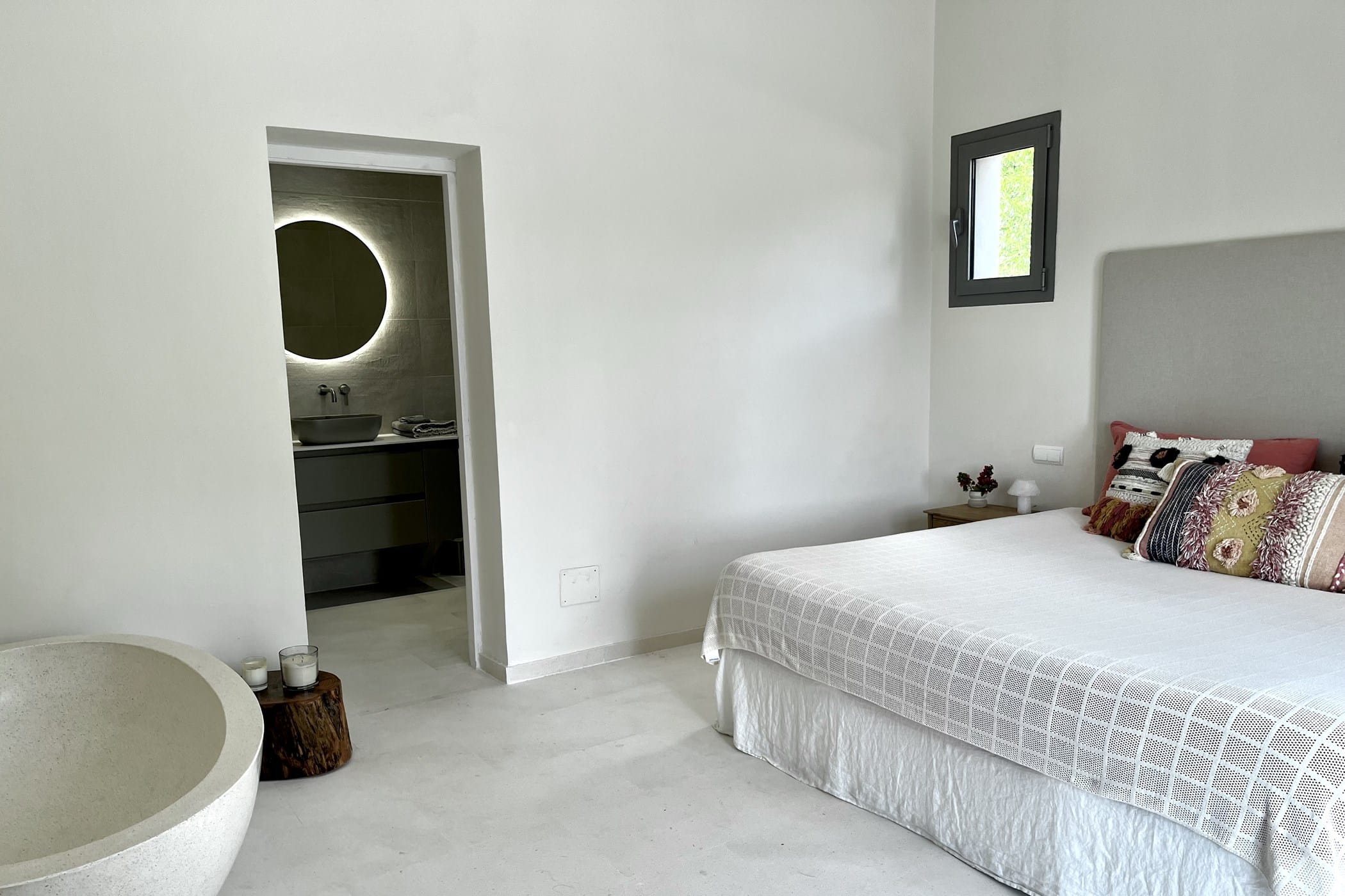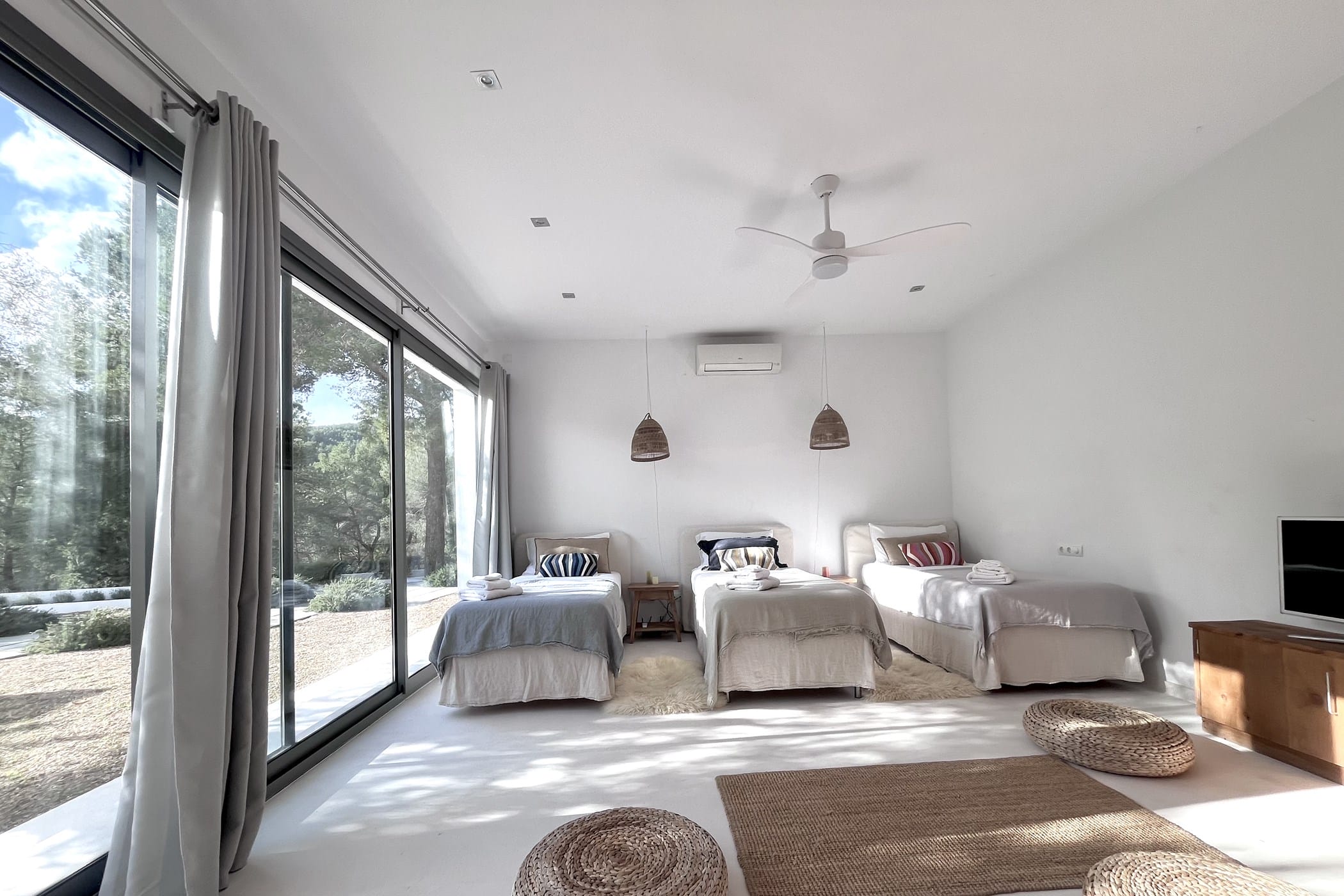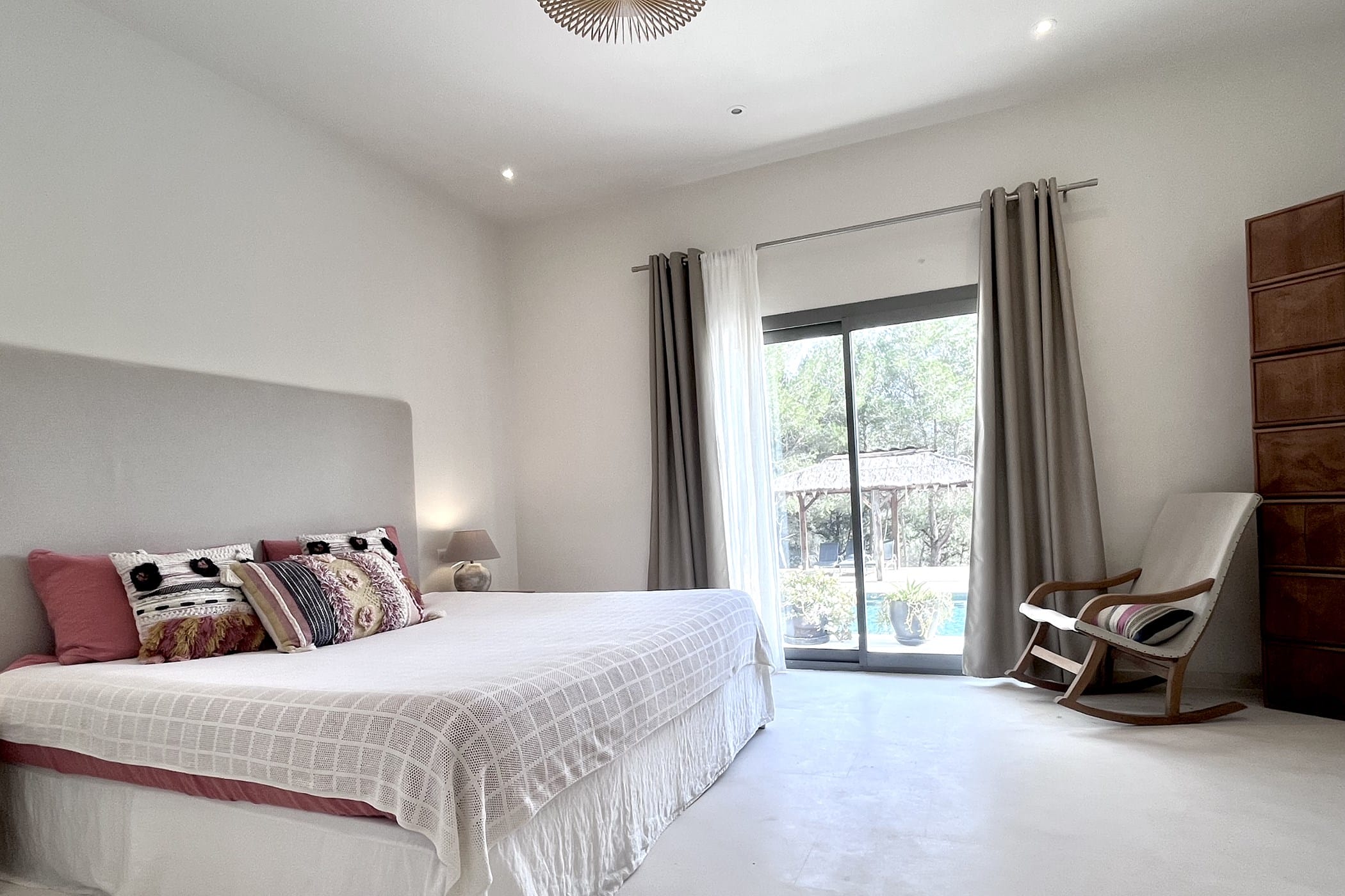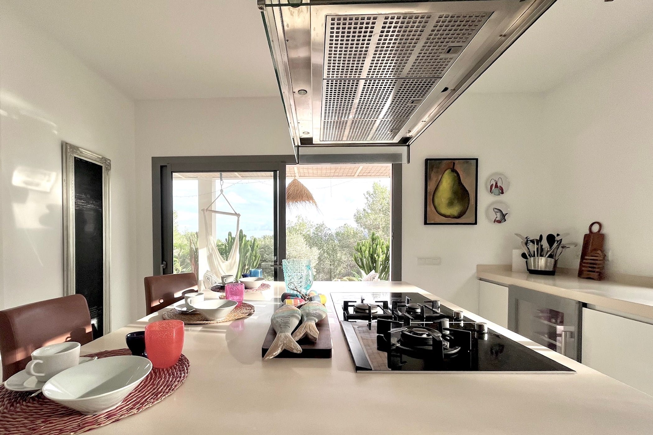 Nestled on a peaceful pine-covered hill in Ibiza’s serene countryside between Santa Gertrudis, San Lorenzo, and Santa Eulalia, this stunning modern Mediterranean villa offers a private swimming pool, sunny terraces, and multiple outdoor dining areas.