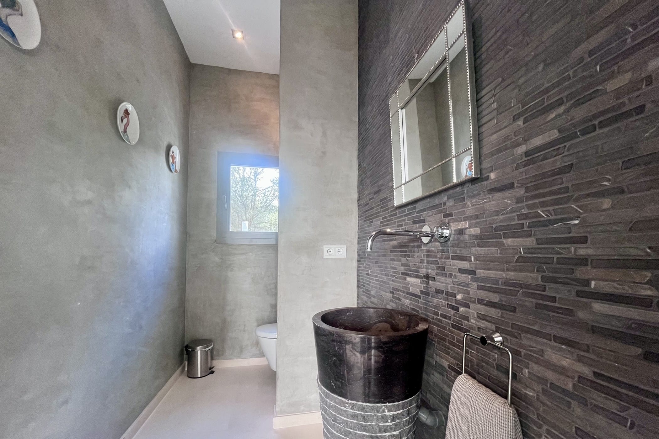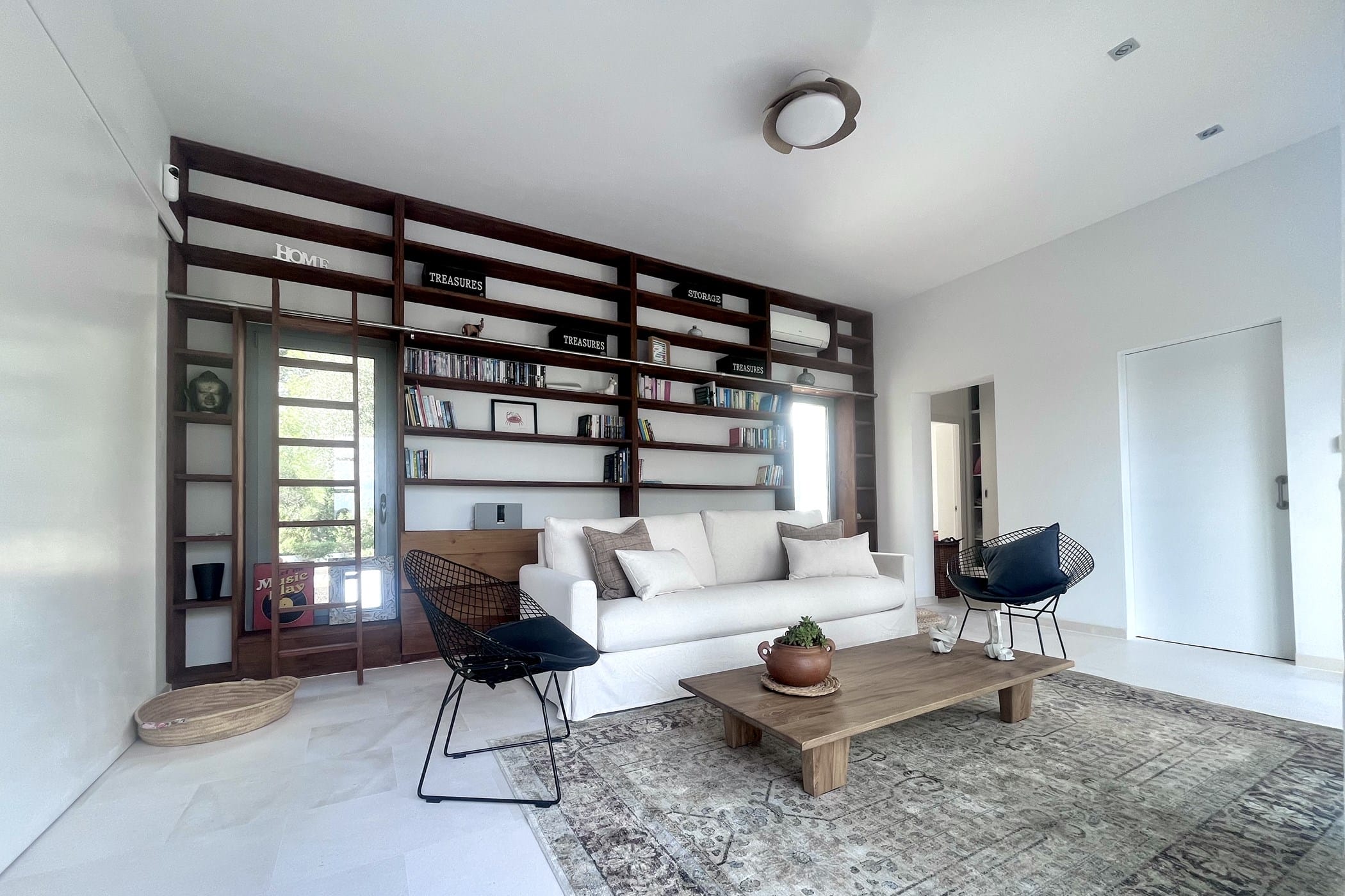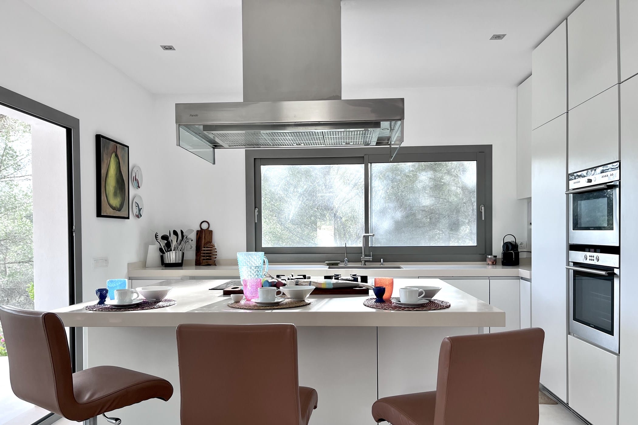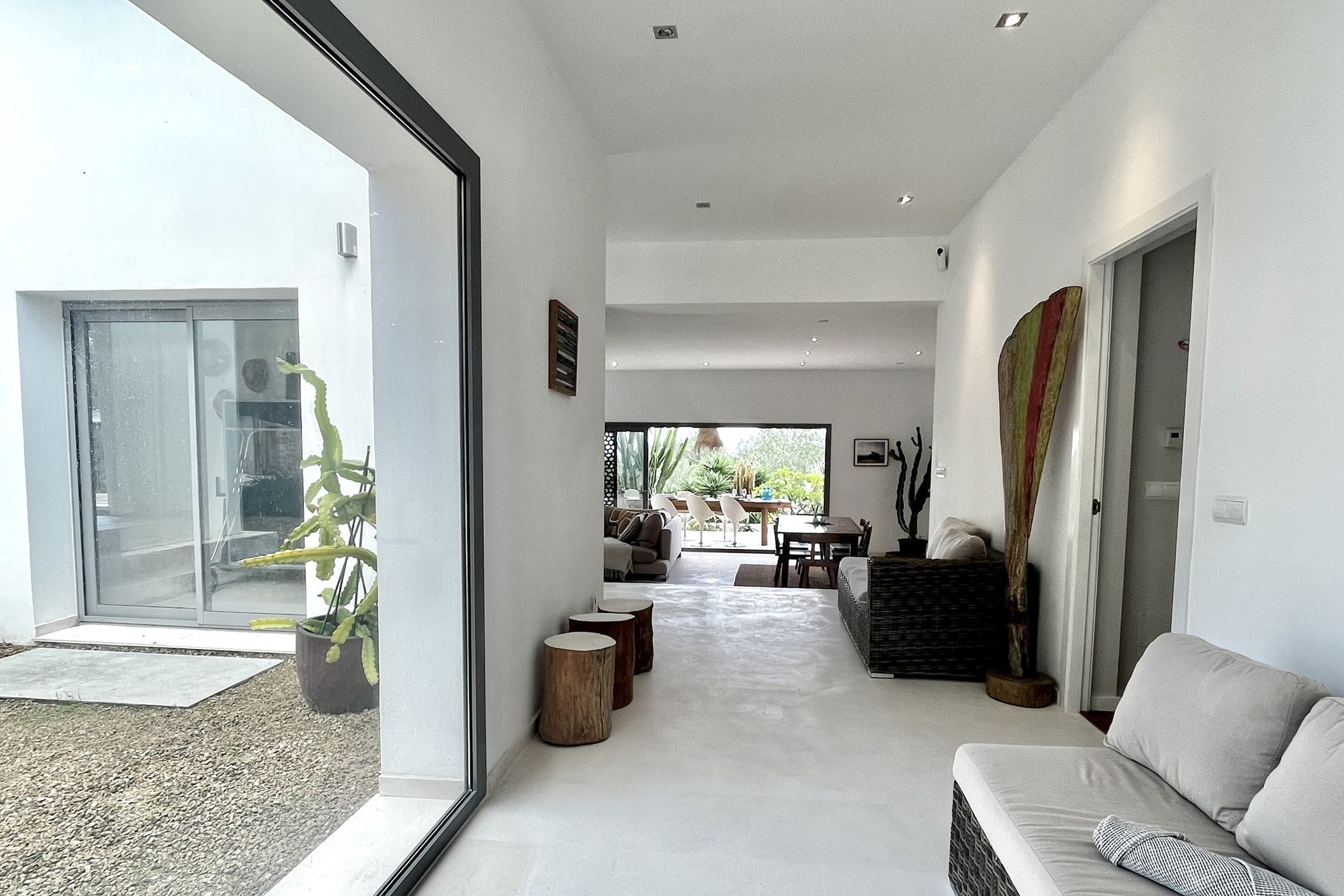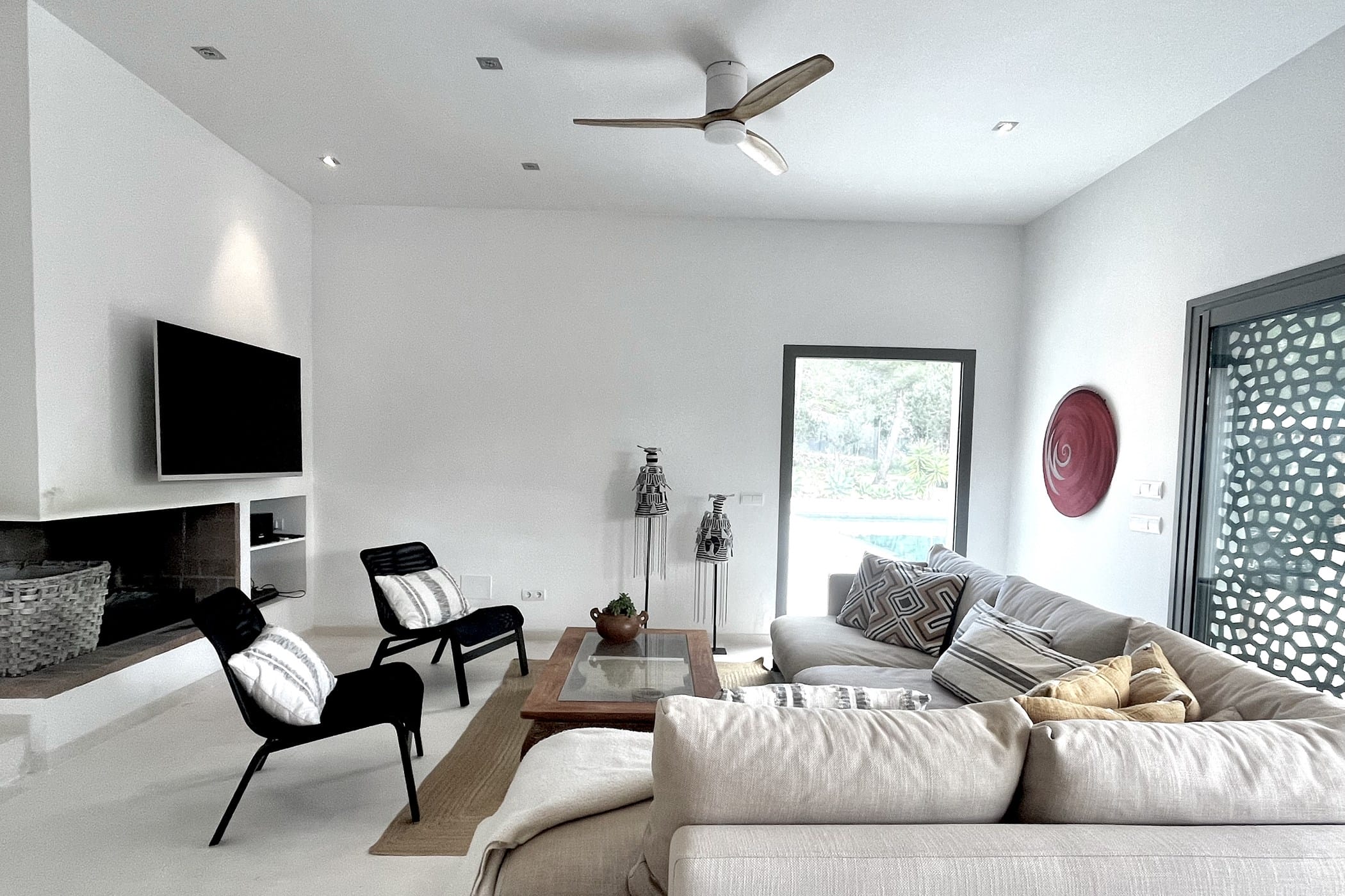 Fully equipped open-plan kitchen and bright living spaces. Outdoor areas include a barbecue for al fresco dining, chill-out zone, and ping pong area. The low-water garden uses water from a private well (kitchen has reverse osmosis filter). High-speed fiber Wi-Fi, TV with Chromecast, alarm system, and electric gate ensure comfort and security.