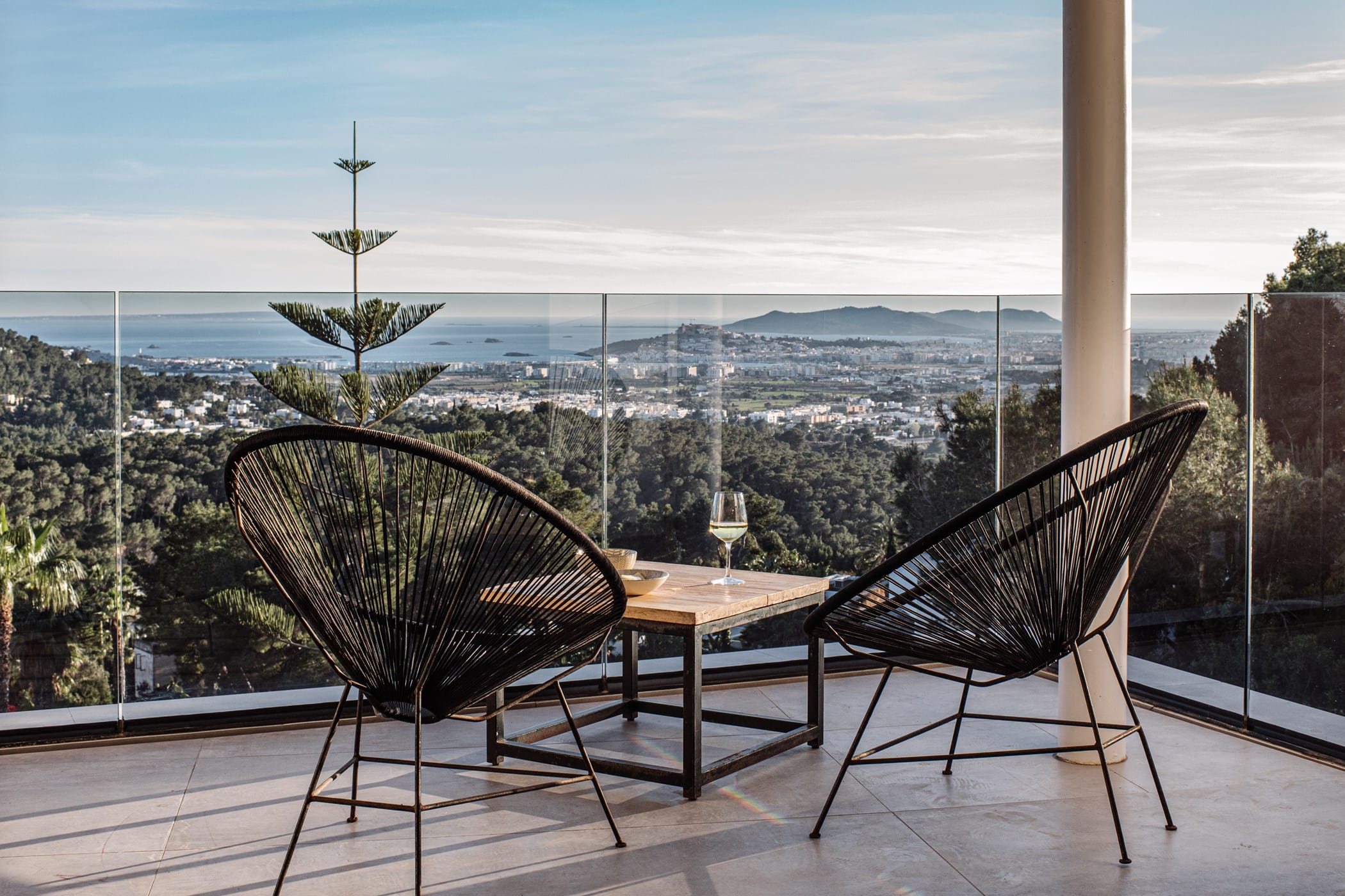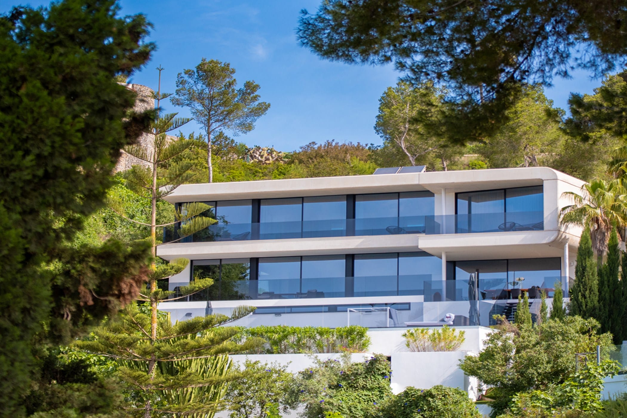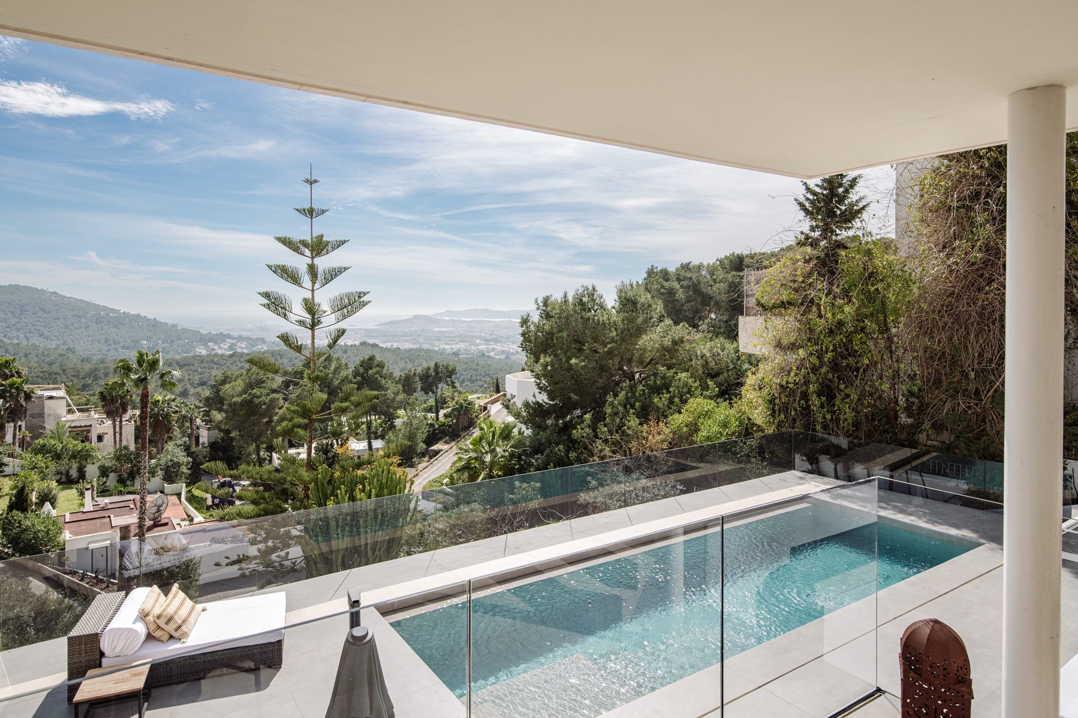 This ultra-modern villa is set in a prestigious gated community with panoramic views over Ibiza Town and, on clear days, across to Formentera. It combines striking architecture with refined, luxurious interiors.