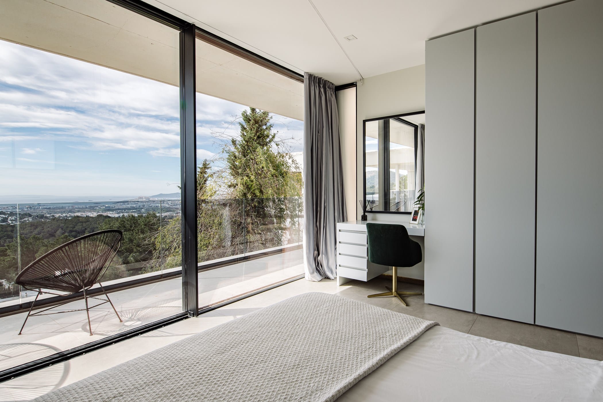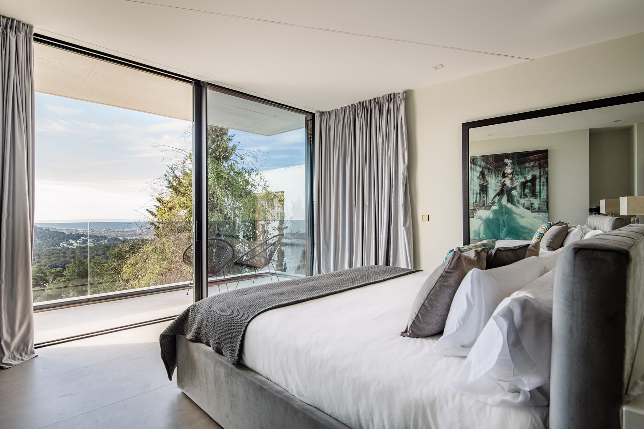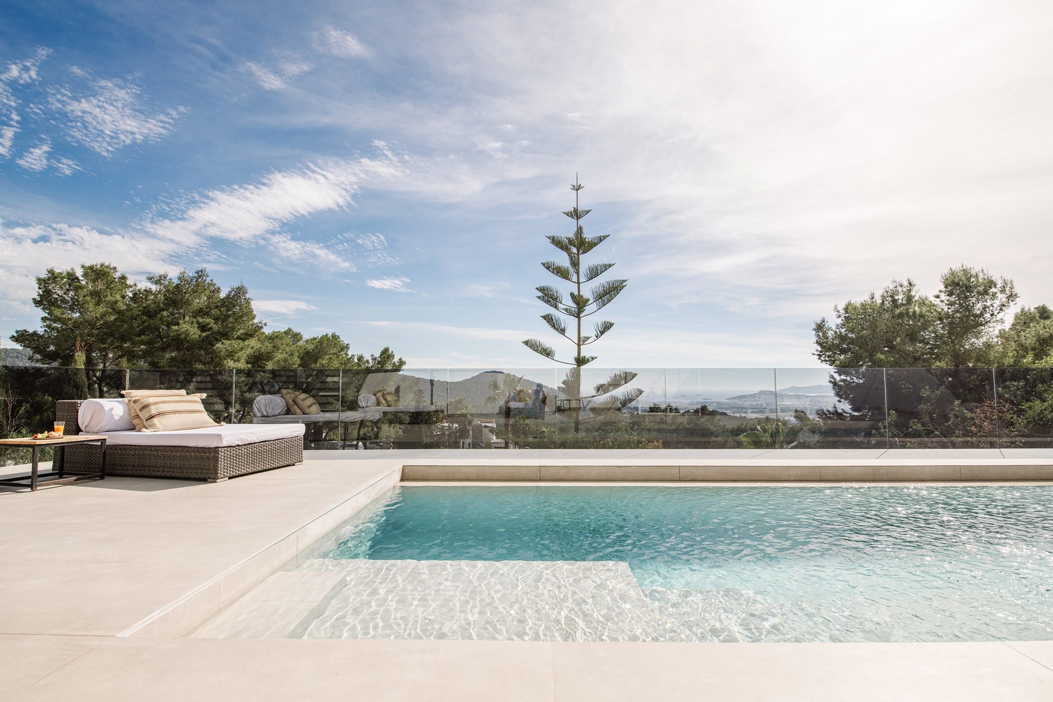 This ultra-modern villa is set in a prestigious gated community with panoramic views over Ibiza Town and, on clear days, across to Formentera. It combines striking architecture with refined, luxurious interiors.