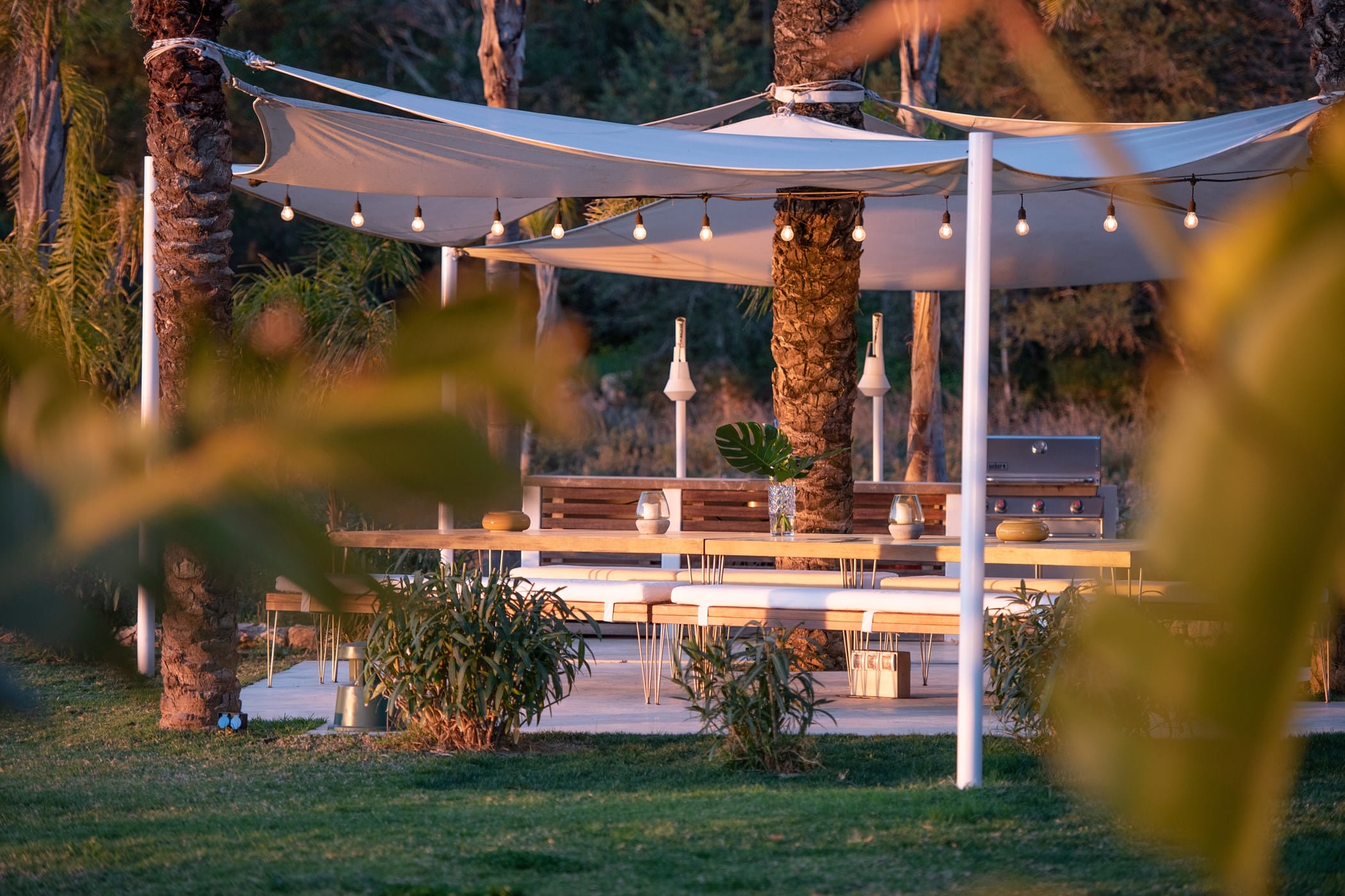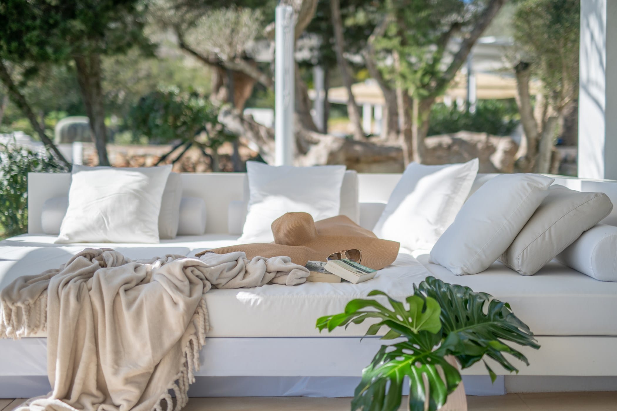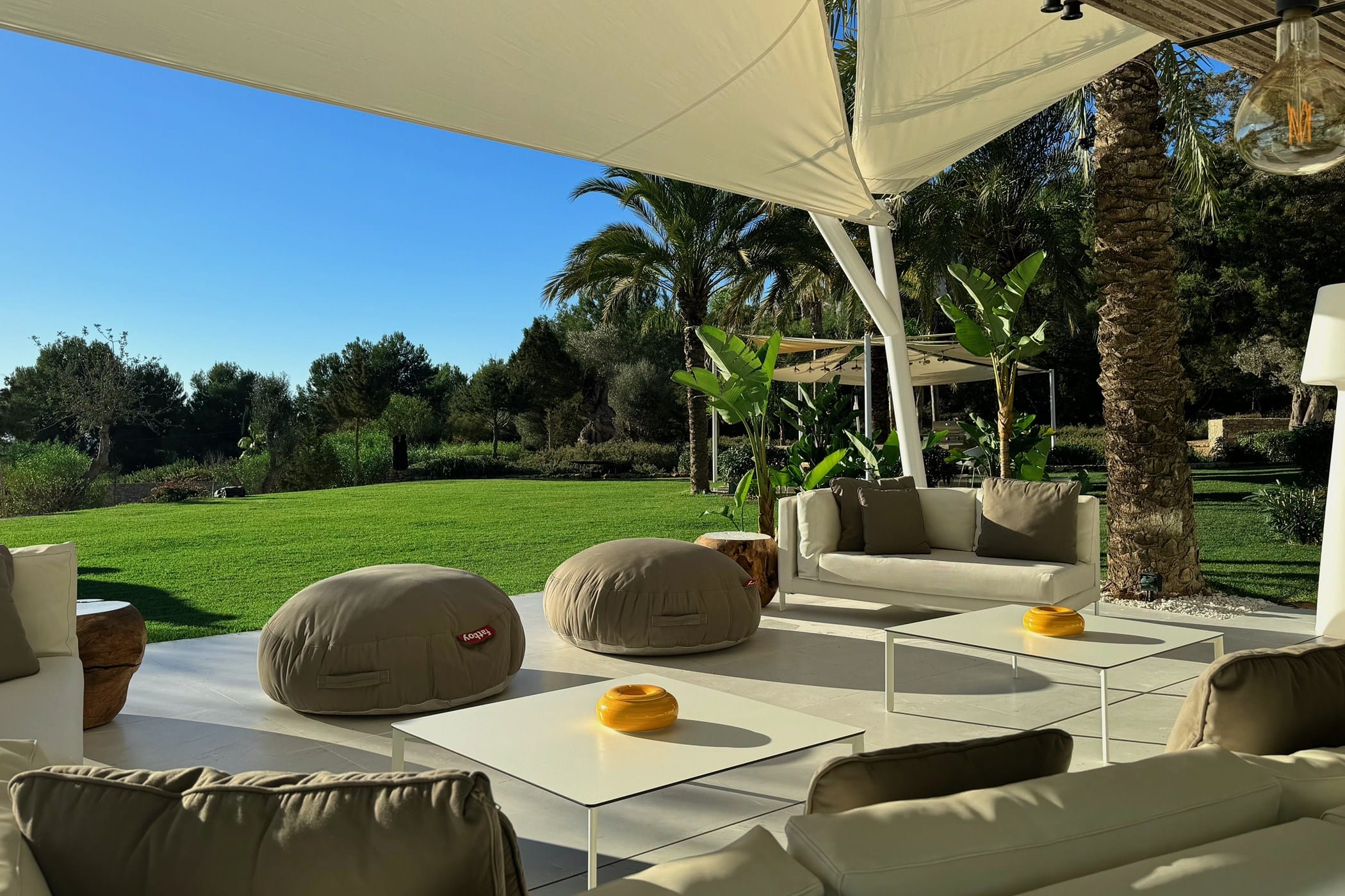 Outside, the fragrant gardens and expansive grounds offer exceptional sea and countryside views. The highlight is the sloping infinity swimming pool, surrounded by a traditional Roman stone terrace and ample sunbeds. Additional features include large shaded chill-out areas with luxury daybeds and a delightful outdoor dining area with bespoke BBQ – the perfect setting to relax and enjoy the Ibizan sun.