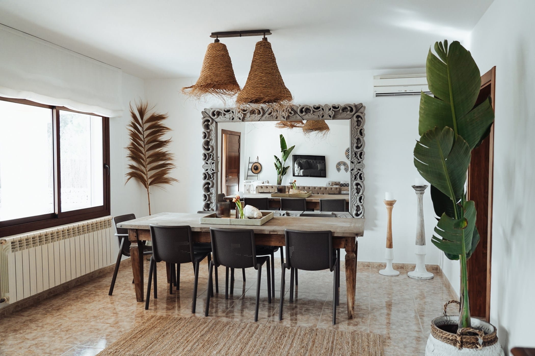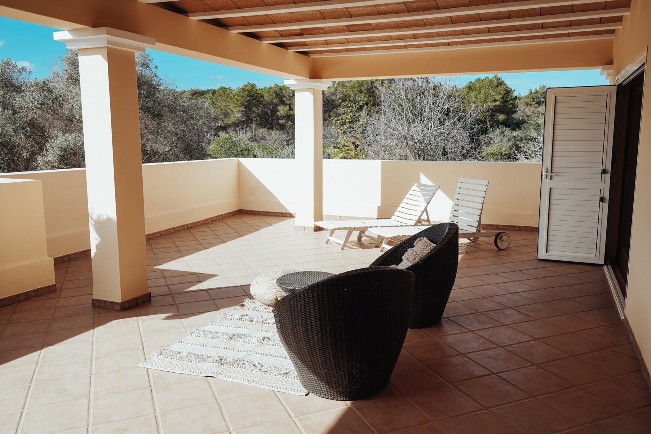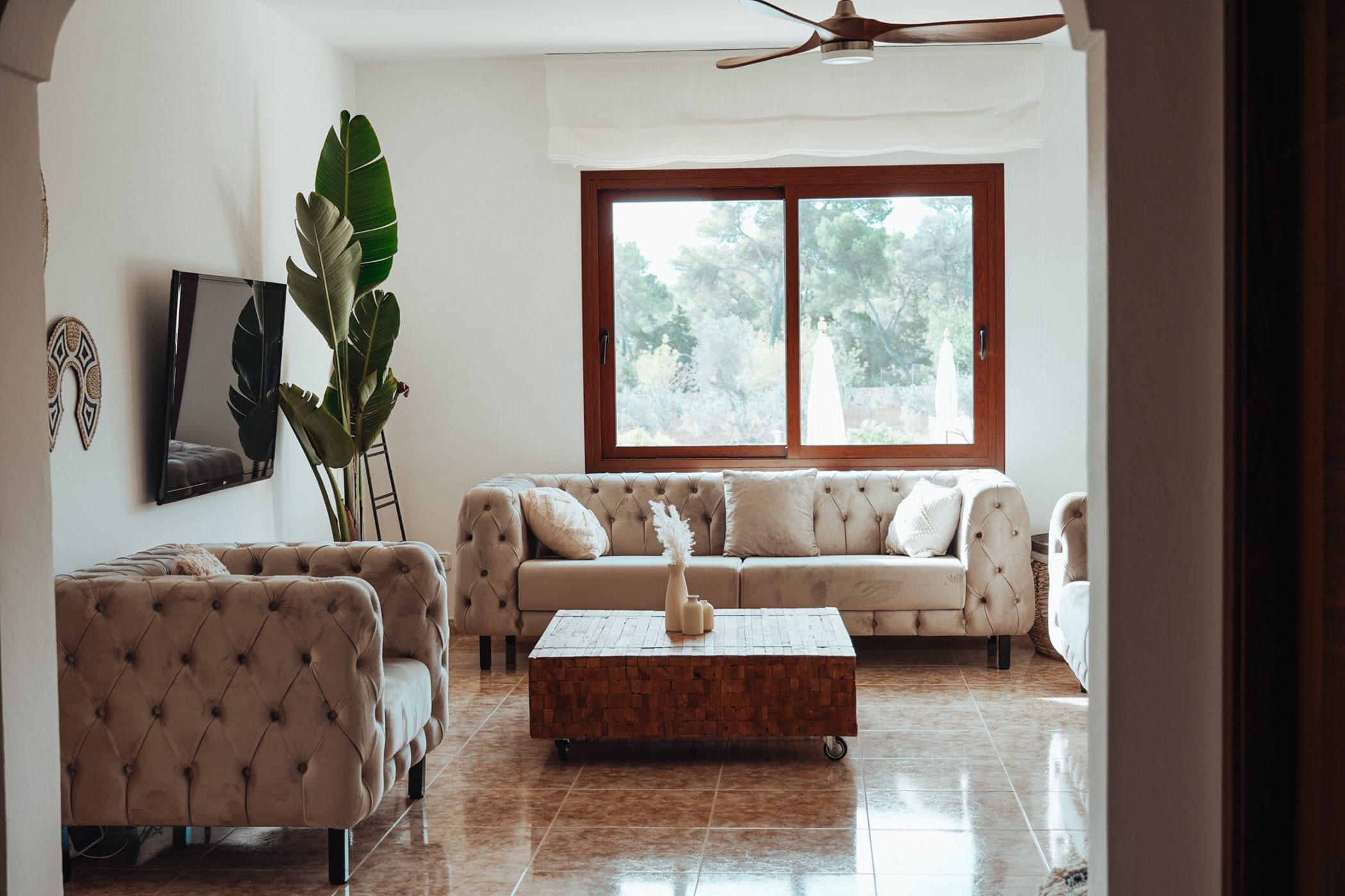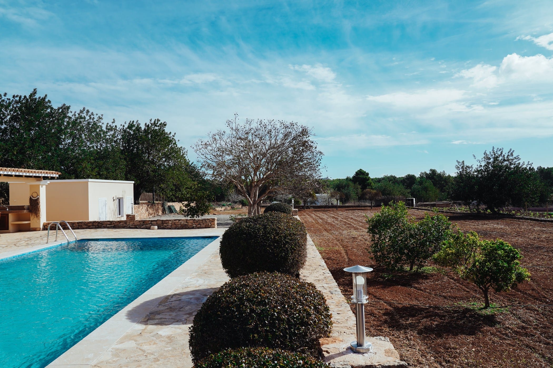 This elegant 5-bedroom villa is nestled in the peaceful countryside of Sant Carlos, offering a perfect blend of Mediterranean charm and modern comfort. Surrounded by orange trees and lush gardens, it provides a tranquil rural setting while remaining within easy reach of northeast coast beaches and the famous Las Dalias Hippy Market.