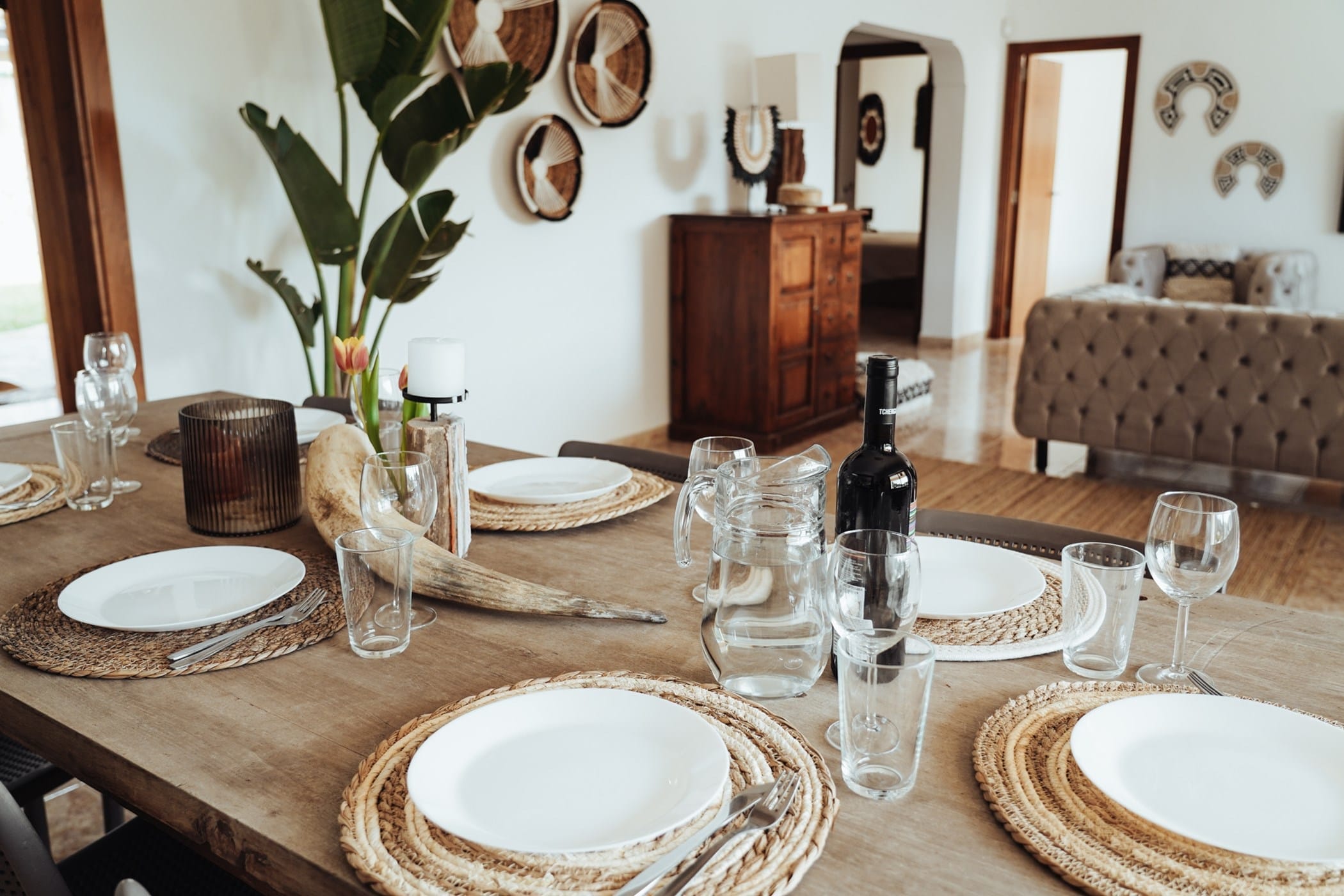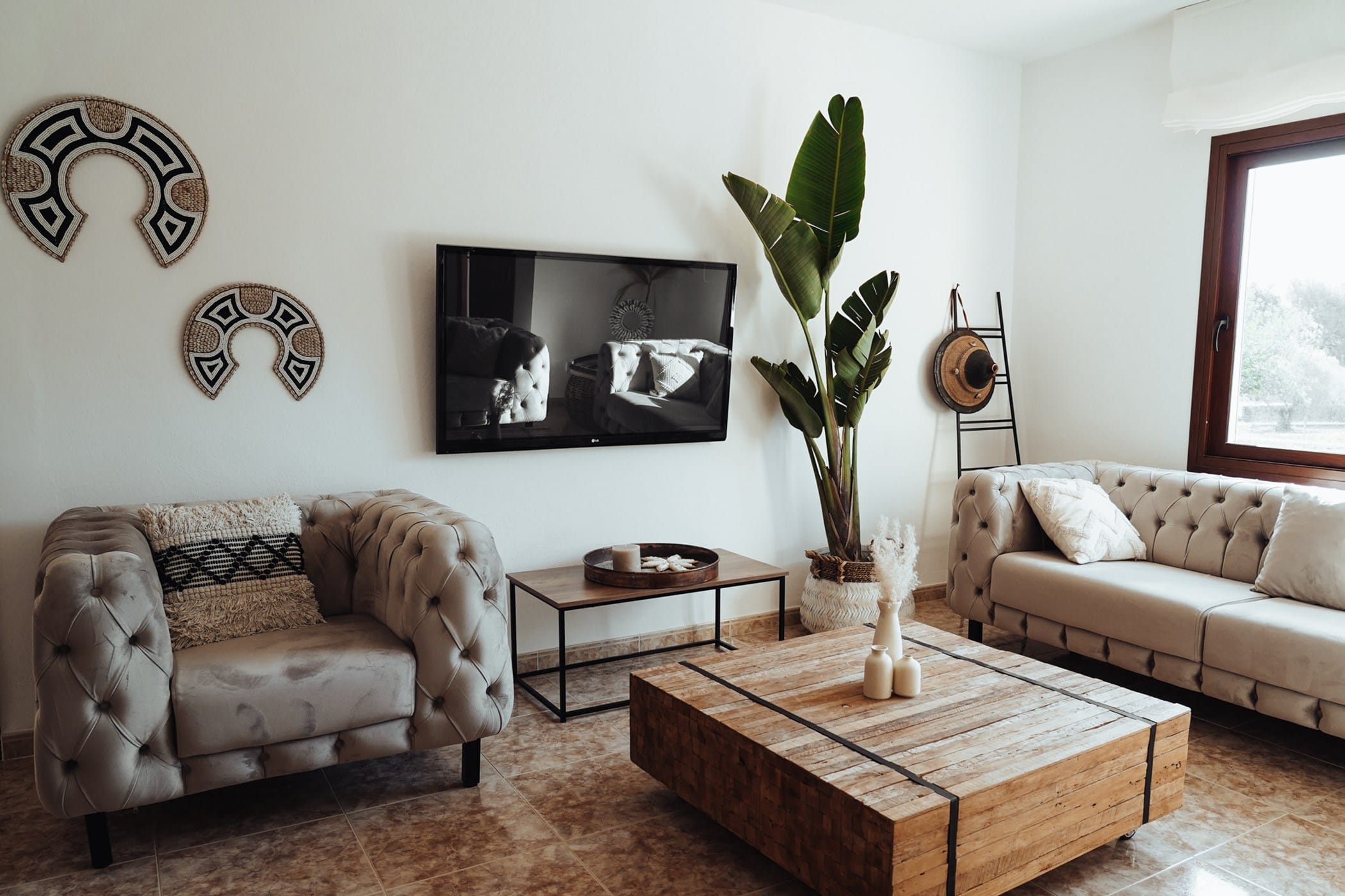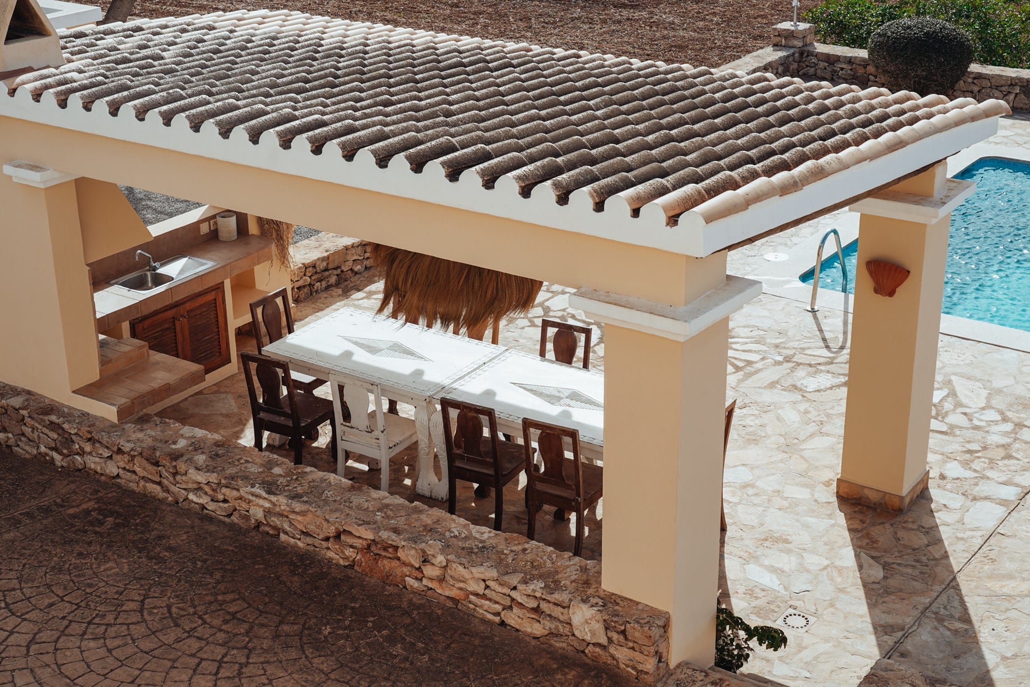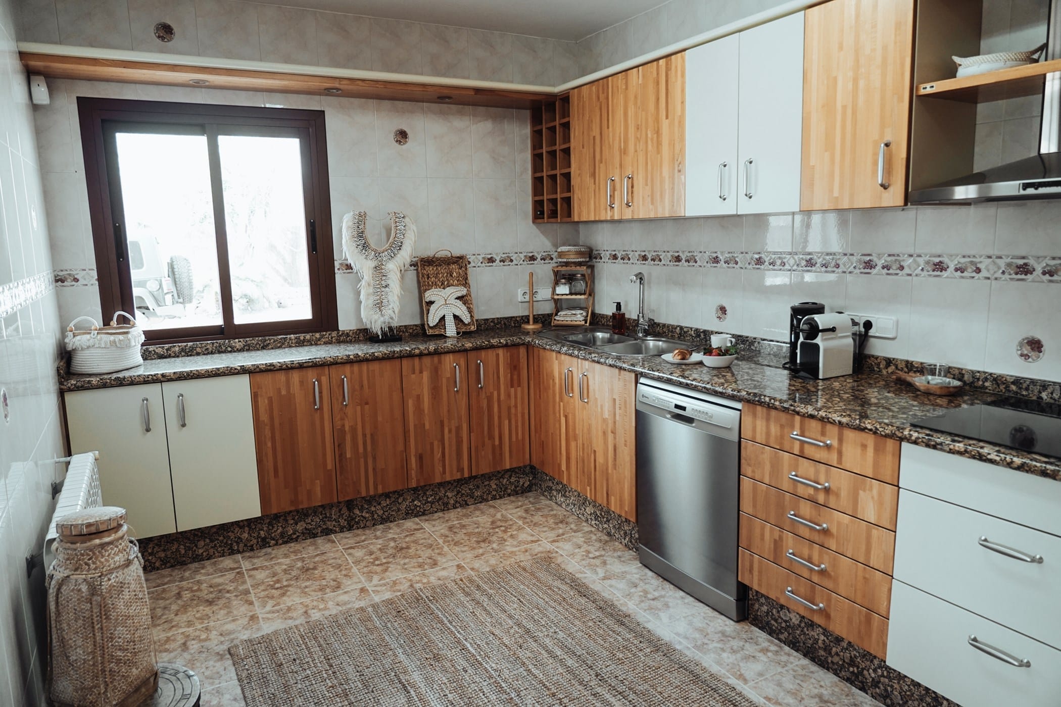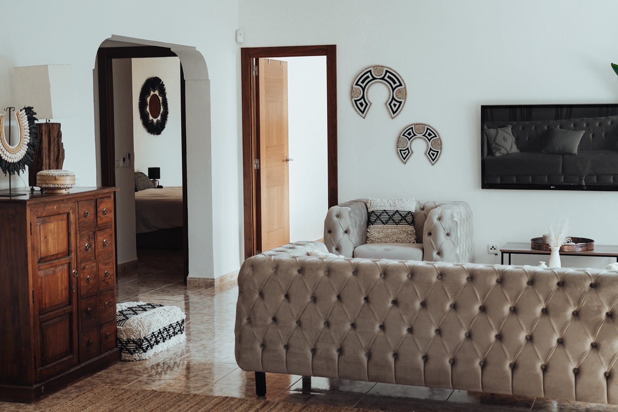 This elegant 5-bedroom villa is nestled in the peaceful countryside of Sant Carlos, offering a perfect blend of Mediterranean charm and modern comfort. Surrounded by orange trees and lush gardens, it provides a tranquil rural setting while remaining within easy reach of northeast coast beaches and the famous Las Dalias Hippy Market.