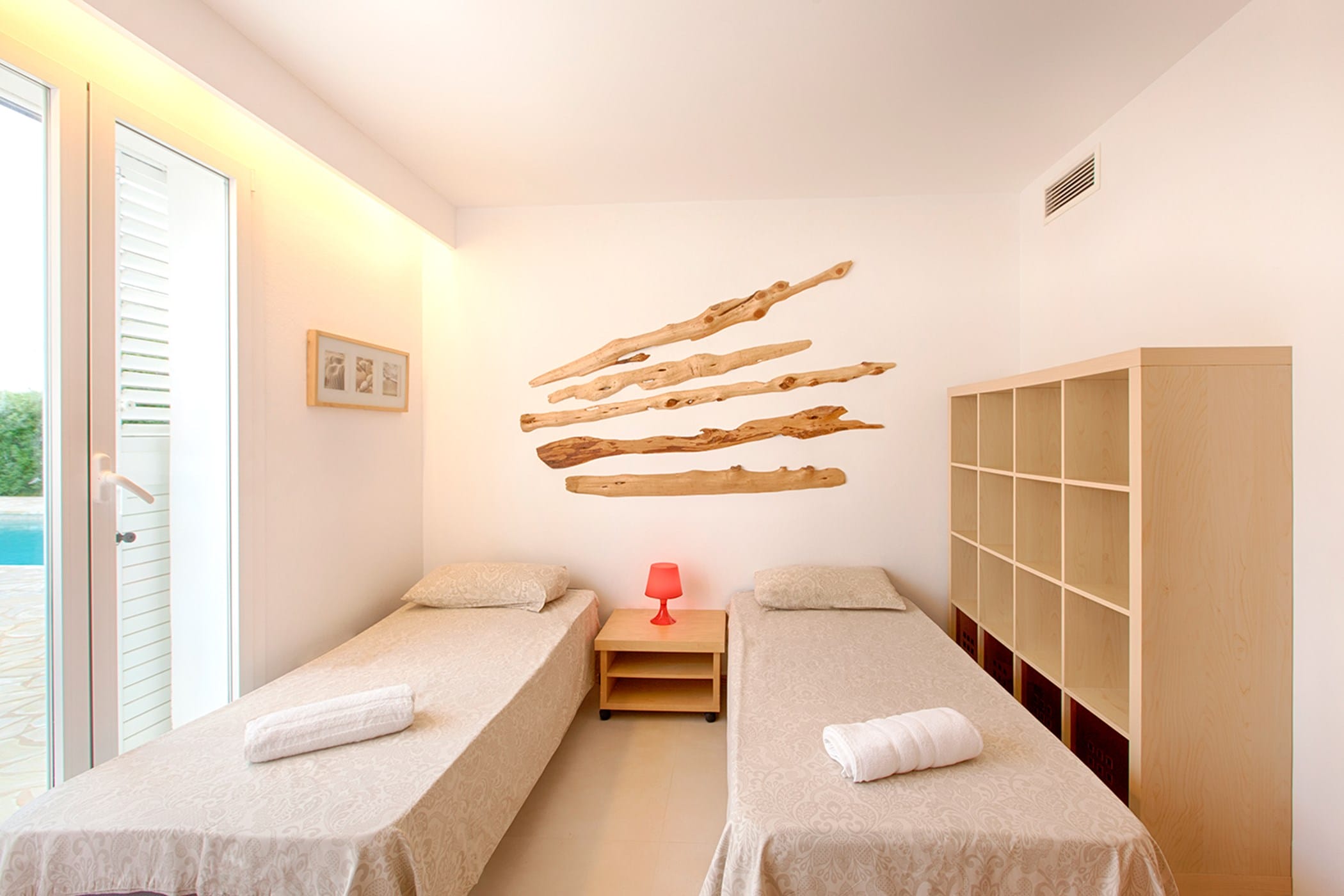 - Room 4: 2 single beds