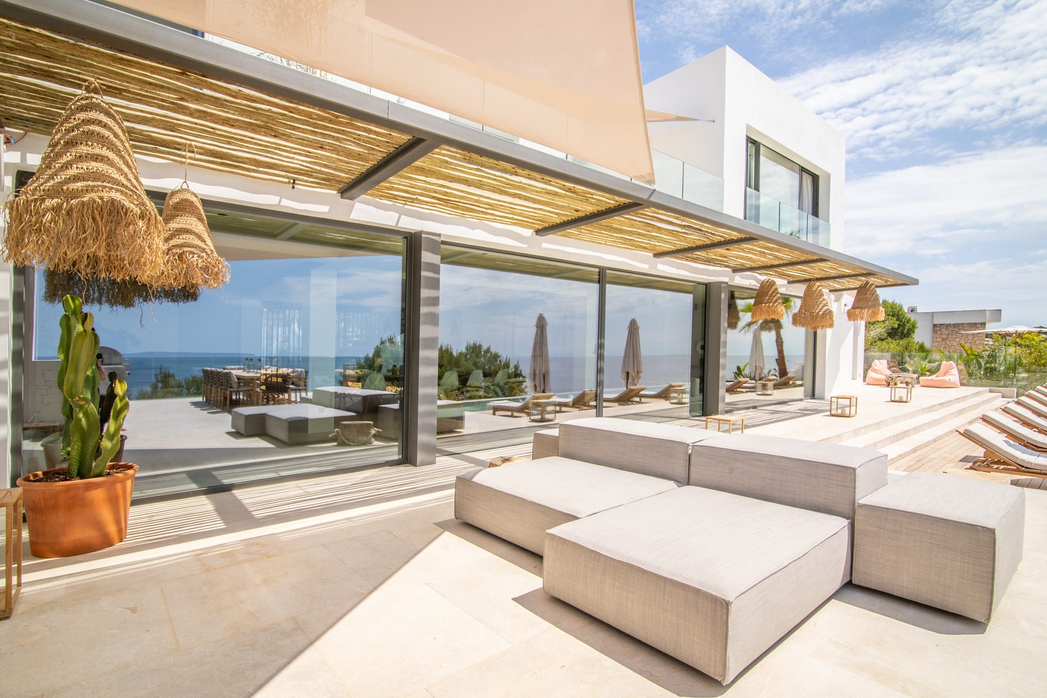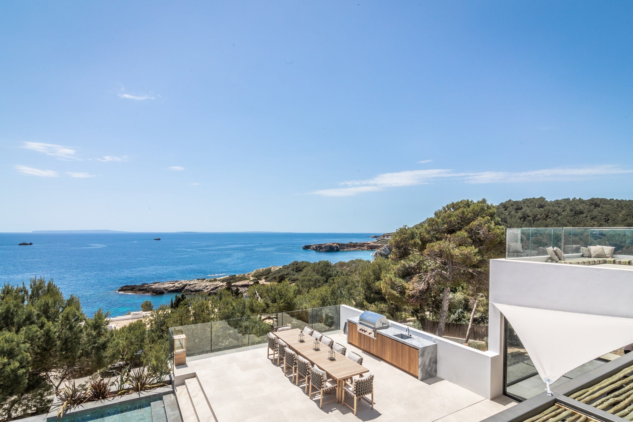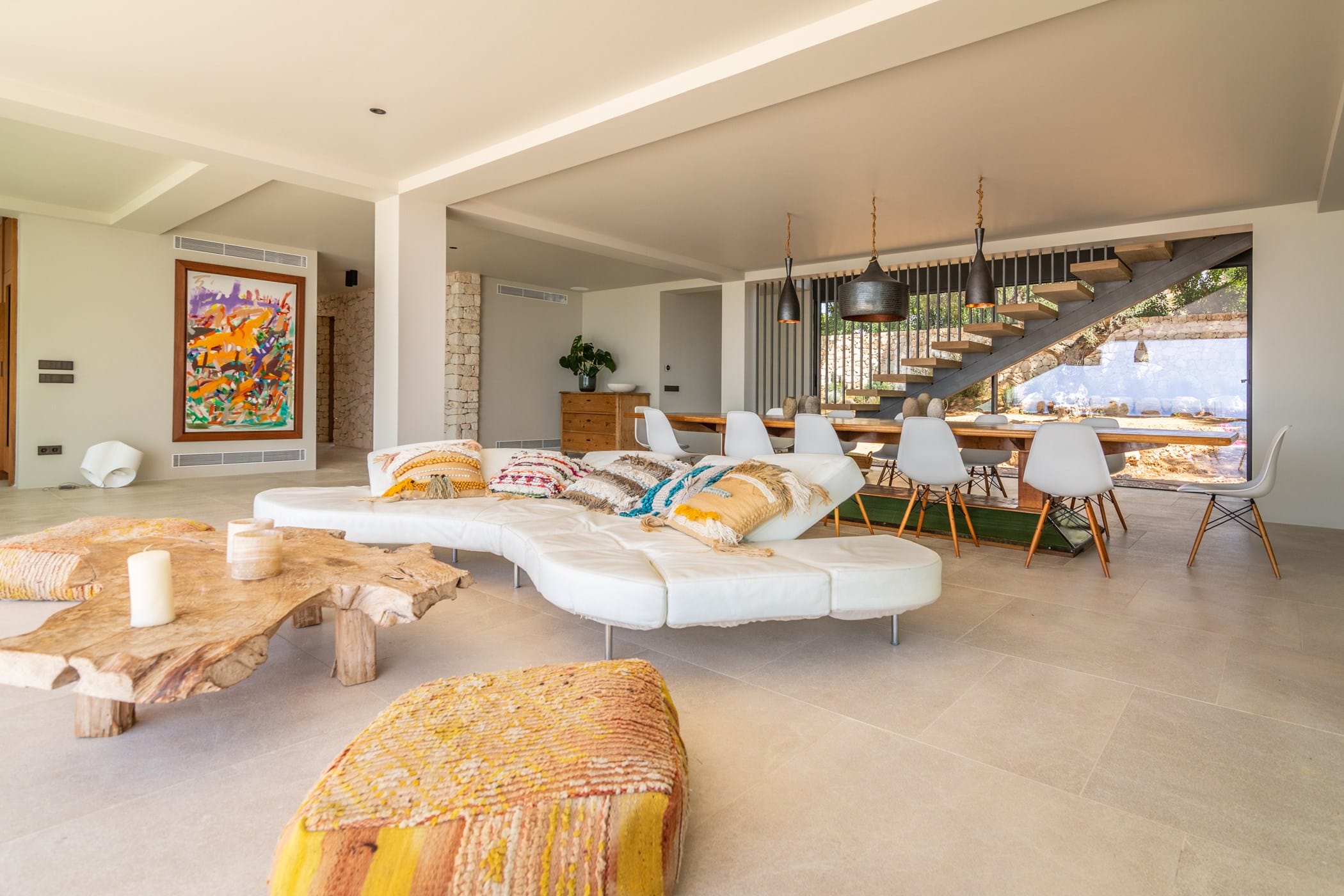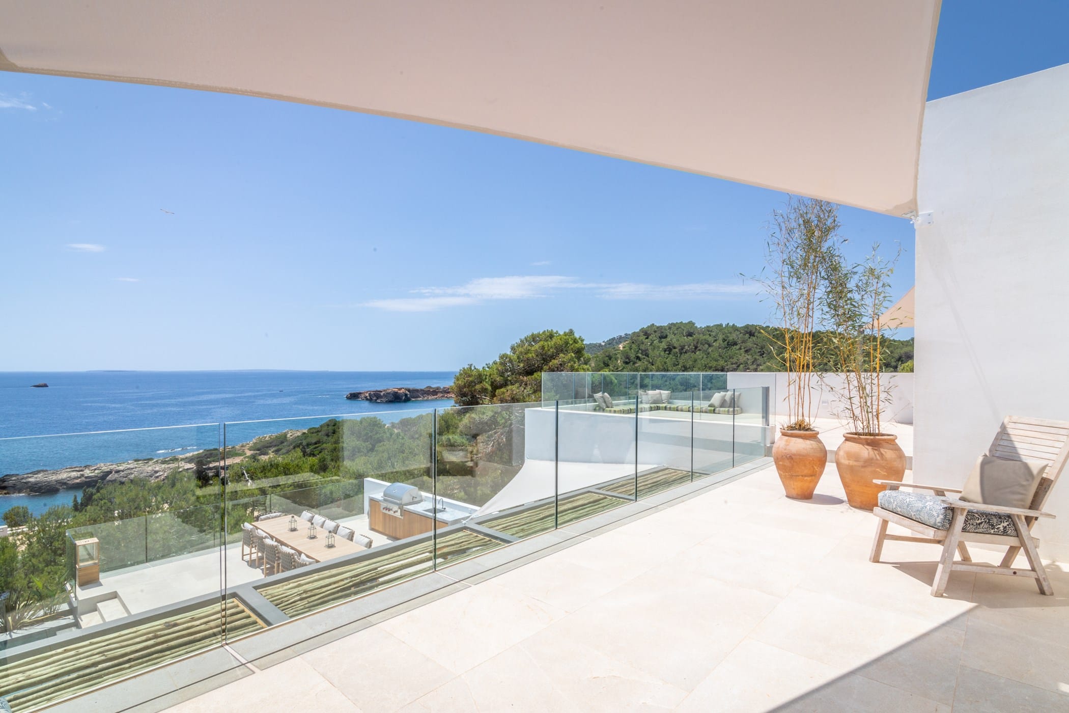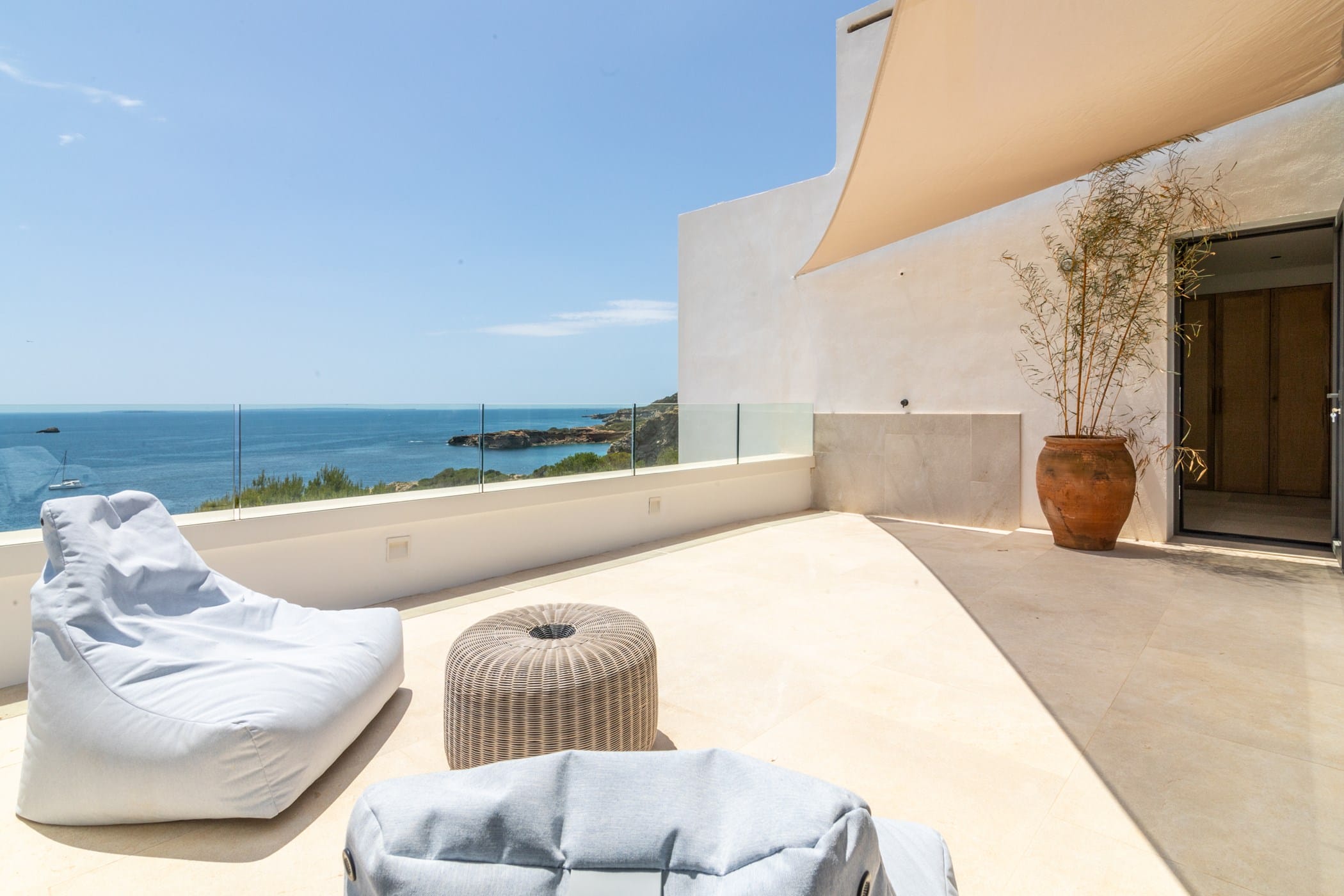 Secure parking for 4-5 cars. Located in an exclusive private urbanization with direct sea views to Formentera, just 10 minutes by car from Ibiza Town and Santa Eulalia.