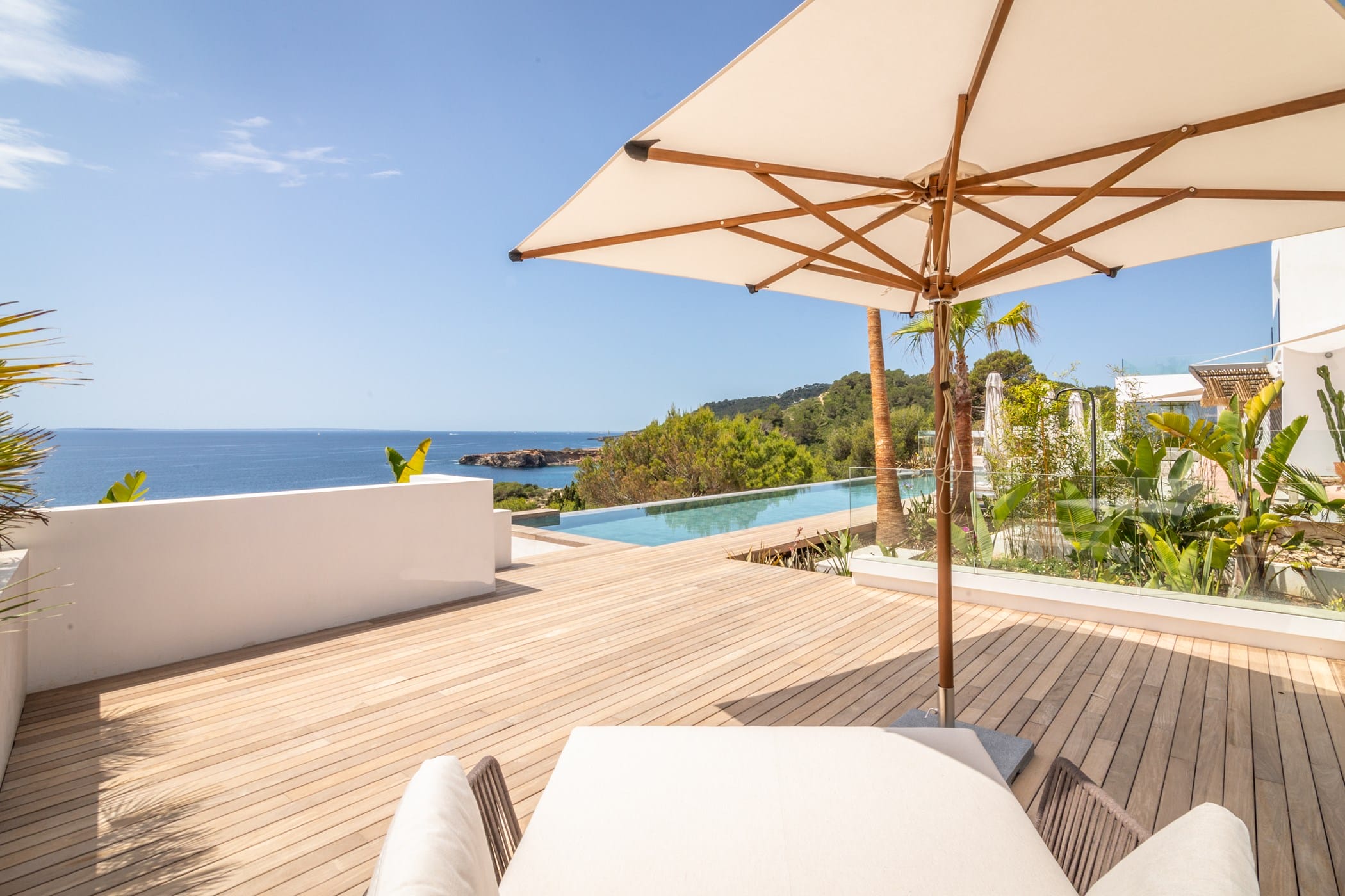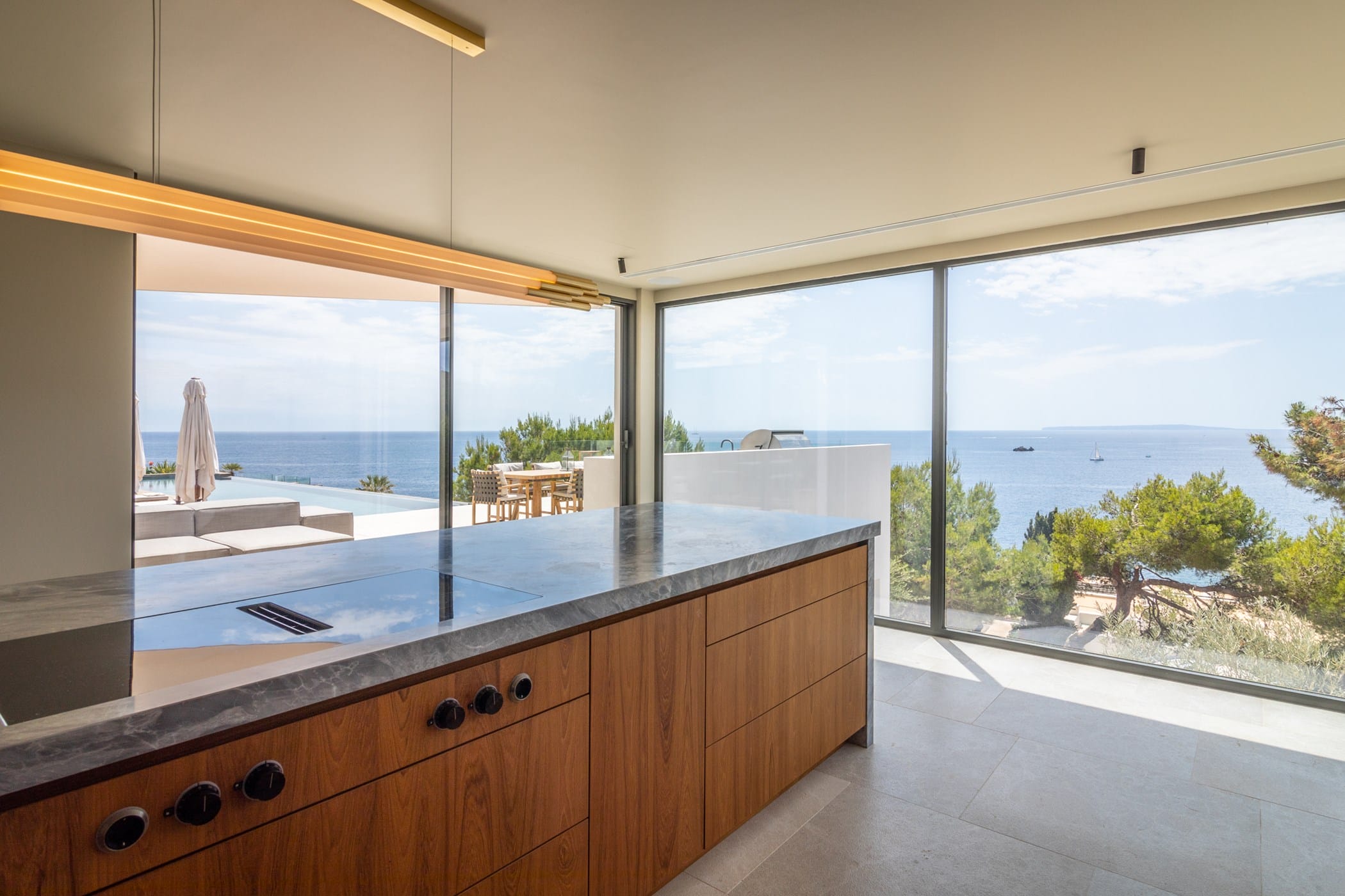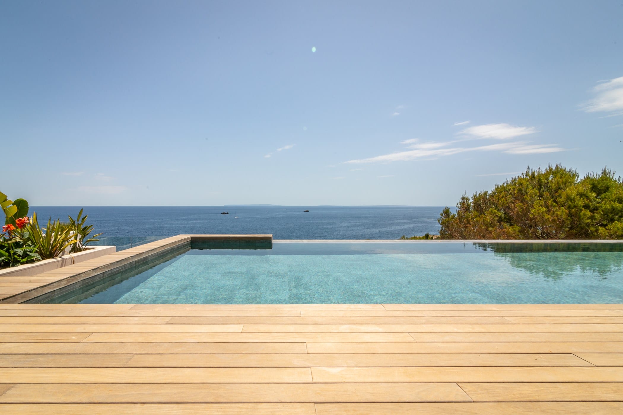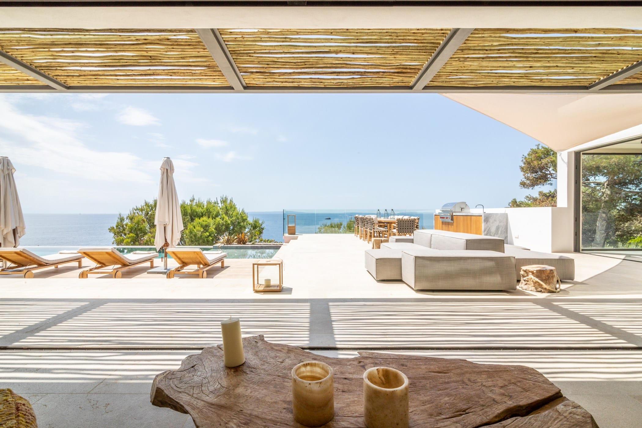 Secure parking for 4-5 cars. Located in an exclusive private urbanization with direct sea views to Formentera, just 10 minutes by car from Ibiza Town and Santa Eulalia.