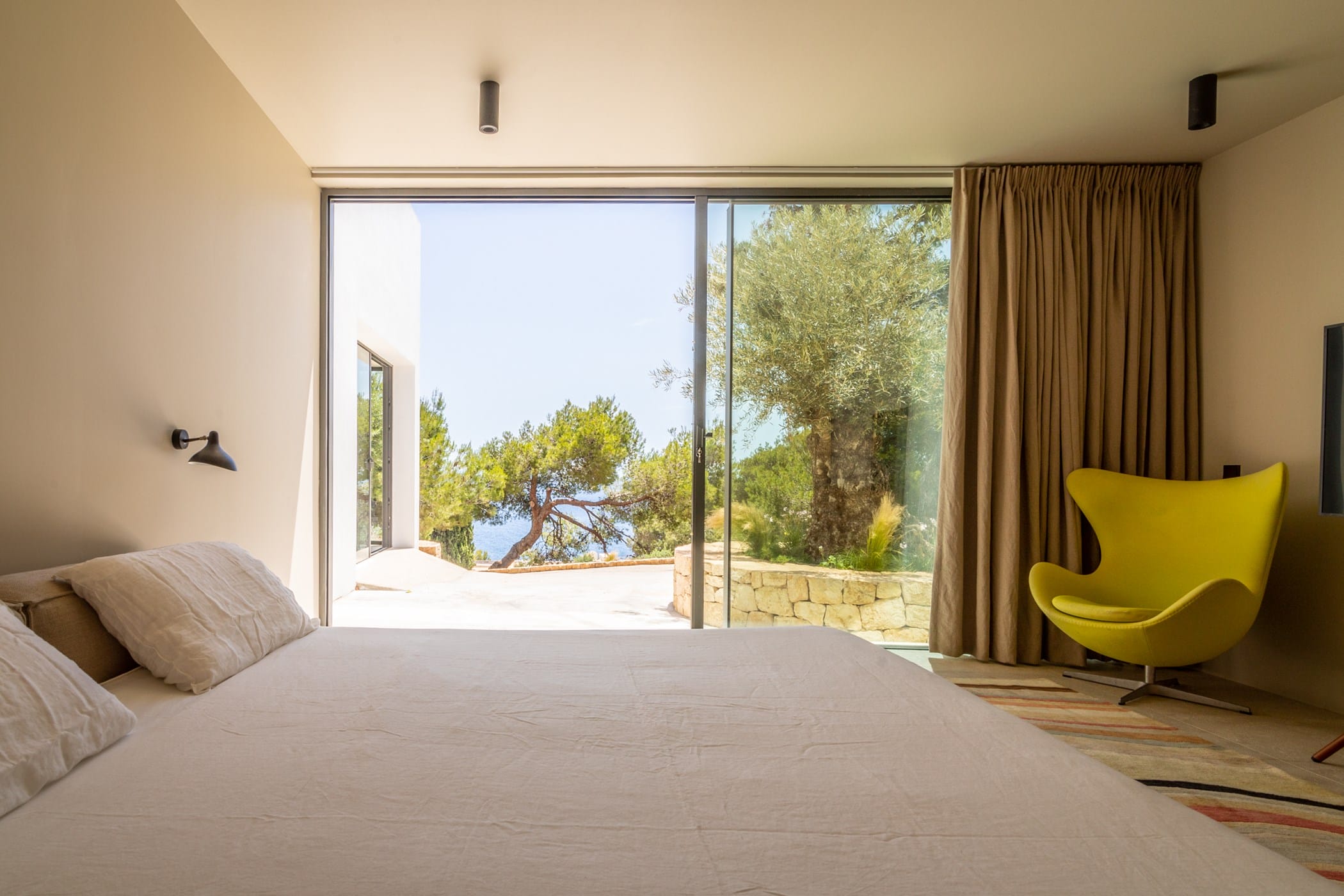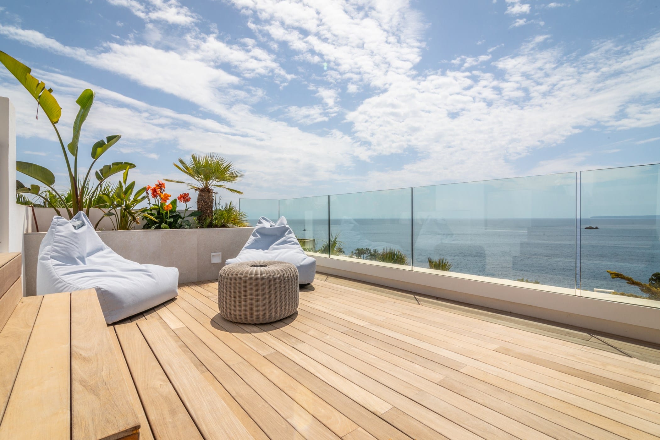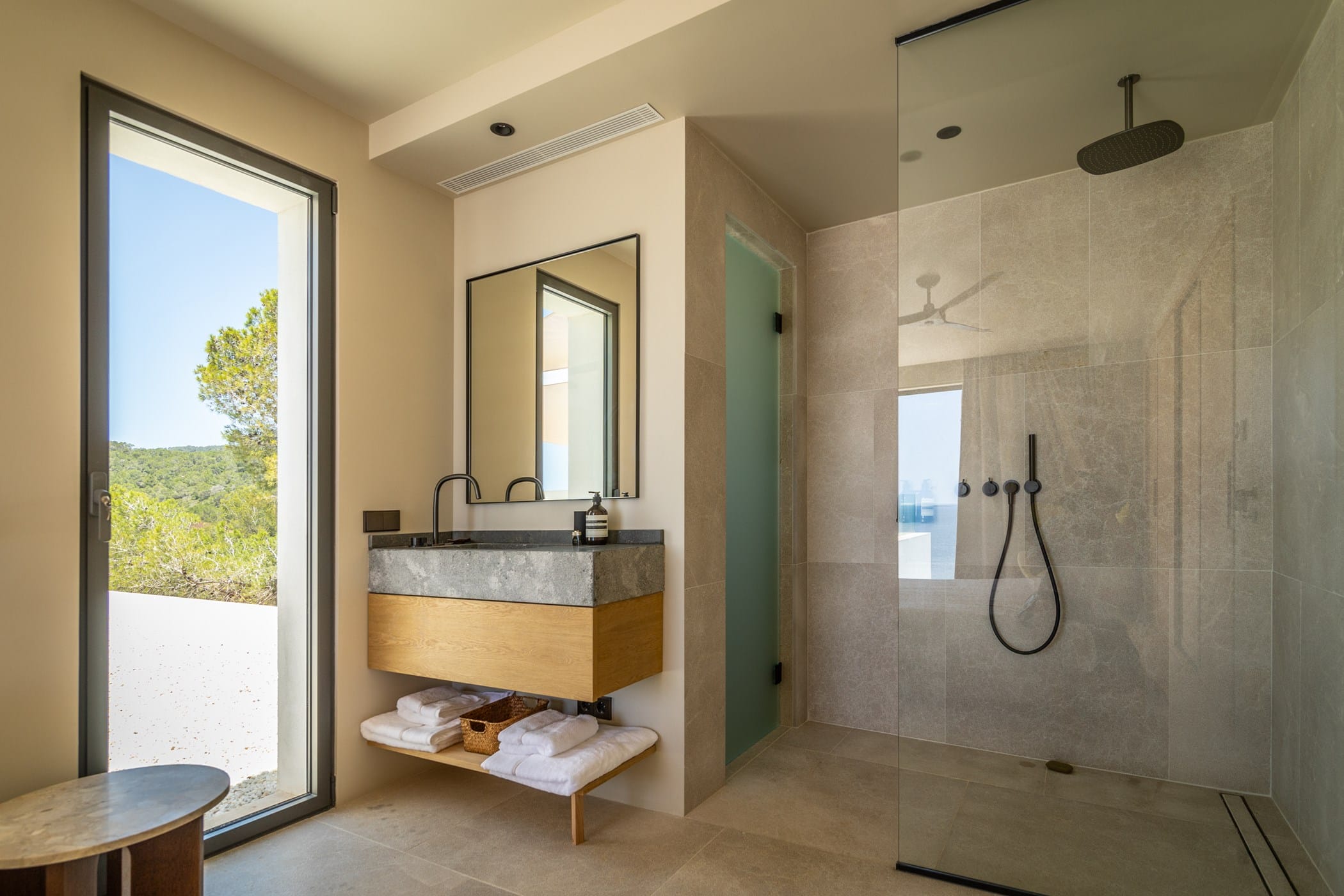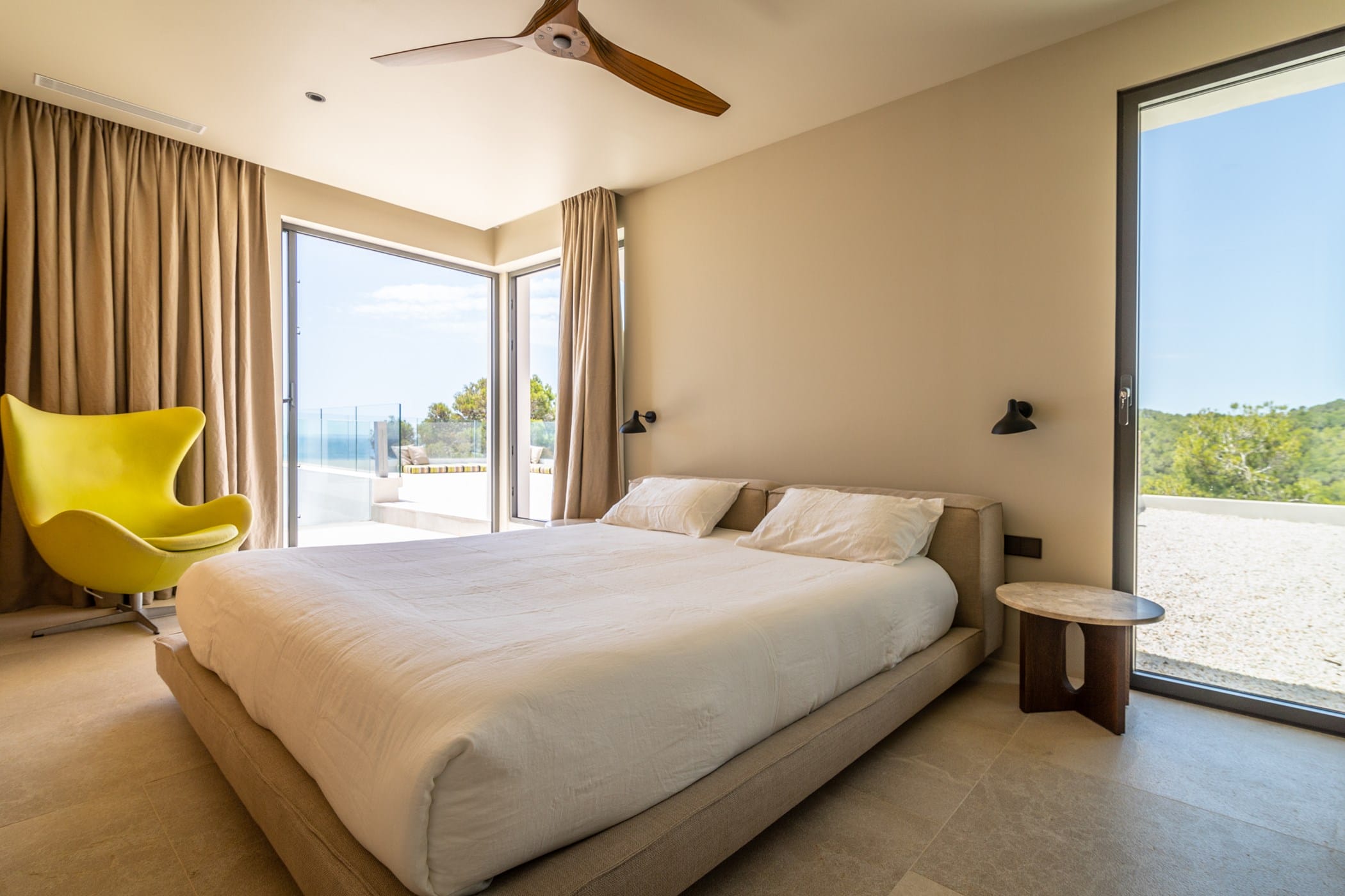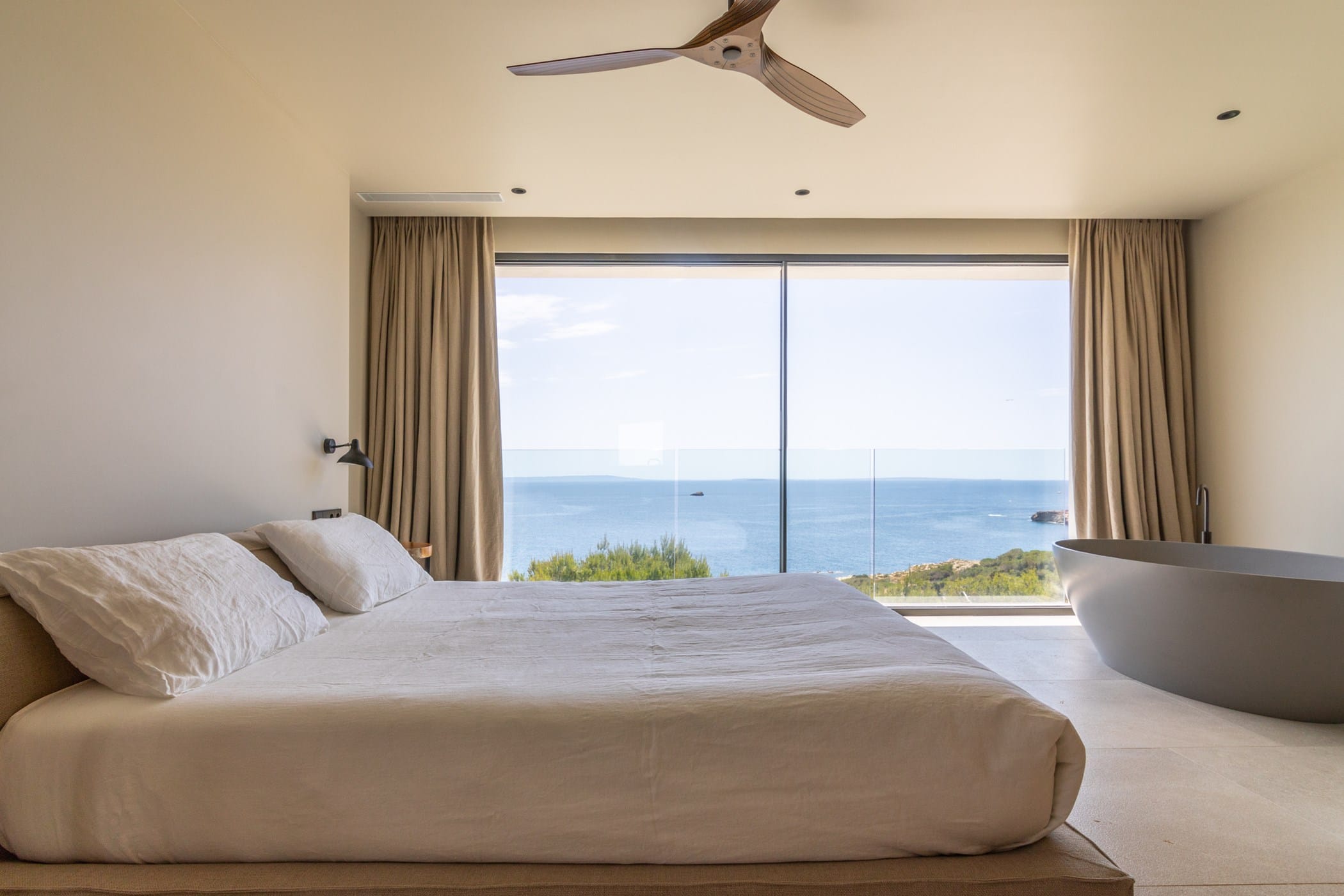 Secure parking for 4-5 cars. Located in an exclusive private urbanization with direct sea views to Formentera, just 10 minutes by car from Ibiza Town and Santa Eulalia.