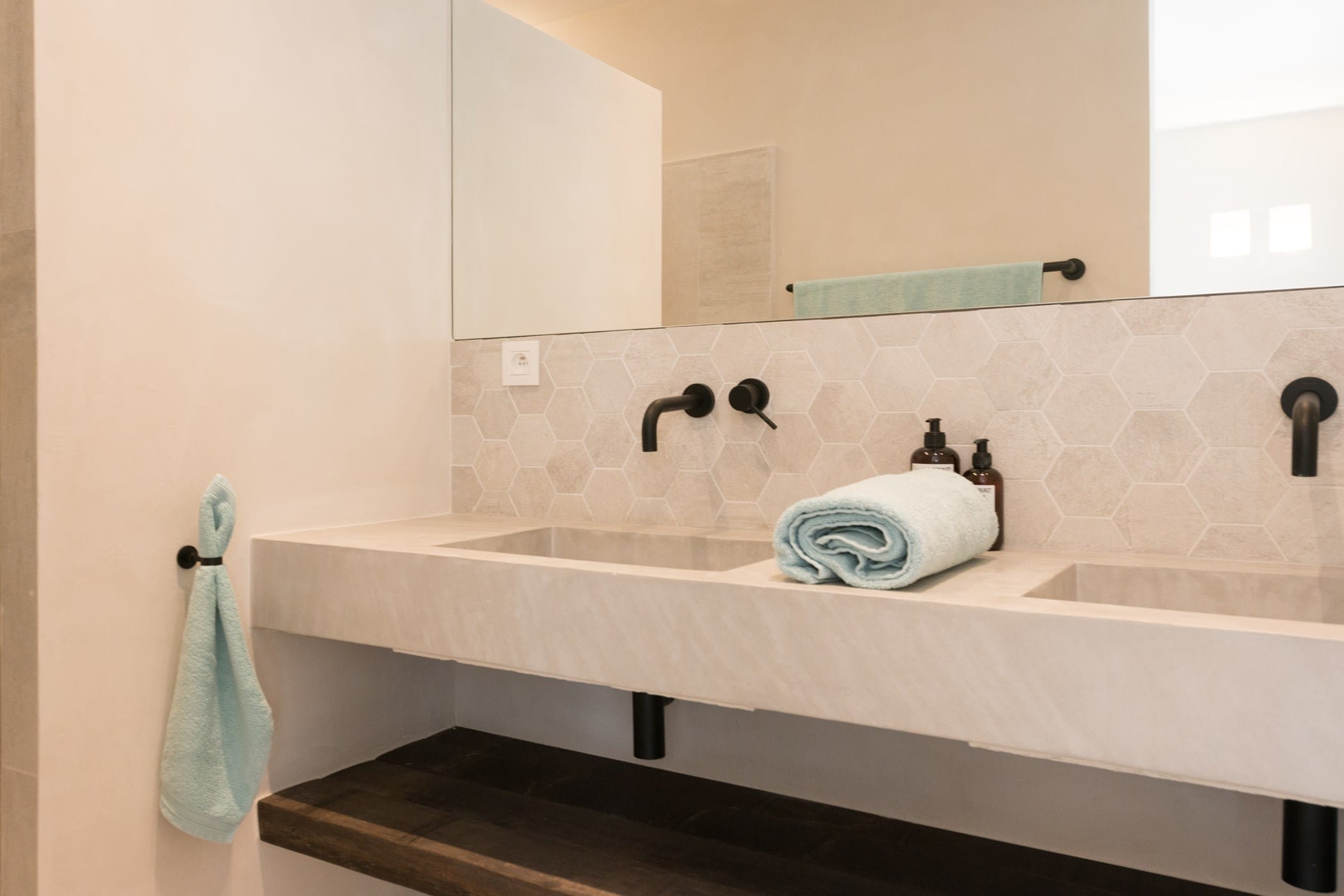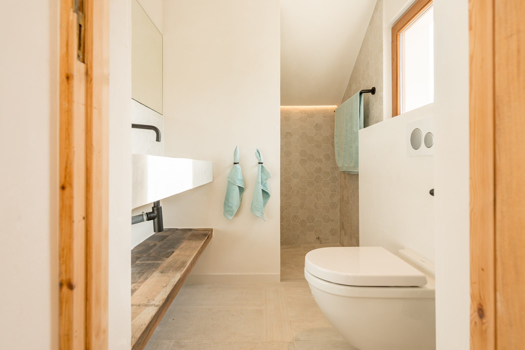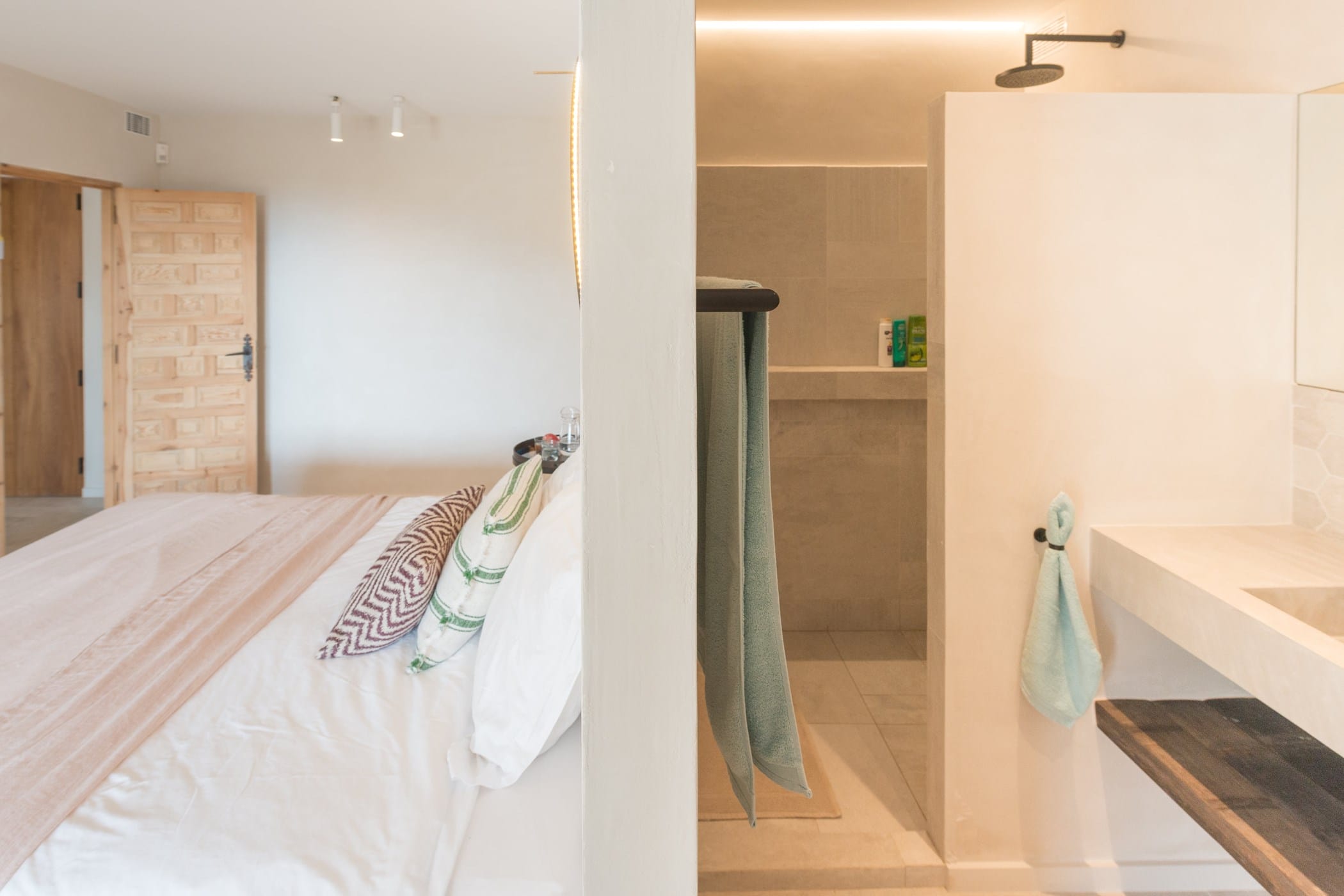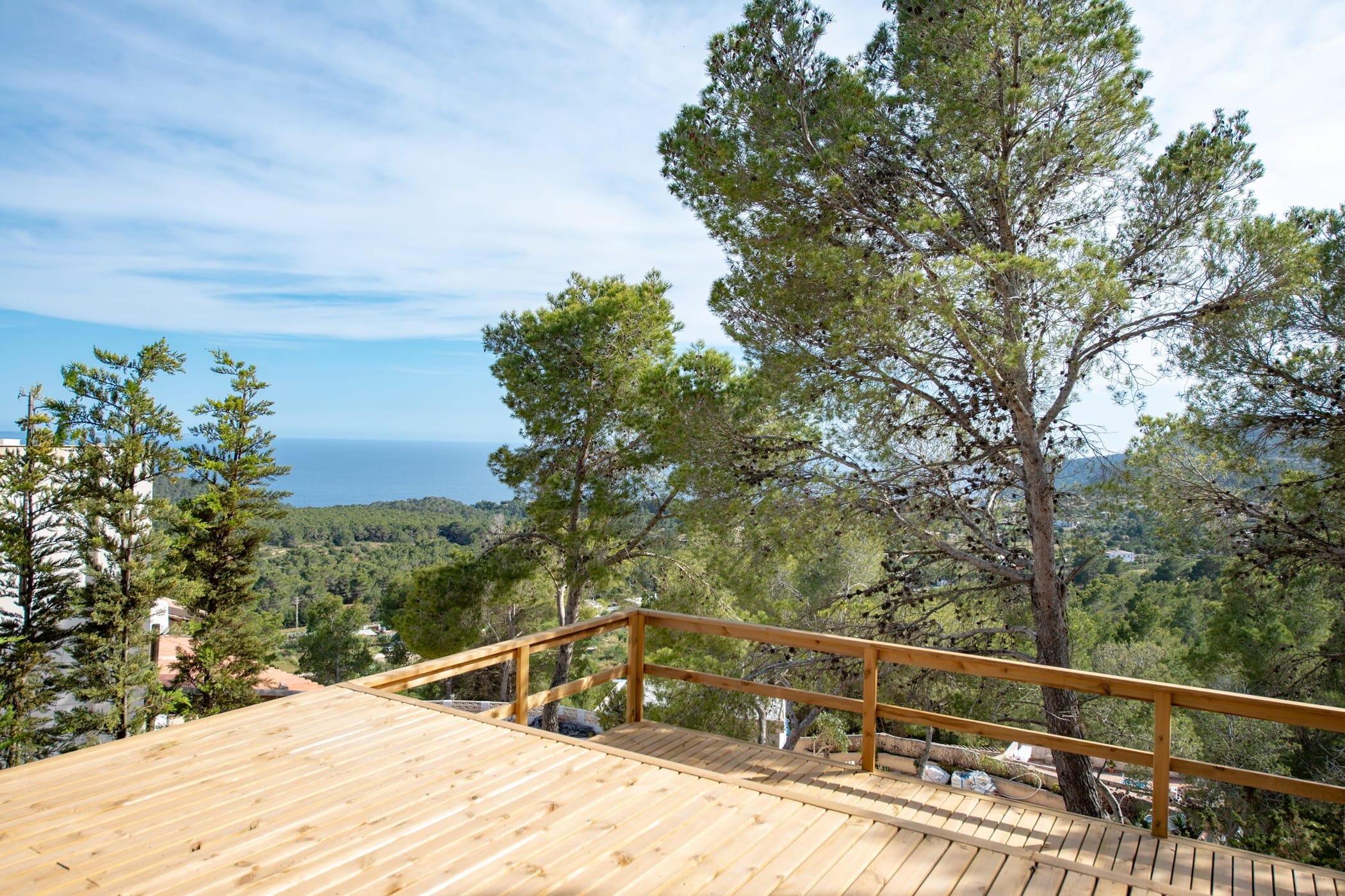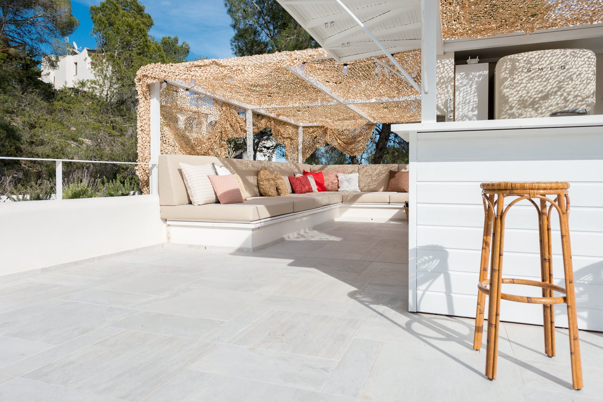 The standout rooftop features a pool with a fully stocked bar, sun loungers, and expansive sea views. Additional highlights include an outdoor gym and private yoga platform, all set within fragrant pine gardens.