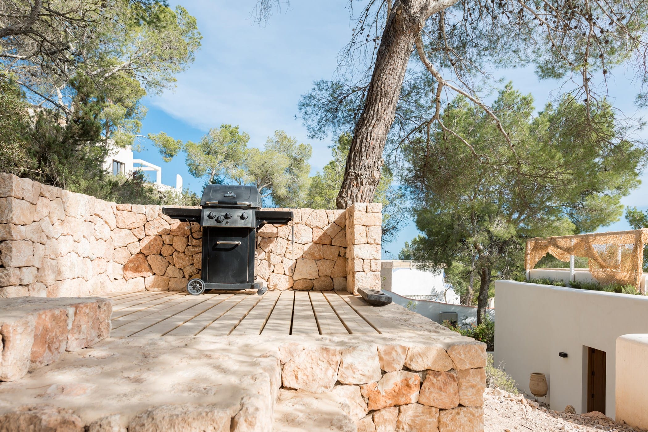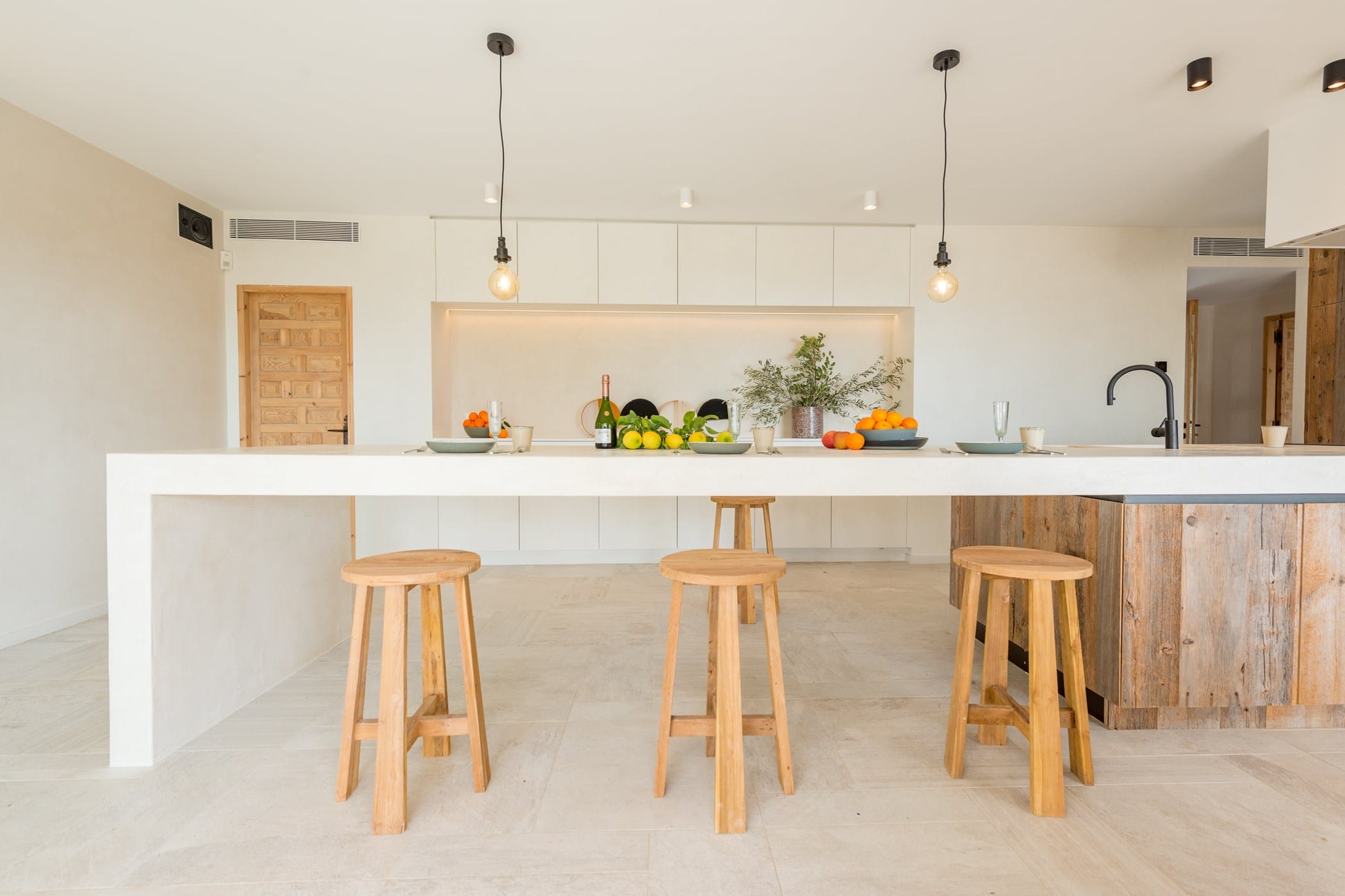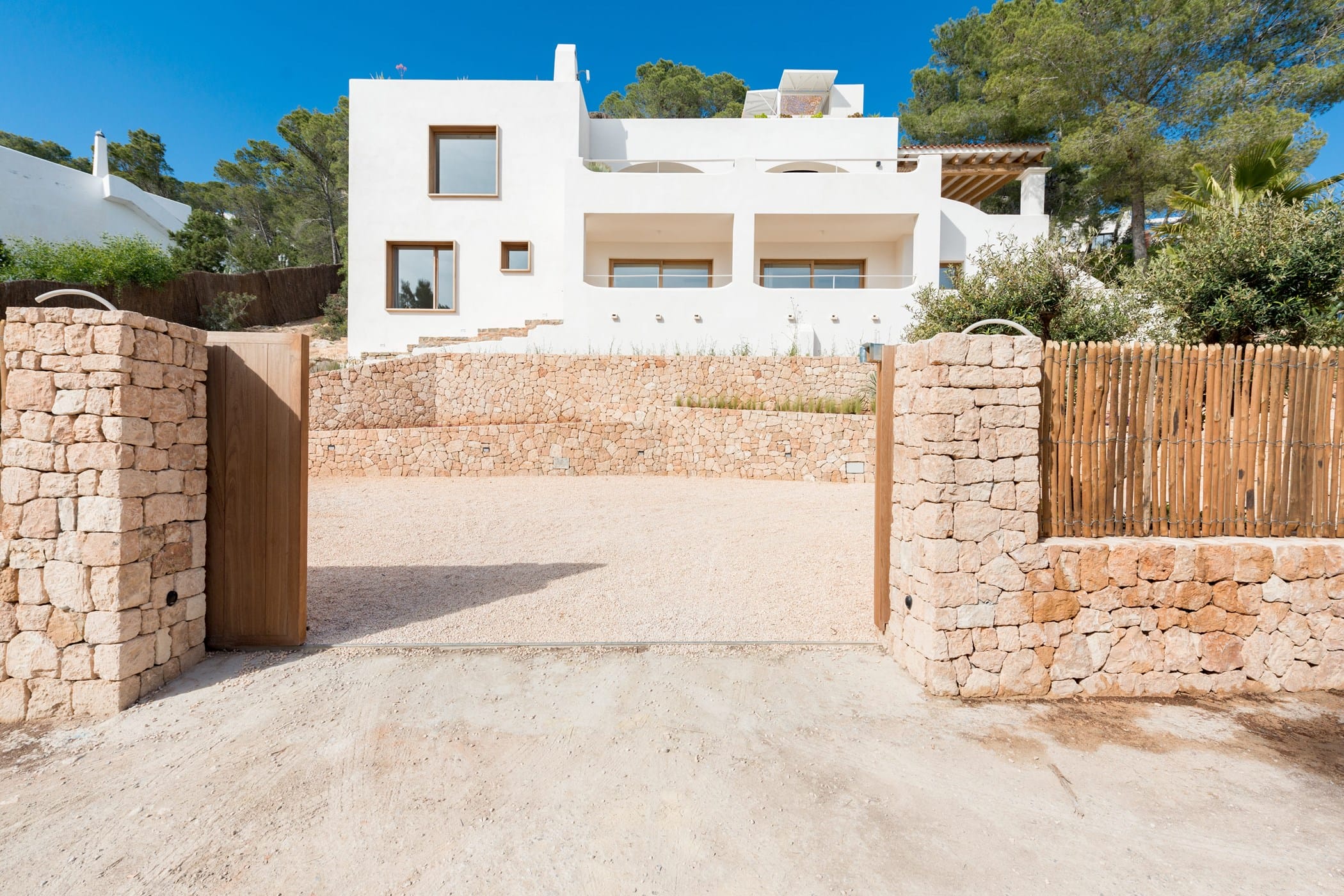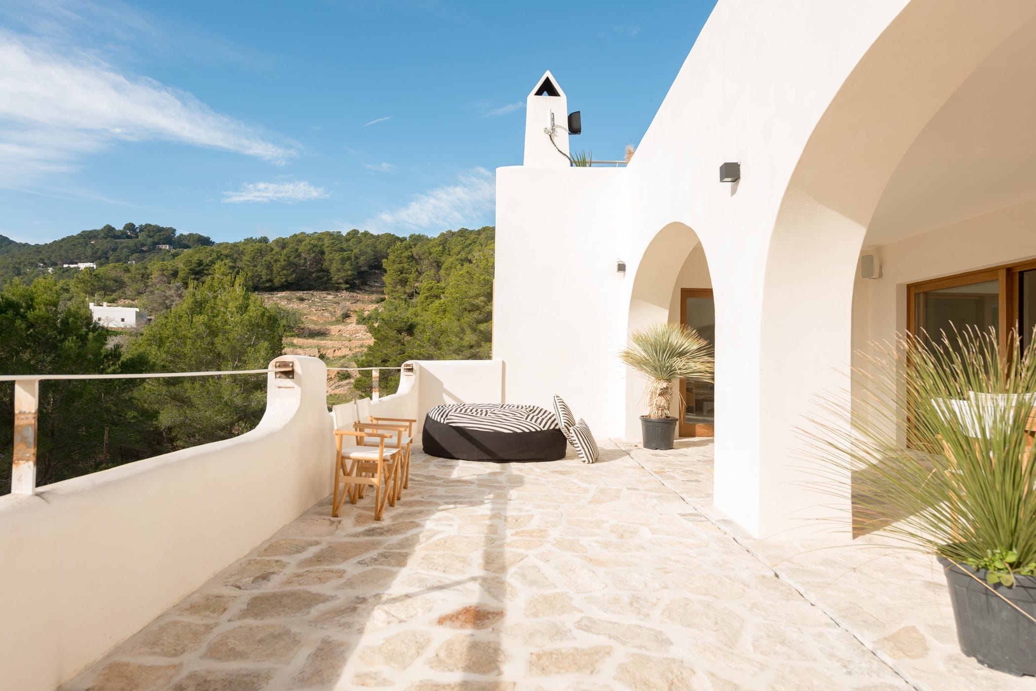 This recently reformed 6-bedroom villa is elevated above the dramatic cliffs of Es Cubells, offering spectacular views over the Mediterranean Sea. Distributed over three floors, it masterfully blends contemporary design with authentic Balearic charm using natural materials, whitewashed walls, wooden finishes, and tasteful décor.