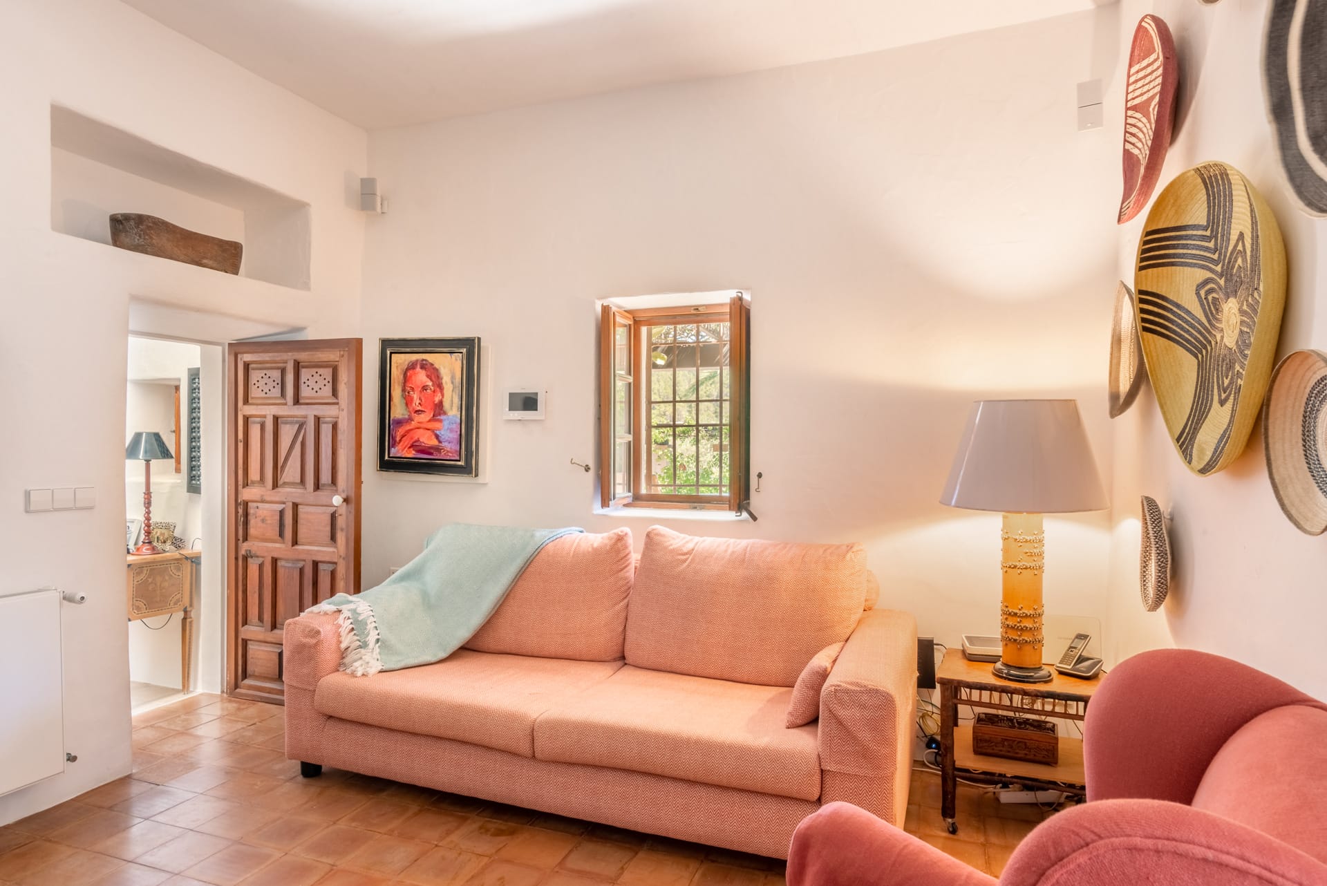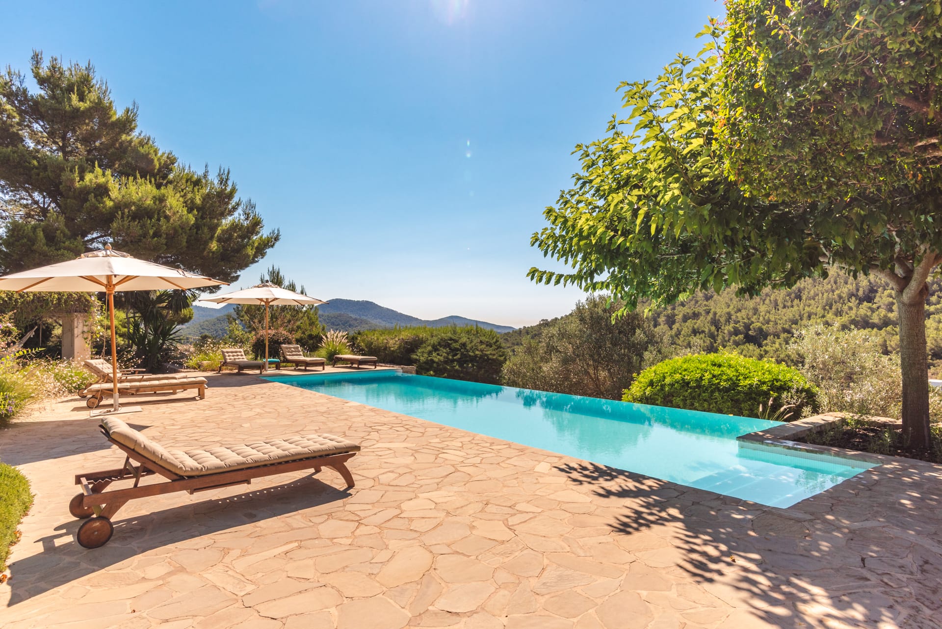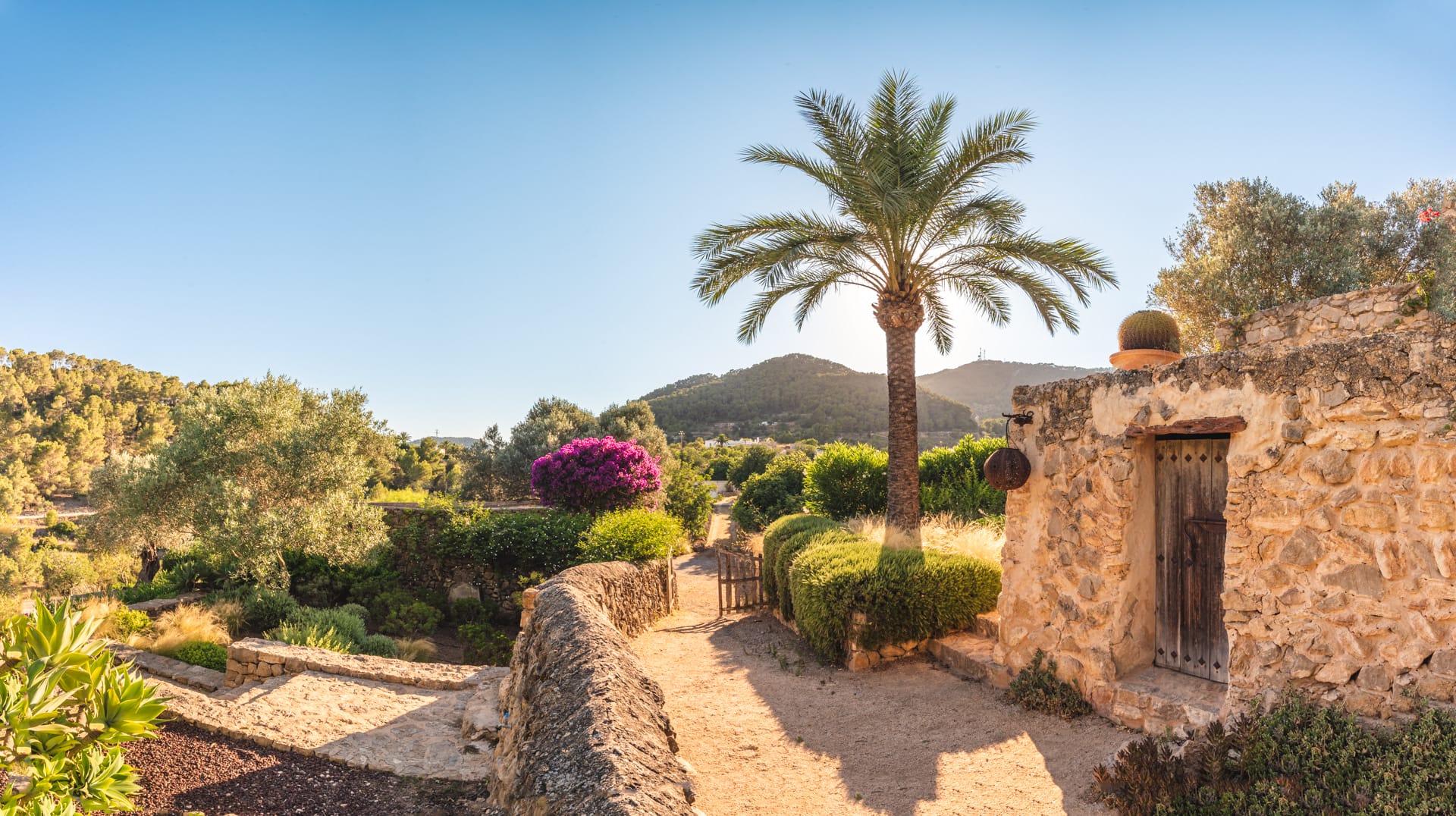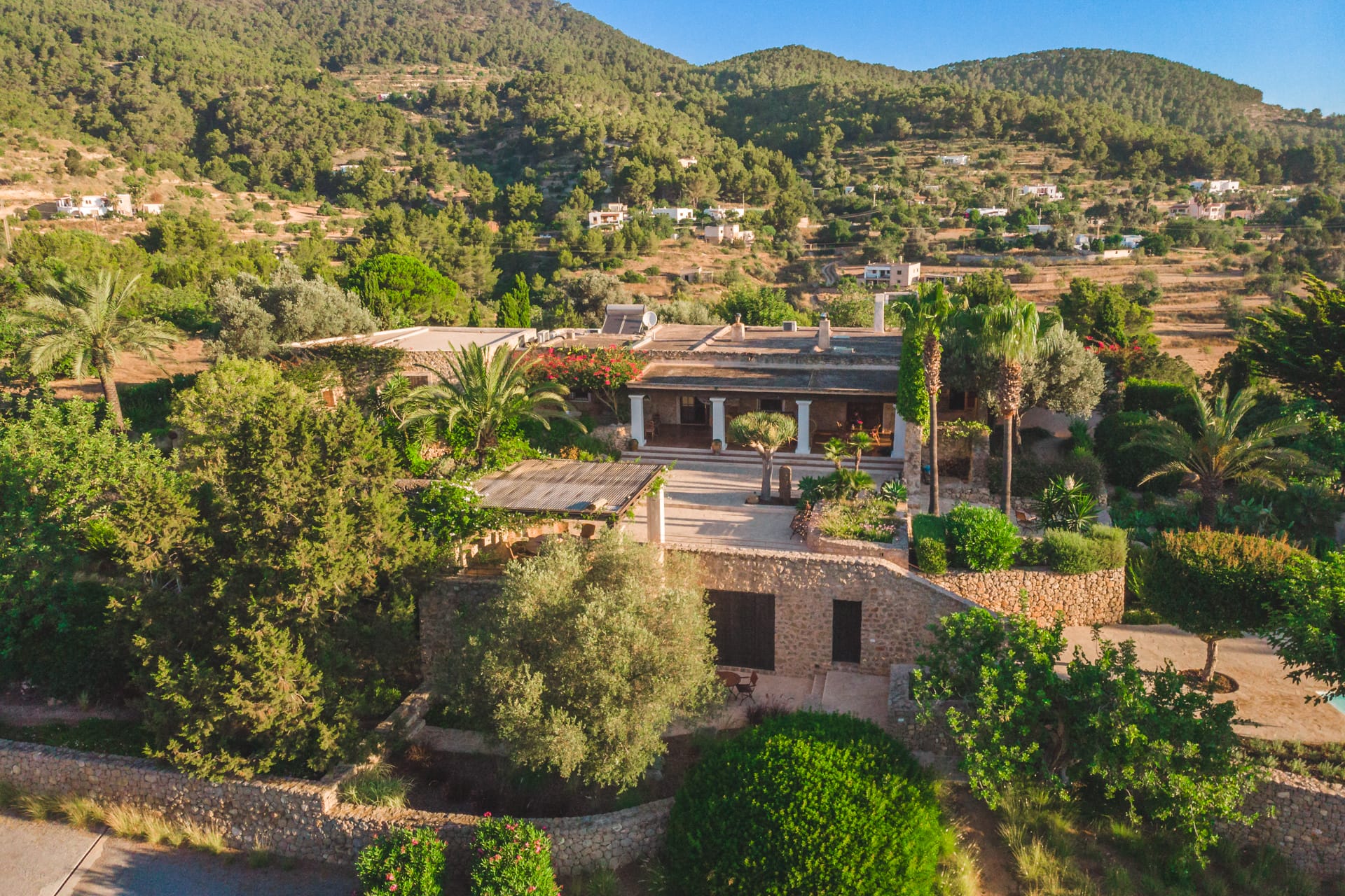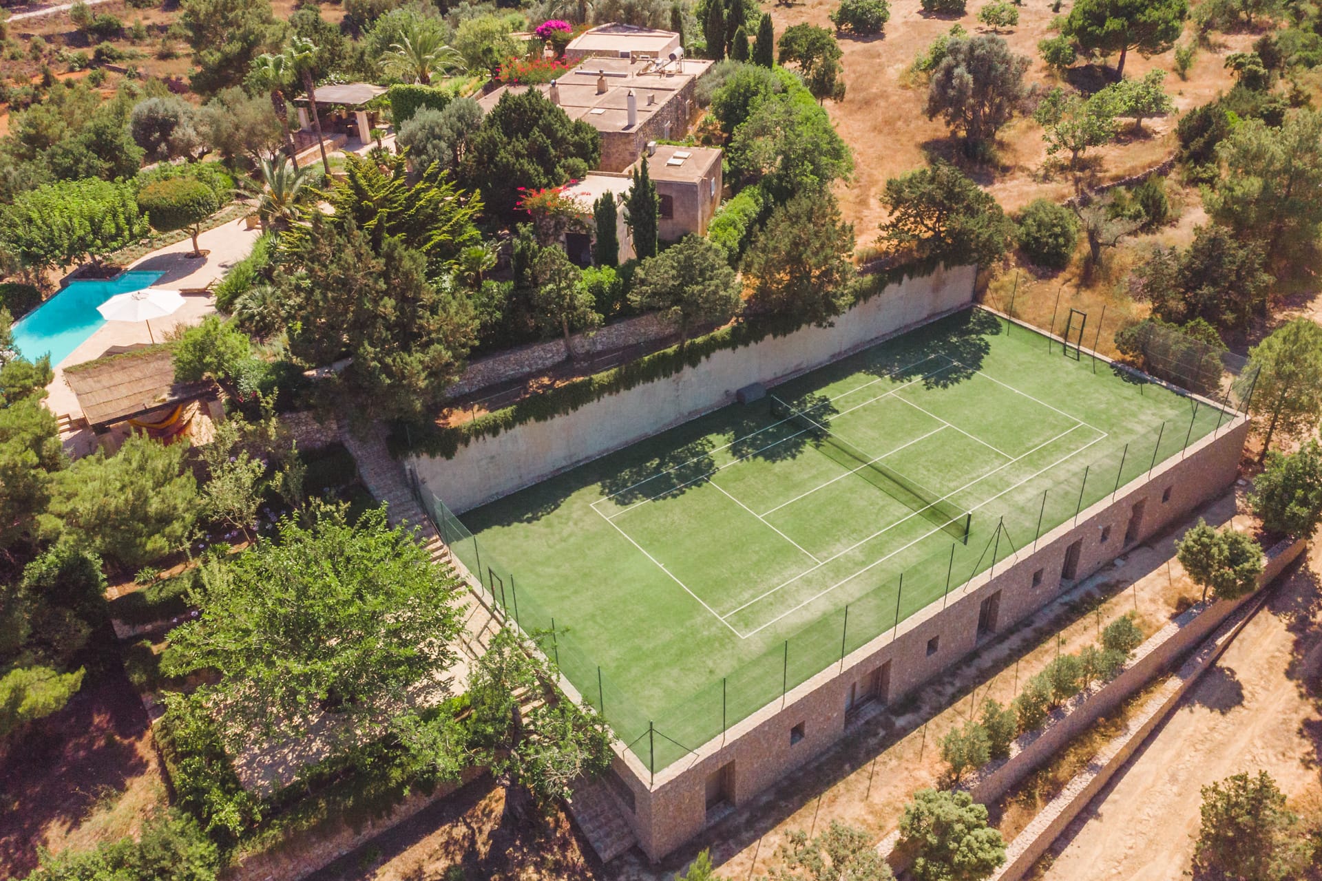 This restored Ibicencan finca sits atop a hill overlooking a scenic valley, offering total privacy, fresh breezes, and a peaceful countryside setting. Surrounded by lush gardens, the property blends rustic charm with modern comfort, featuring chill-out areas with hammocks, an infinity pool, and a private tennis court—ideal for relaxation and outdoor living.