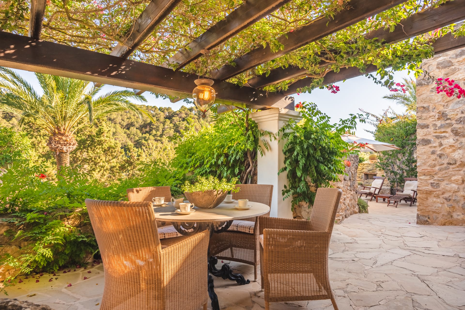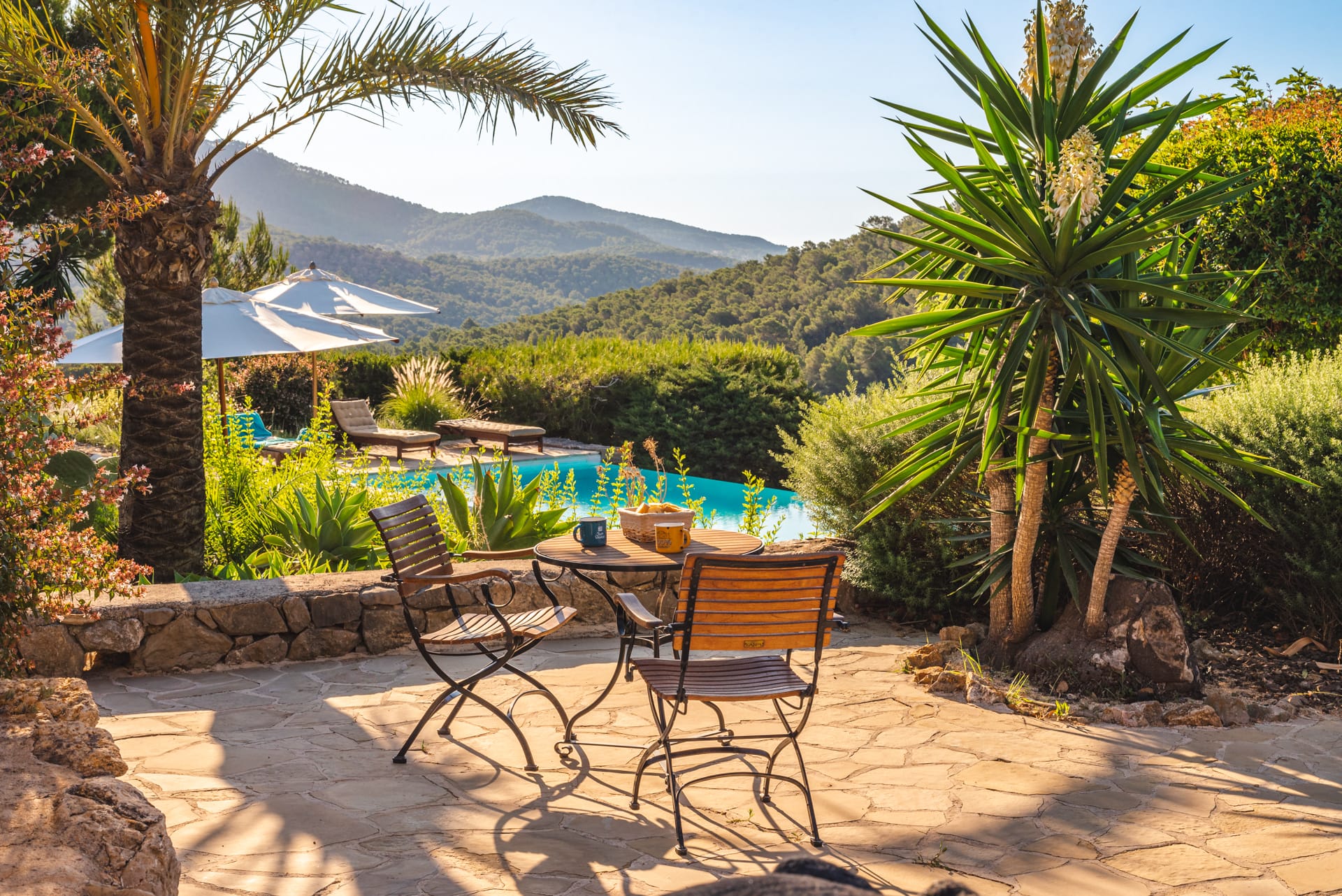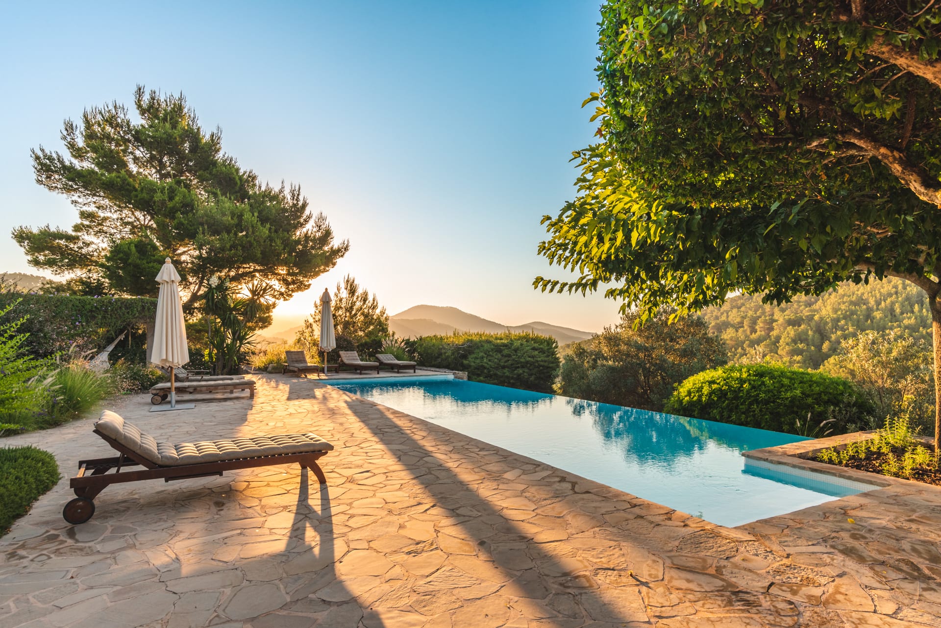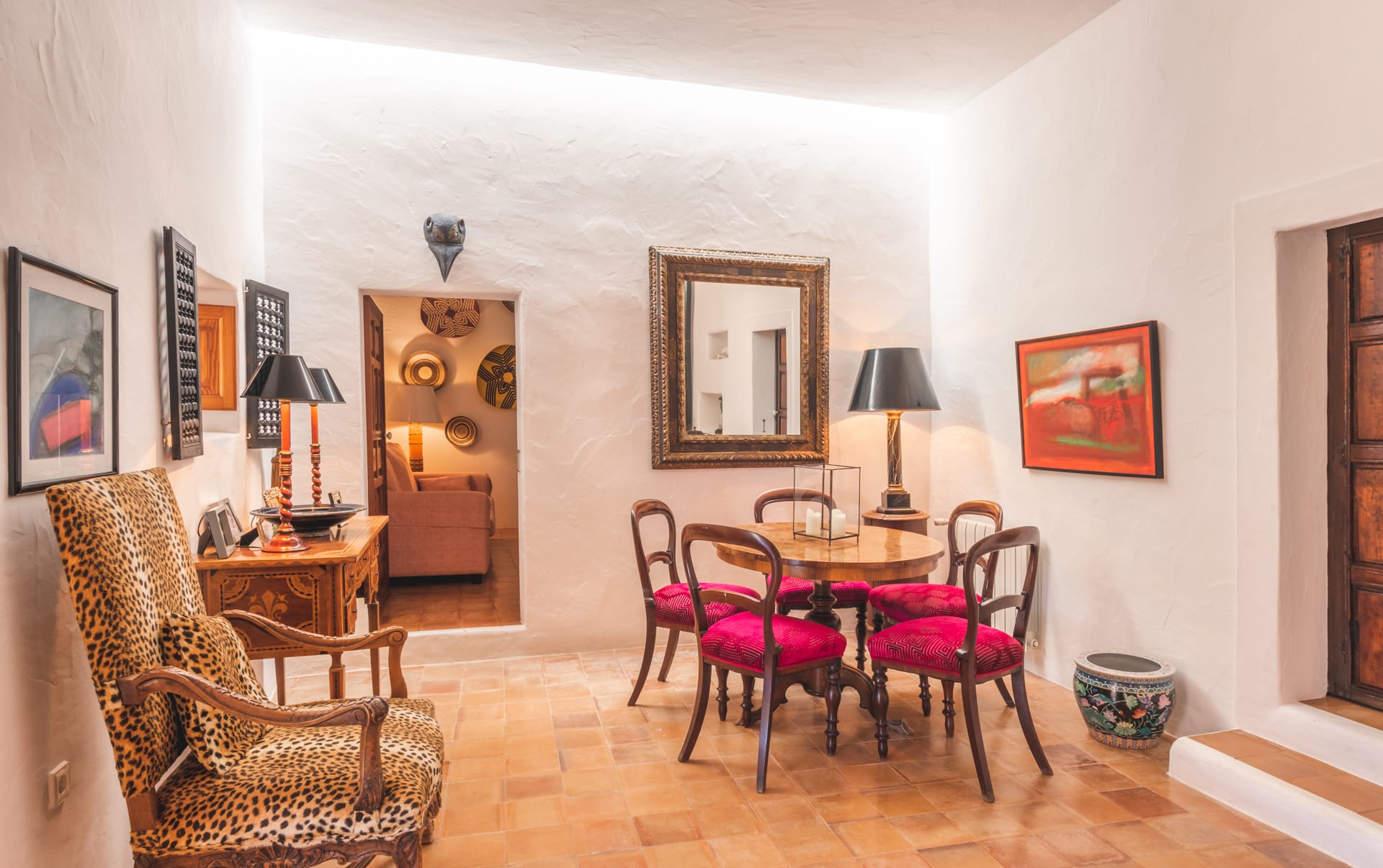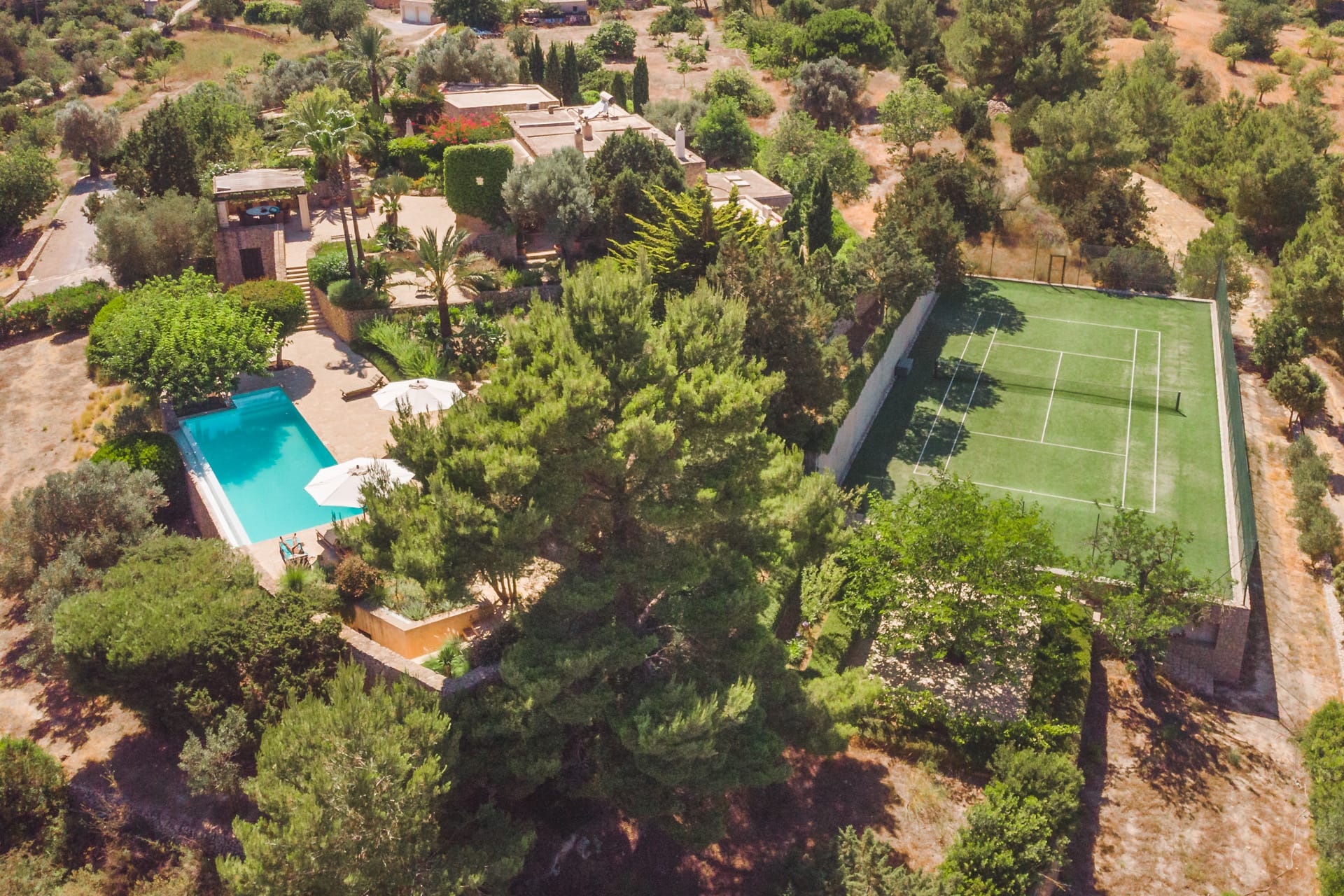 This restored Ibicencan finca sits atop a hill overlooking a scenic valley, offering total privacy, fresh breezes, and a peaceful countryside setting. Surrounded by lush gardens, the property blends rustic charm with modern comfort, featuring chill-out areas with hammocks, an infinity pool, and a private tennis court—ideal for relaxation and outdoor living.