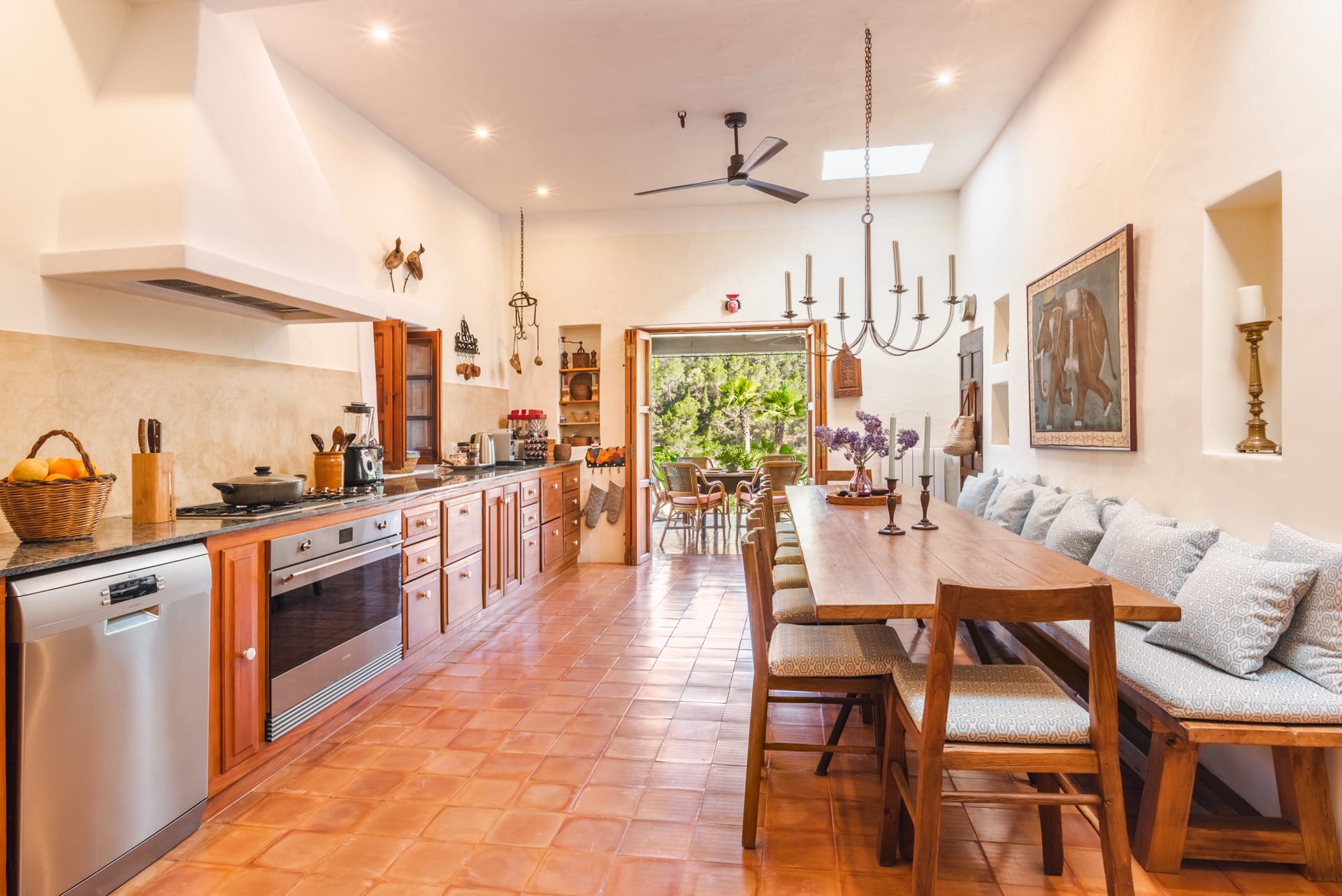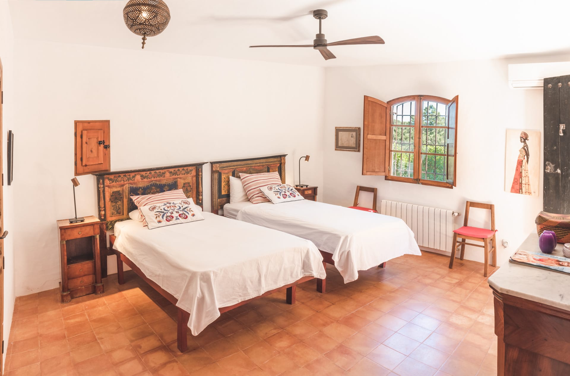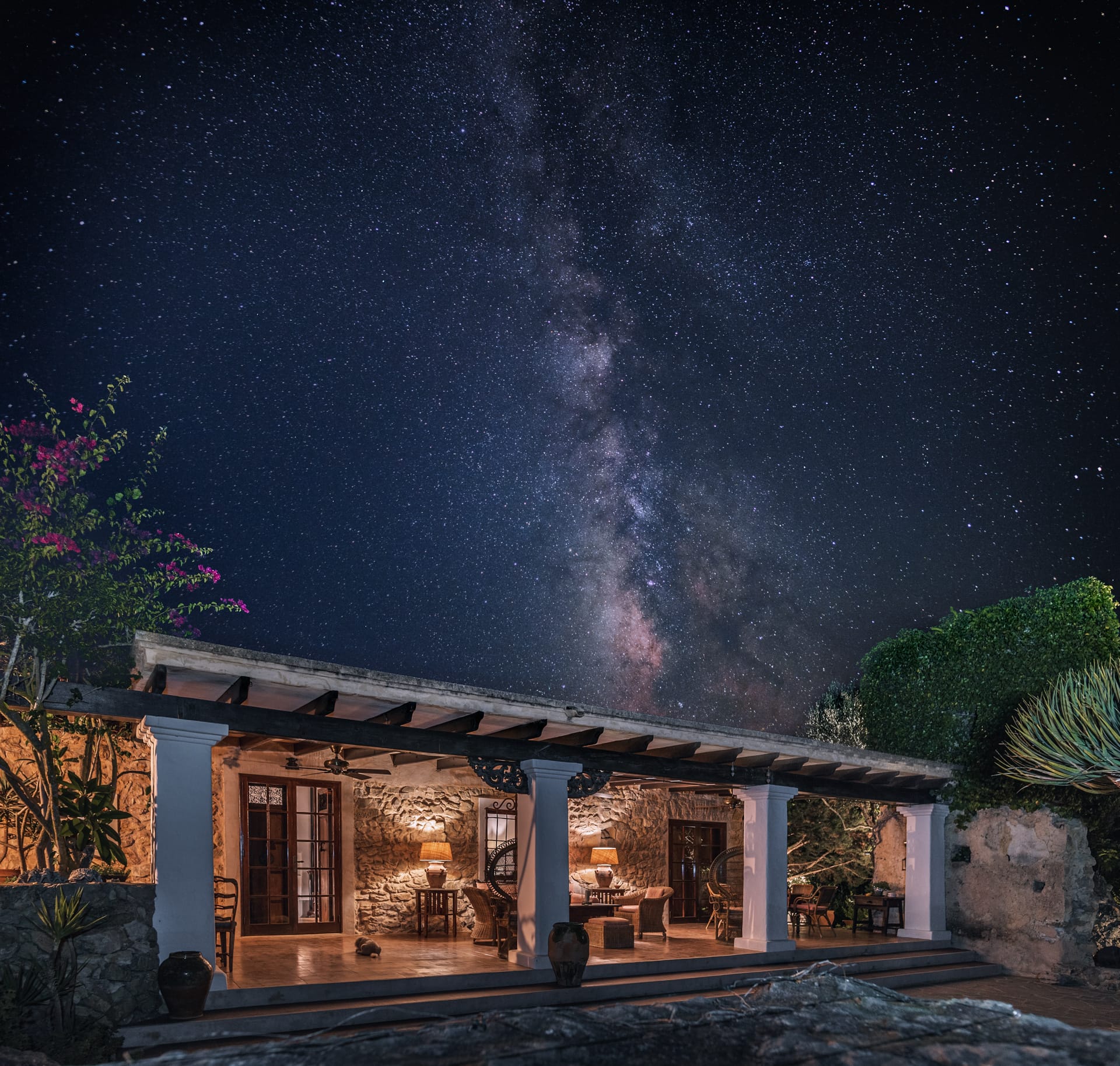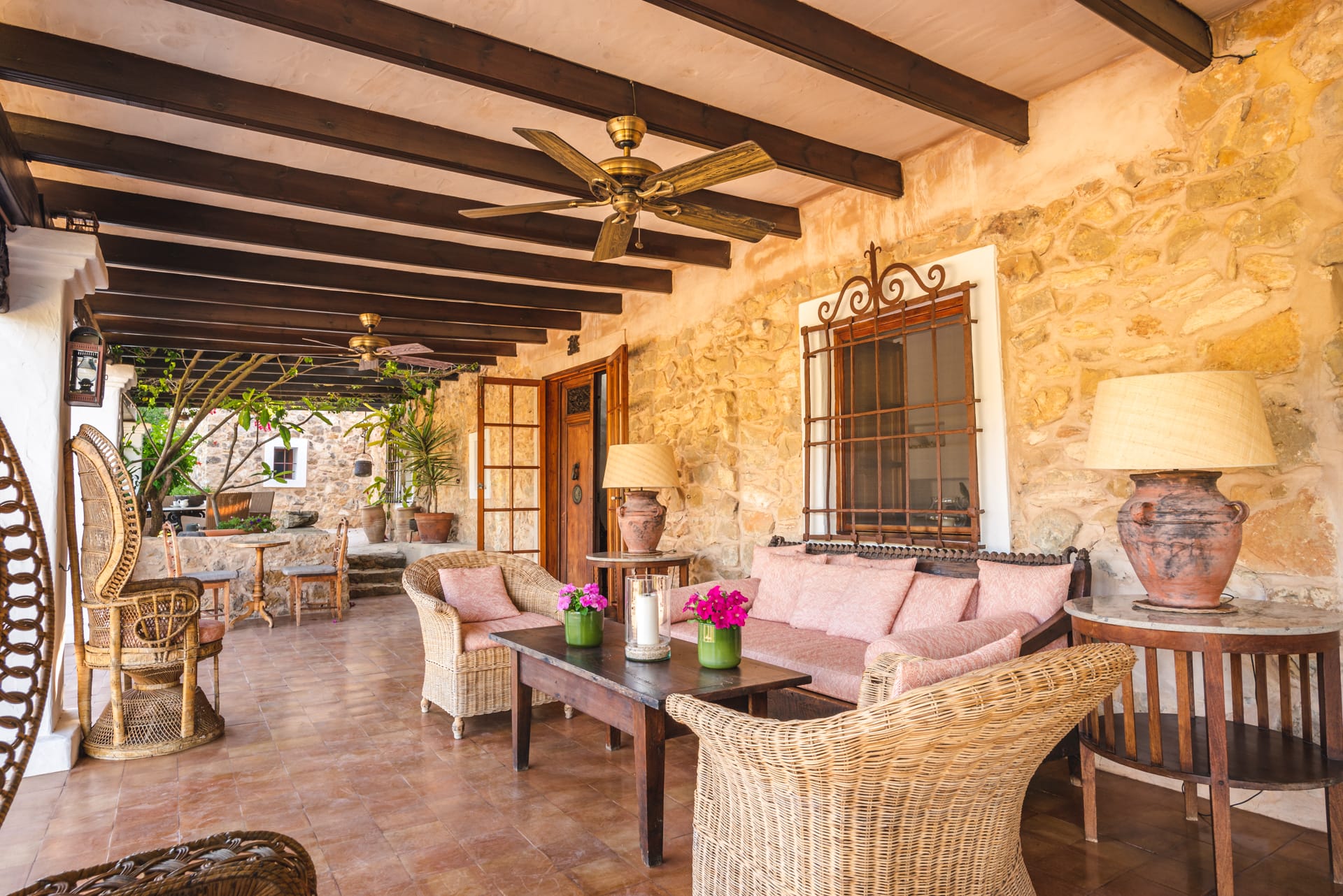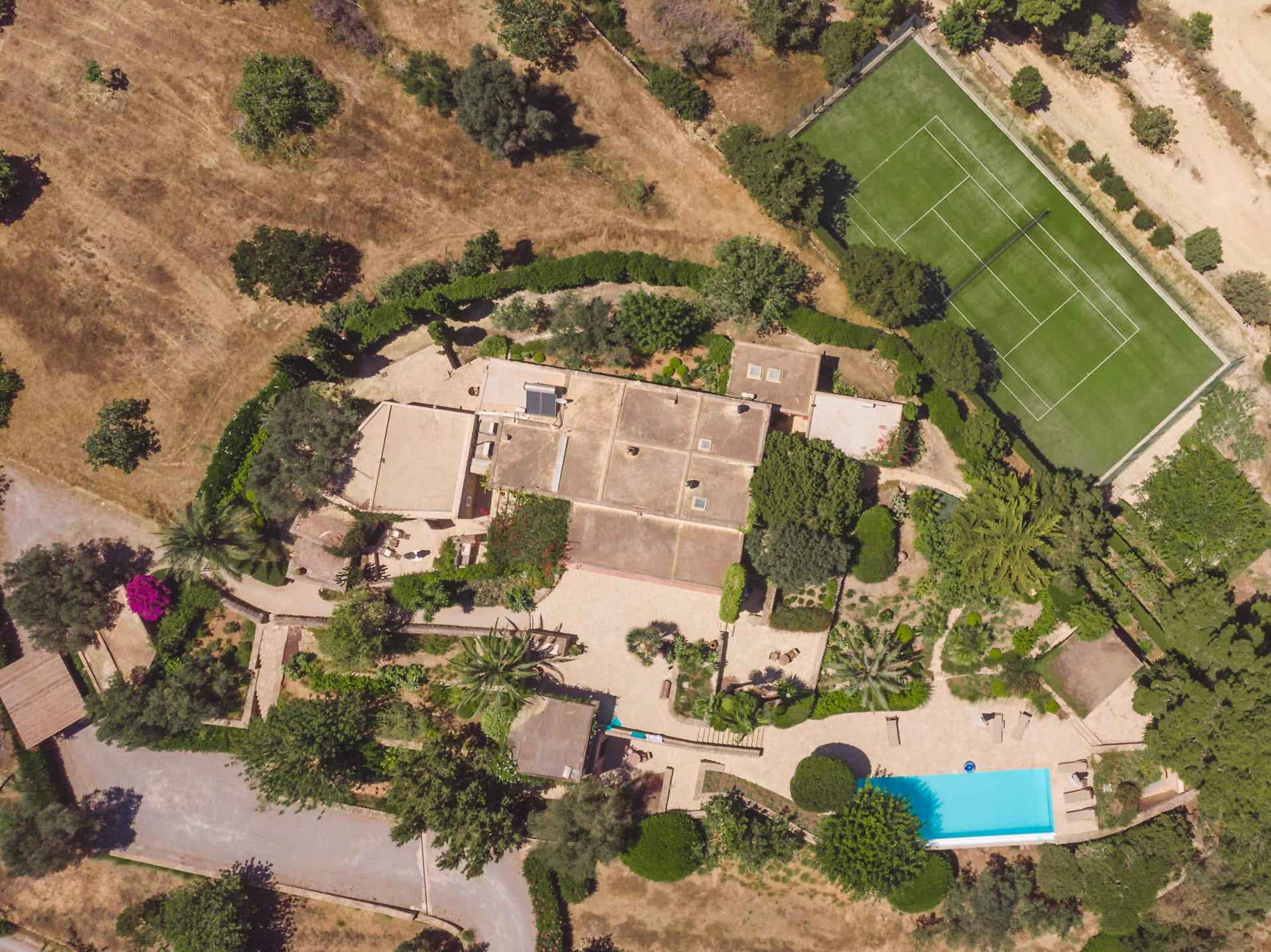 This restored Ibicencan finca sits atop a hill overlooking a scenic valley, offering total privacy, fresh breezes, and a peaceful countryside setting. Surrounded by lush gardens, the property blends rustic charm with modern comfort, featuring chill-out areas with hammocks, an infinity pool, and a private tennis court—ideal for relaxation and outdoor living.